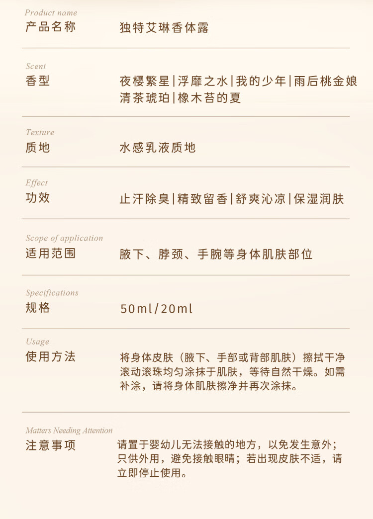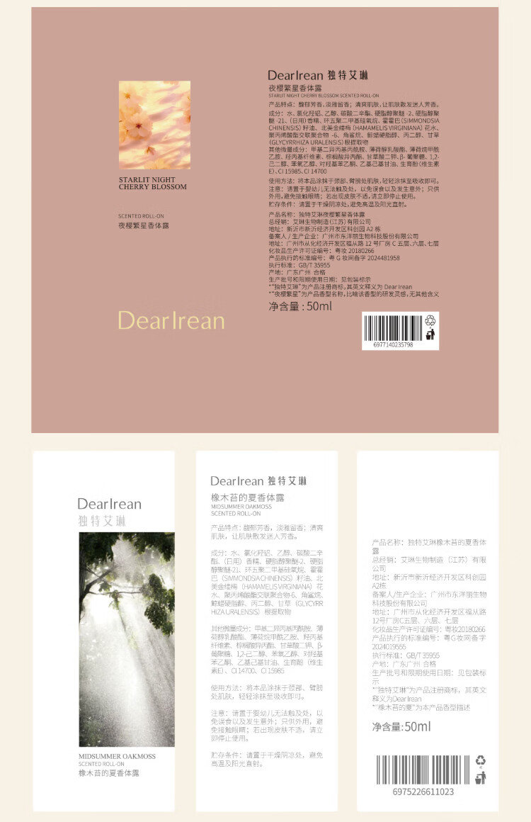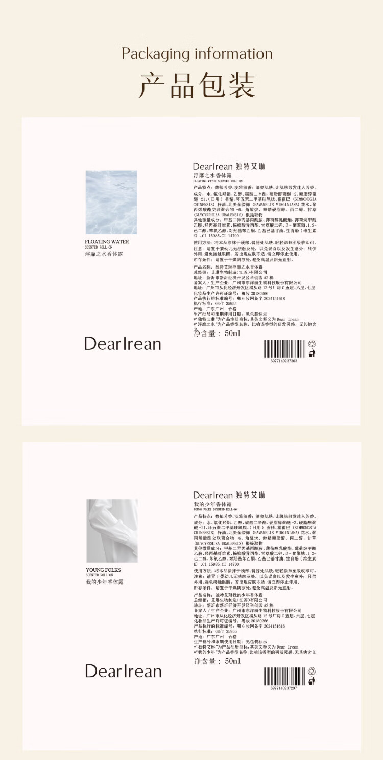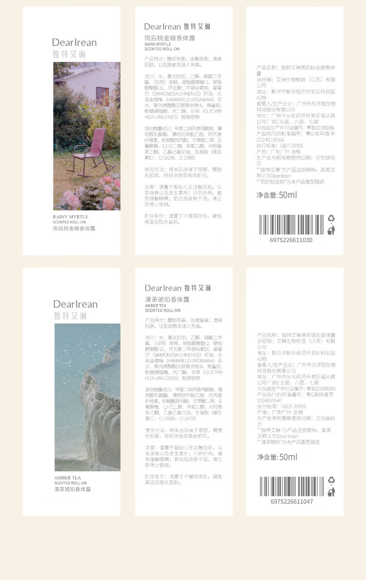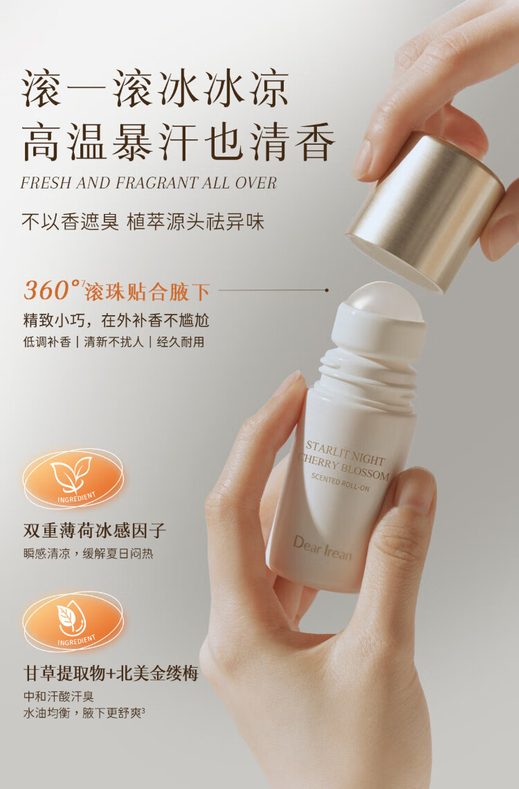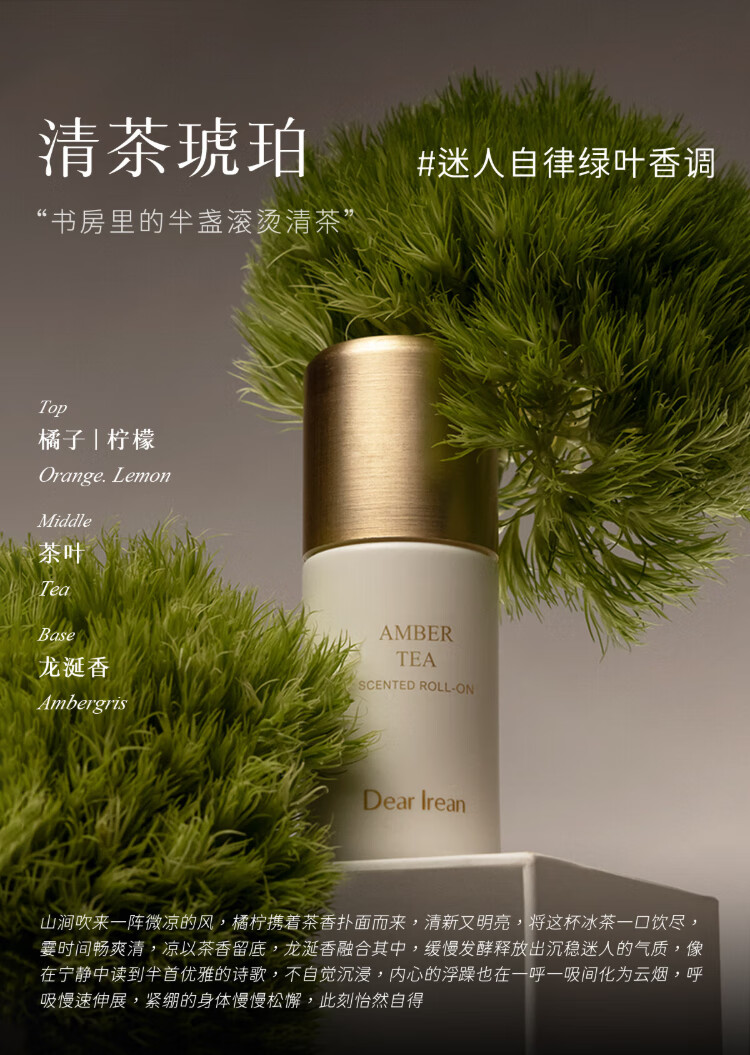Unique Dear lrean tea amber deodorant 50ml, refreshing and cooling fragrance, sweat-clearing and deodorant, a summer must-have and easy to carry
