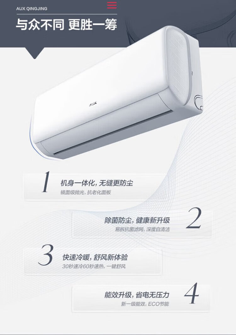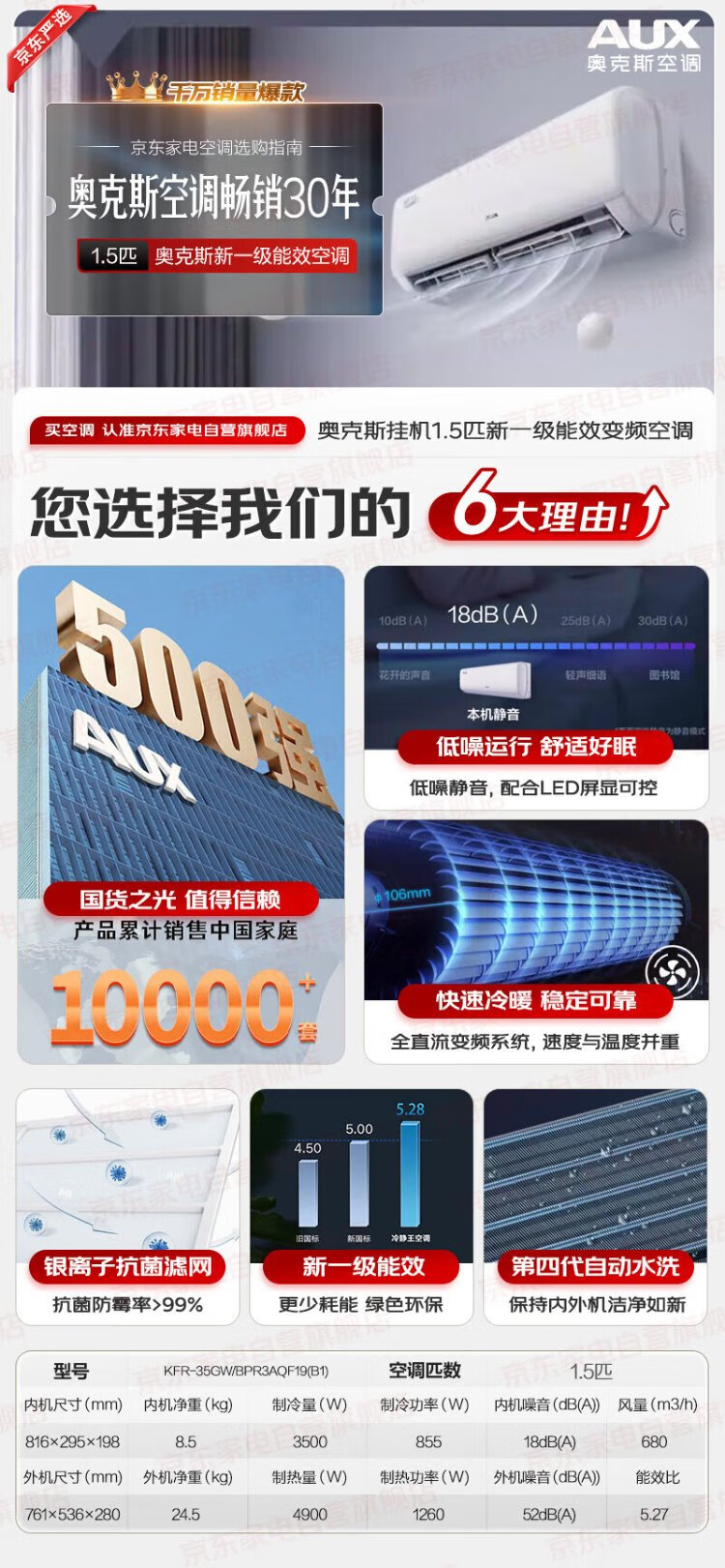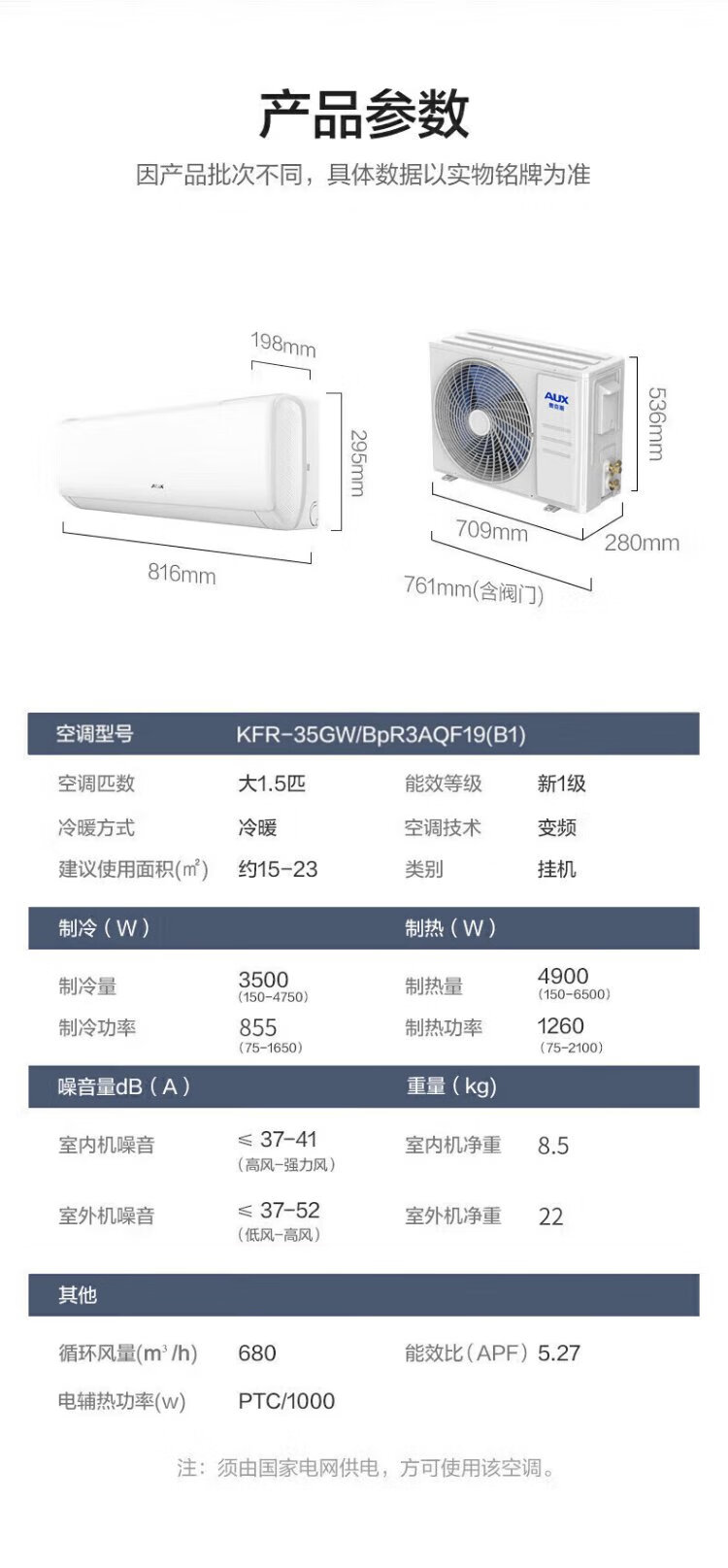 AUX air conditioner 1.5 HP first class energy efficiency hang up and be quiet Jingyu same model power saving frequency conversion heating and cooling wall-mounted KFR-35GW/BpR3AQF19 (B1) trade-in