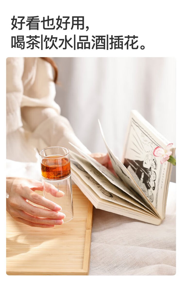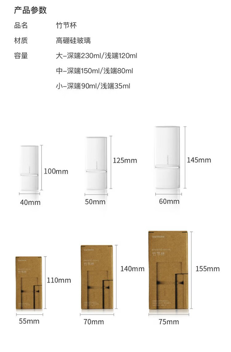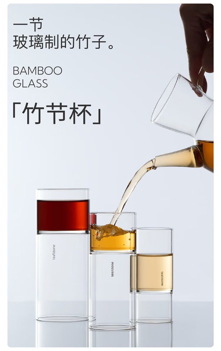 Teastone bamboo cup glass tea cup high borosilicate water cup household high temperature resistant deep end 150ml shallow end 80ml master cup
