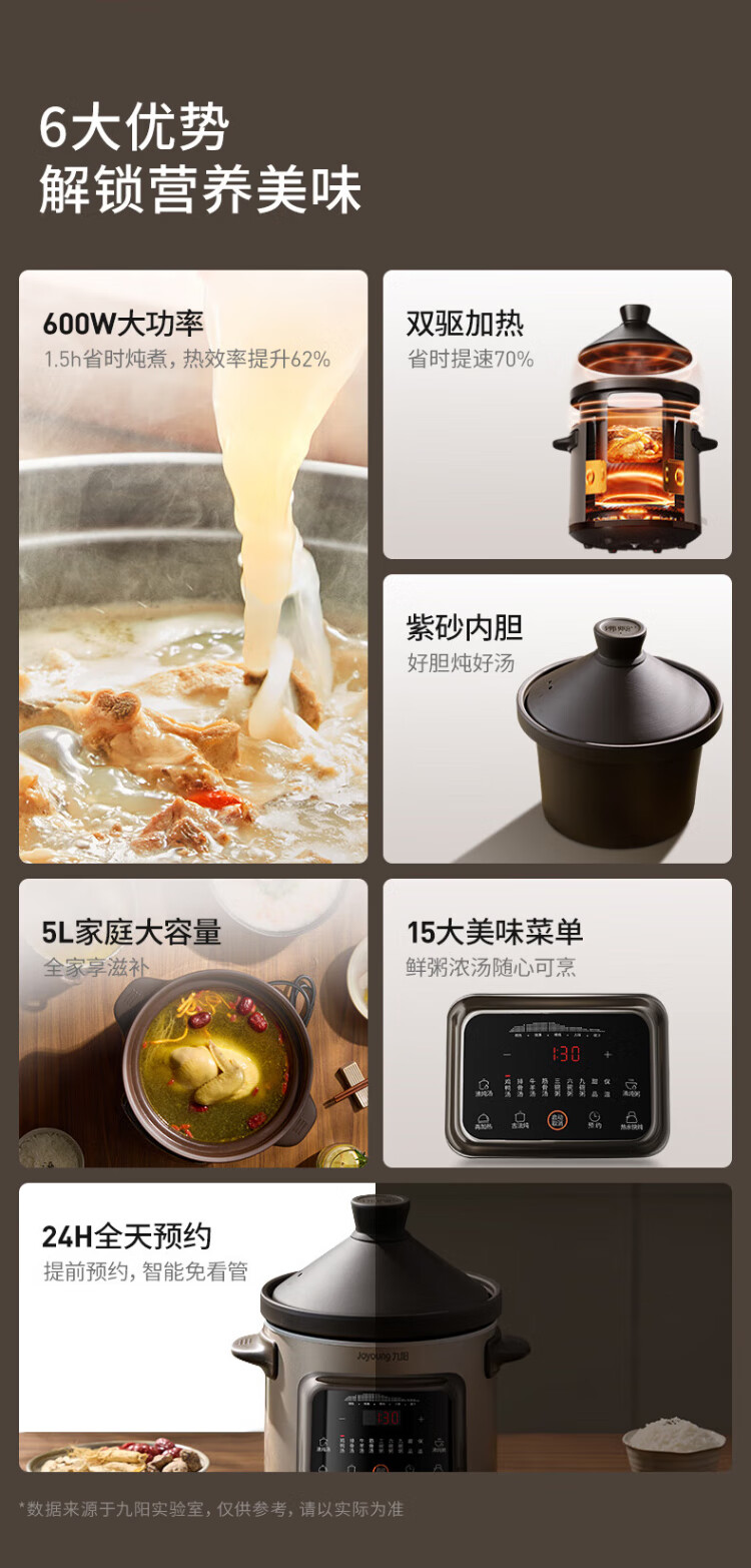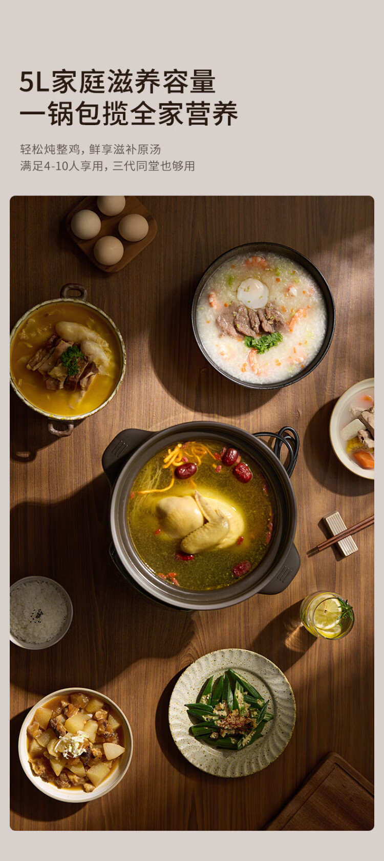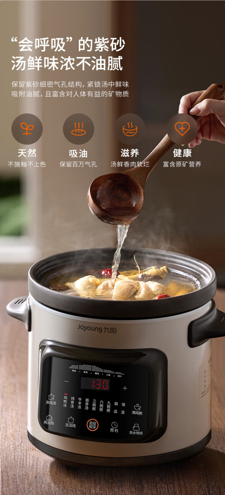 Joyoung quick-stewing electric stew pot, electric stew pot, electric casserole stew, purple casserole pot, bird's nest stew pot, porridge pot, direct stew pot, 5L large-capacity multi-function pot, can be reserved for heat preservation GD506