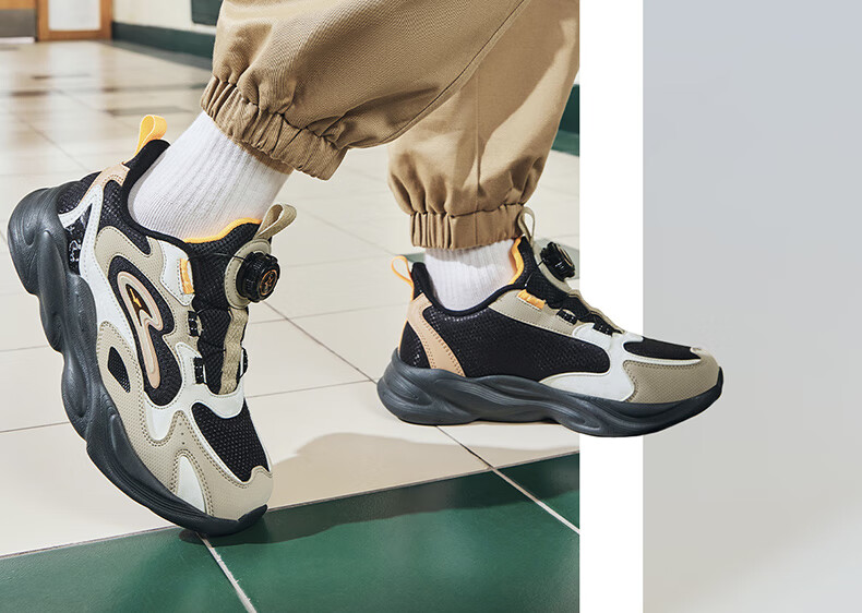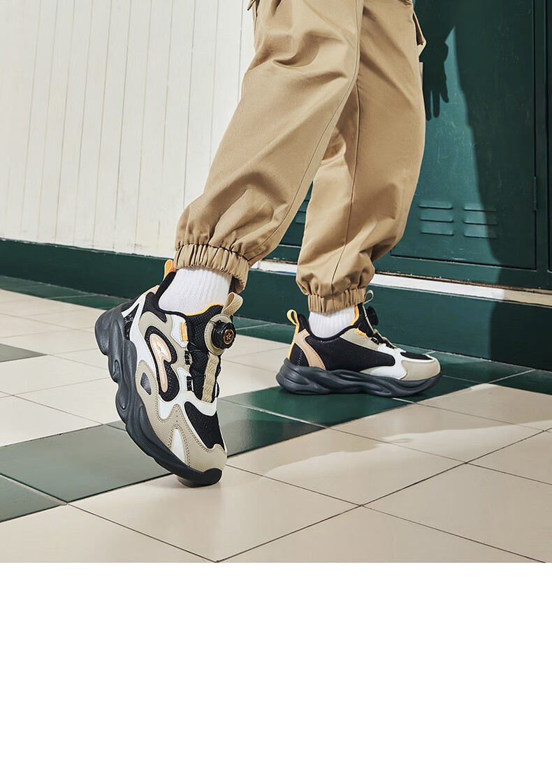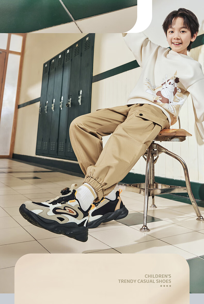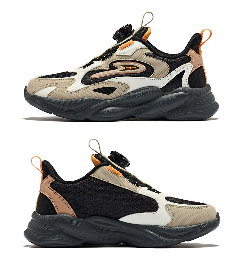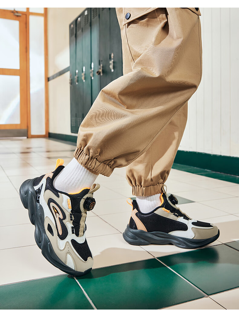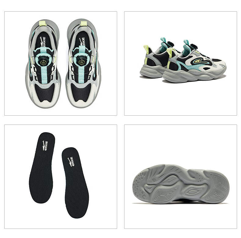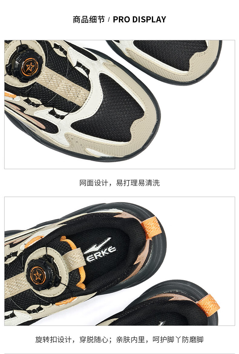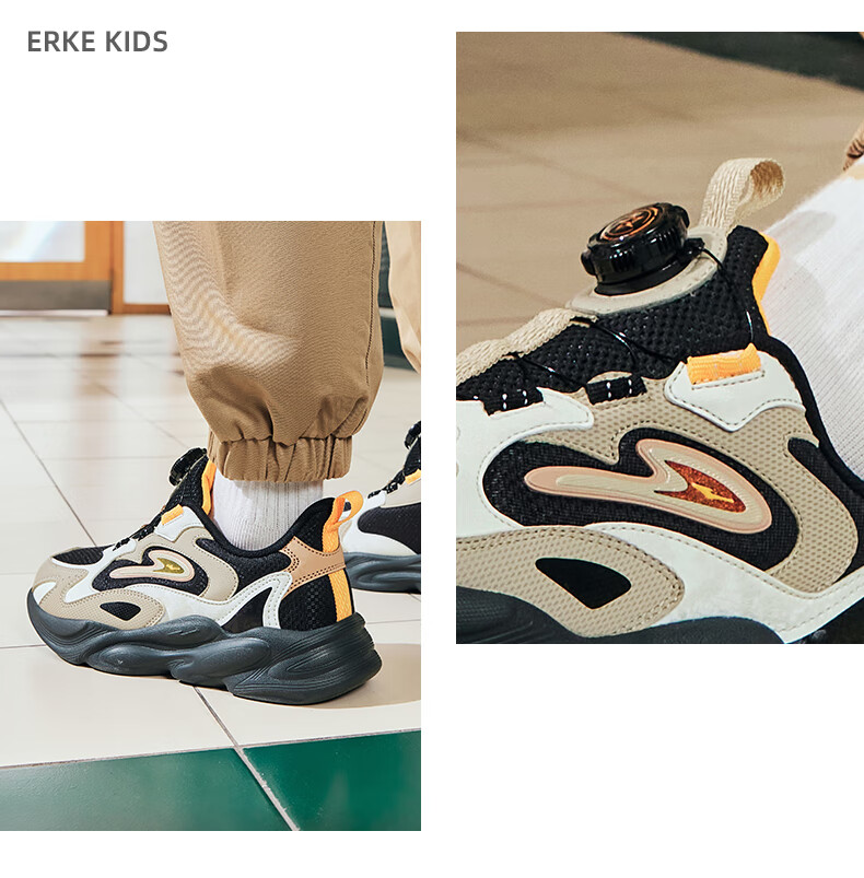 Hongxing Erke (ERKE) children's shoes, unisex children's morning star IP style knob buckle cushioning casual sports shoes black/light linen 38