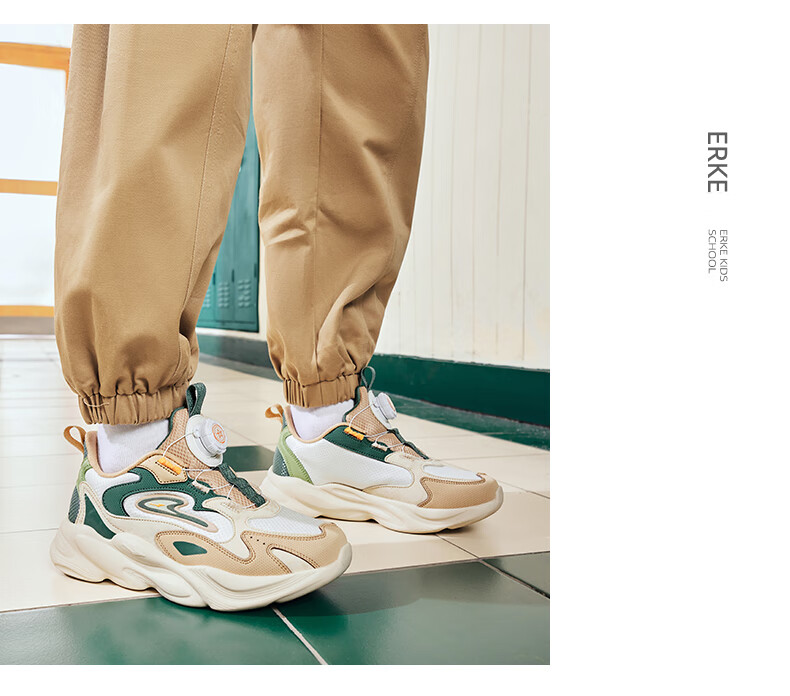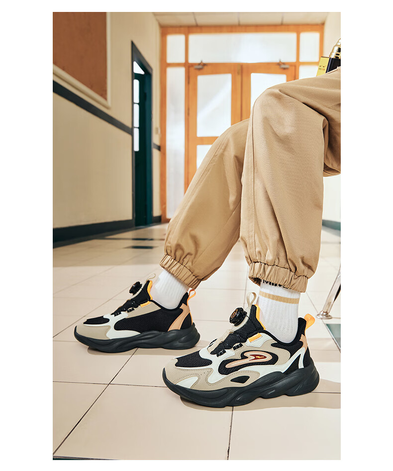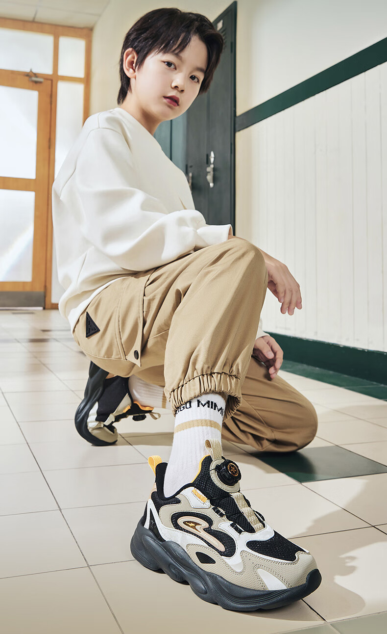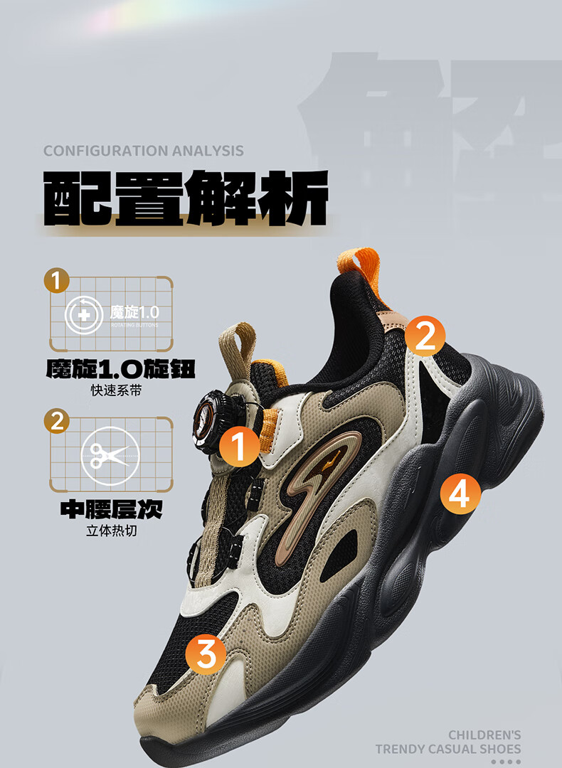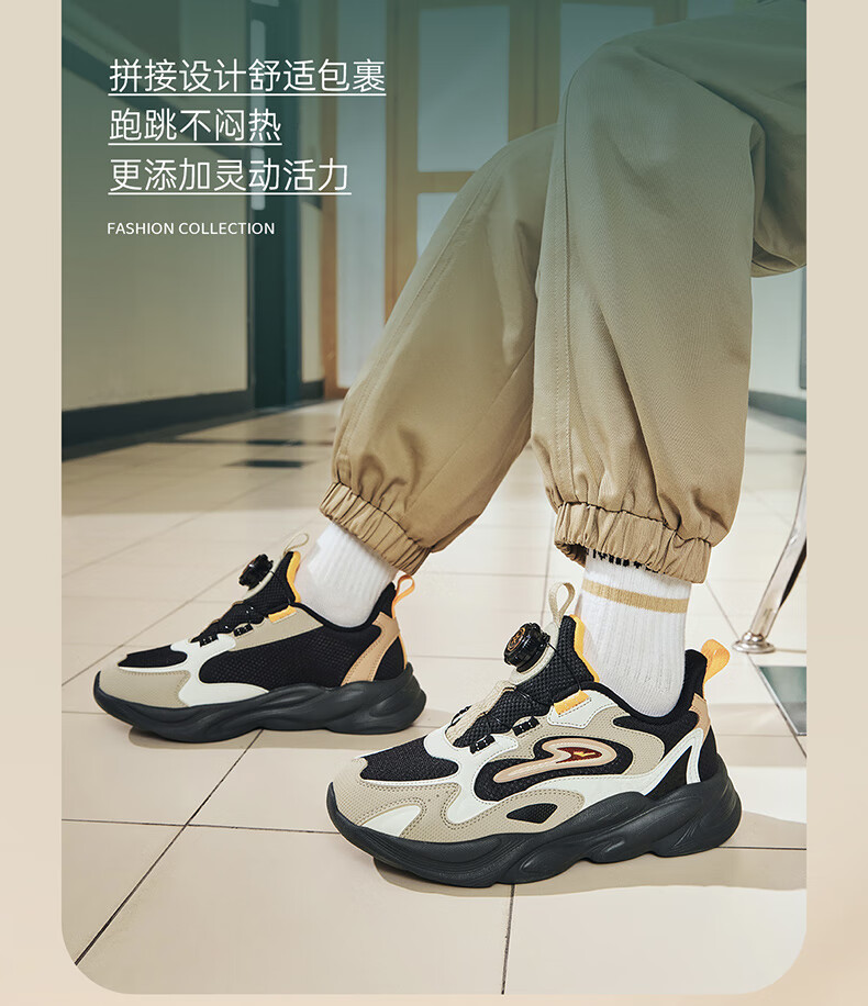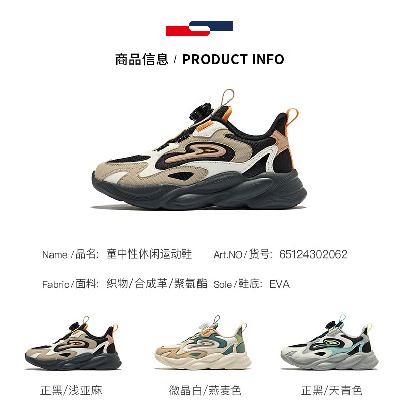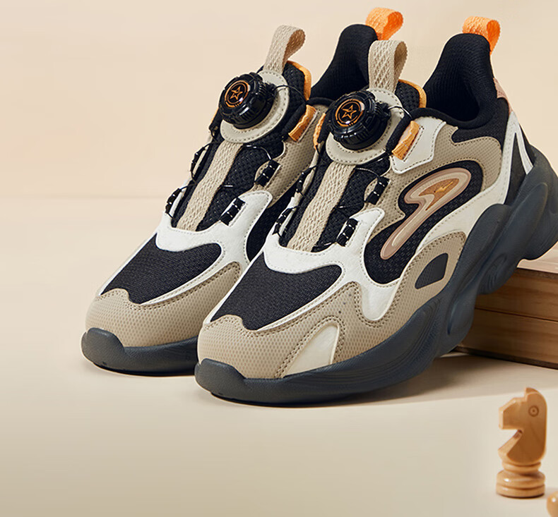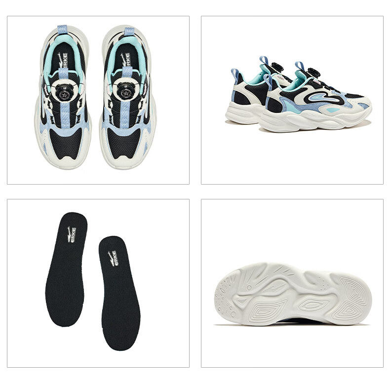 Hongxing Erke (ERKE) children's shoes, unisex children's morning star IP style knob buckle cushioning casual sports shoes black/light linen 38