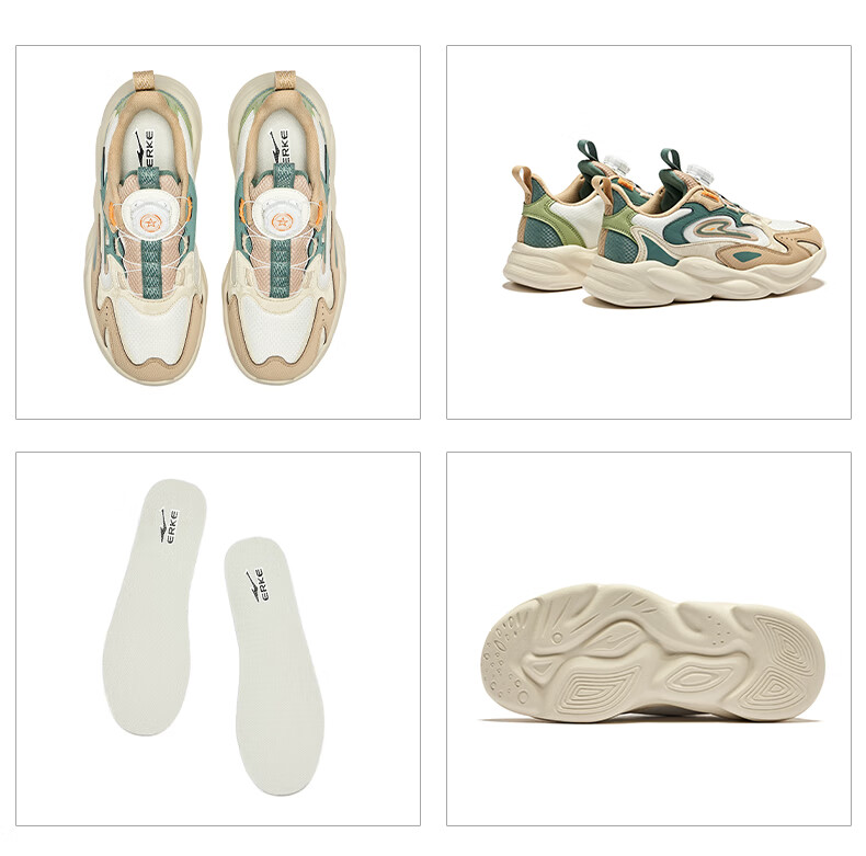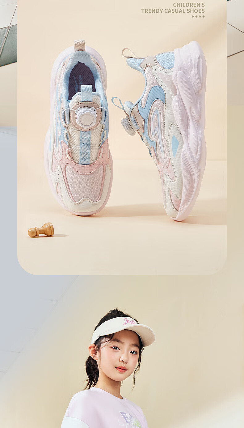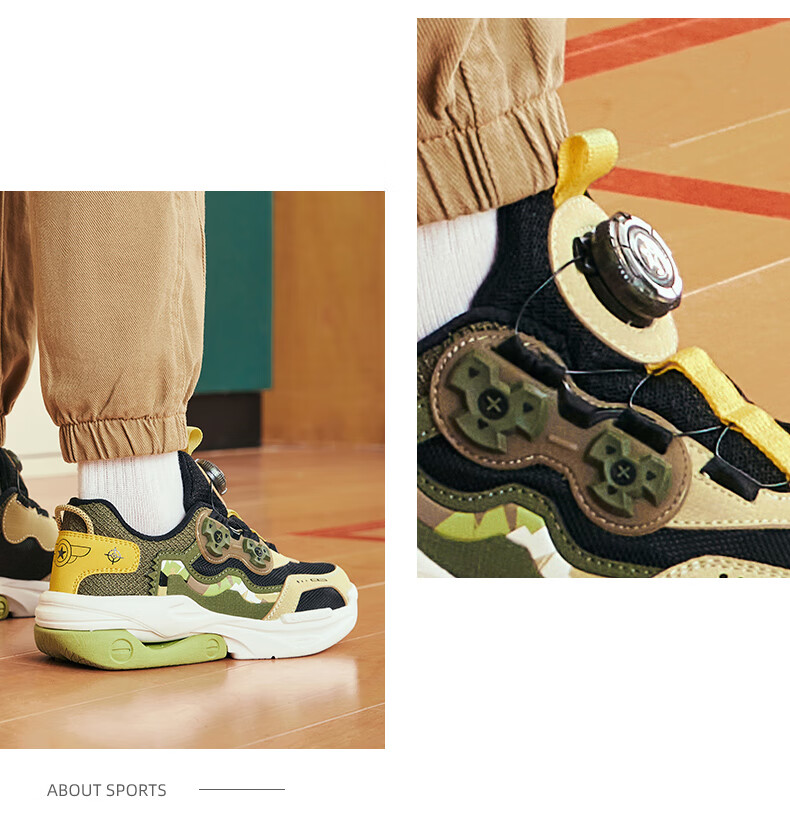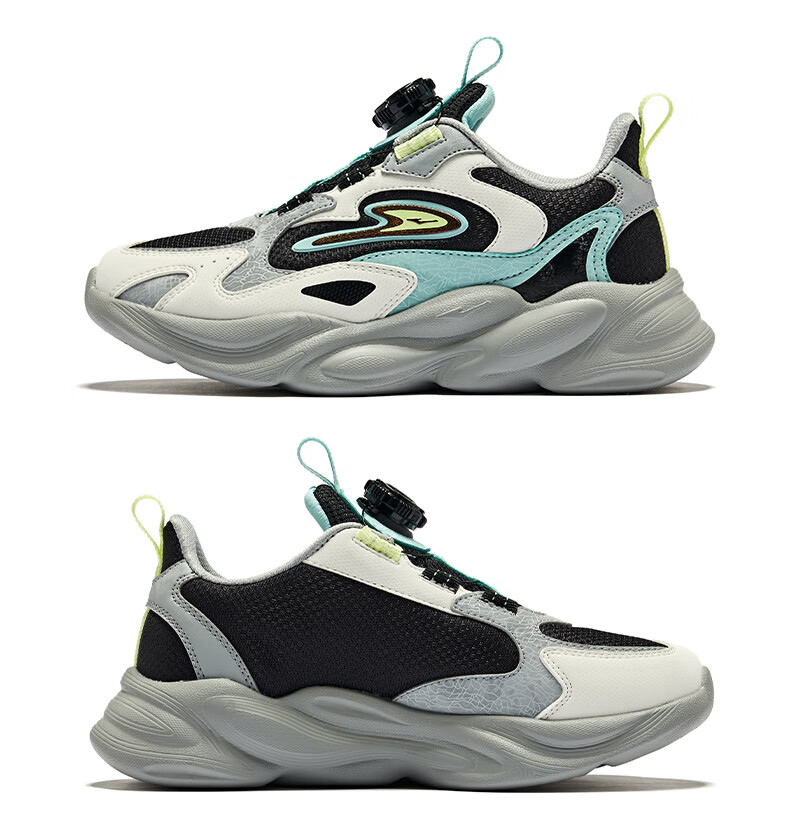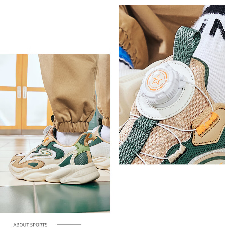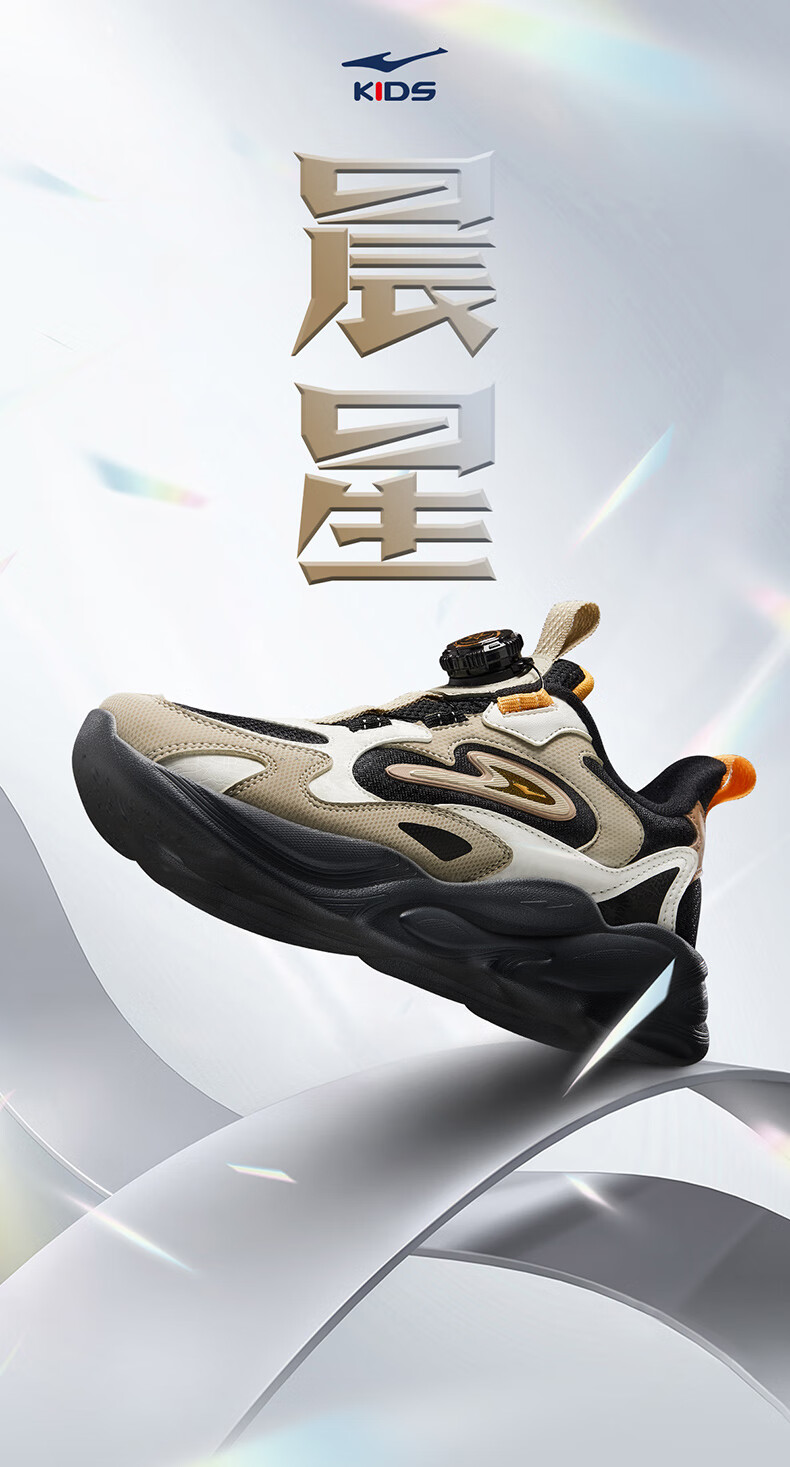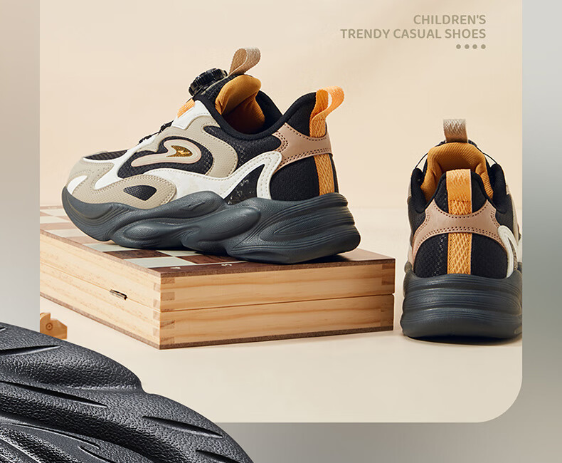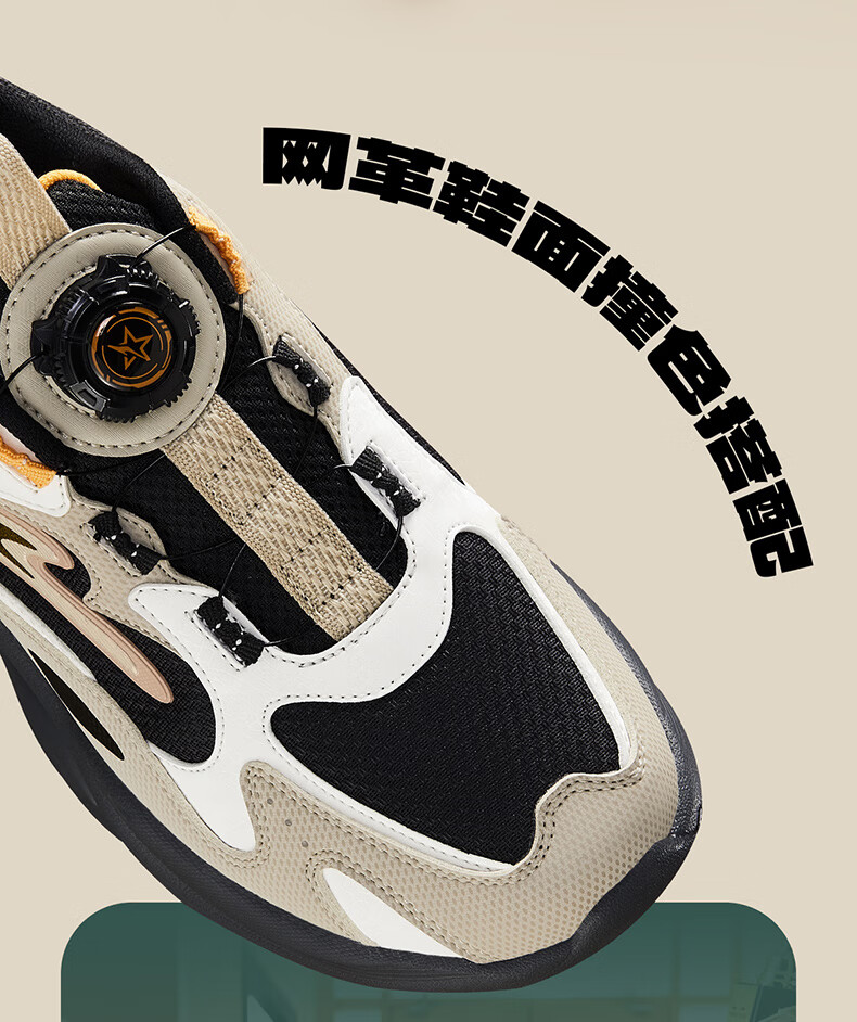 Hongxing Erke (ERKE) children's shoes, unisex children's morning star IP style knob buckle cushioning casual sports shoes black/light linen 38