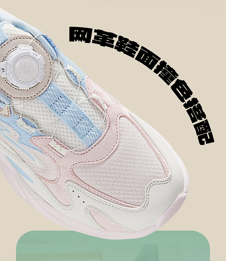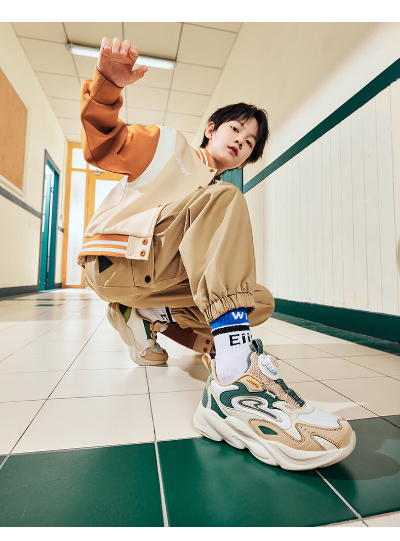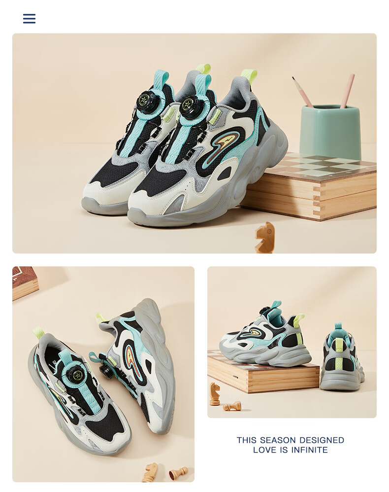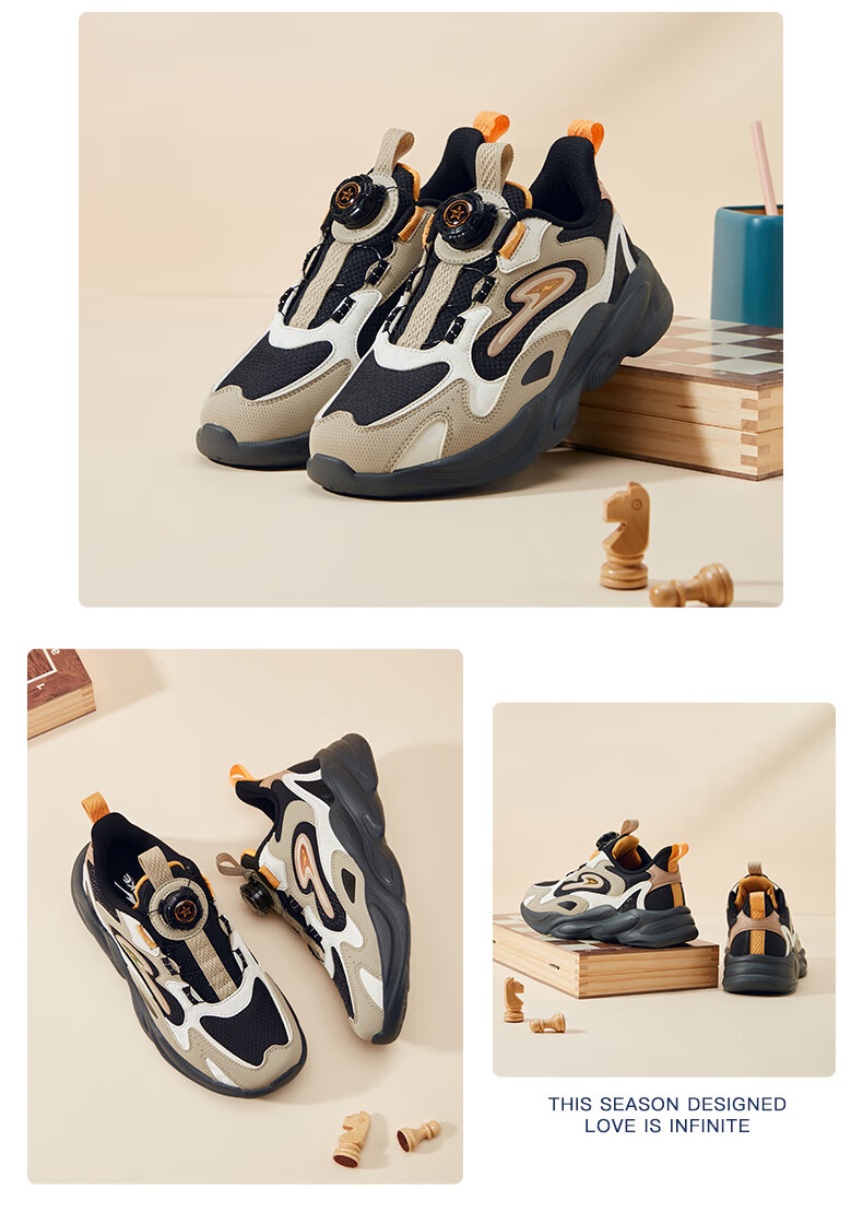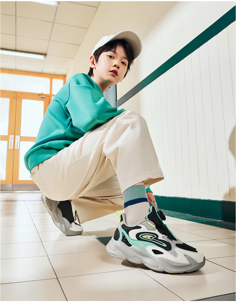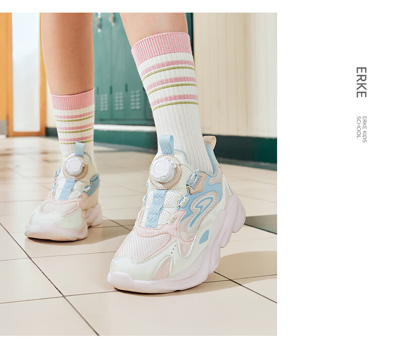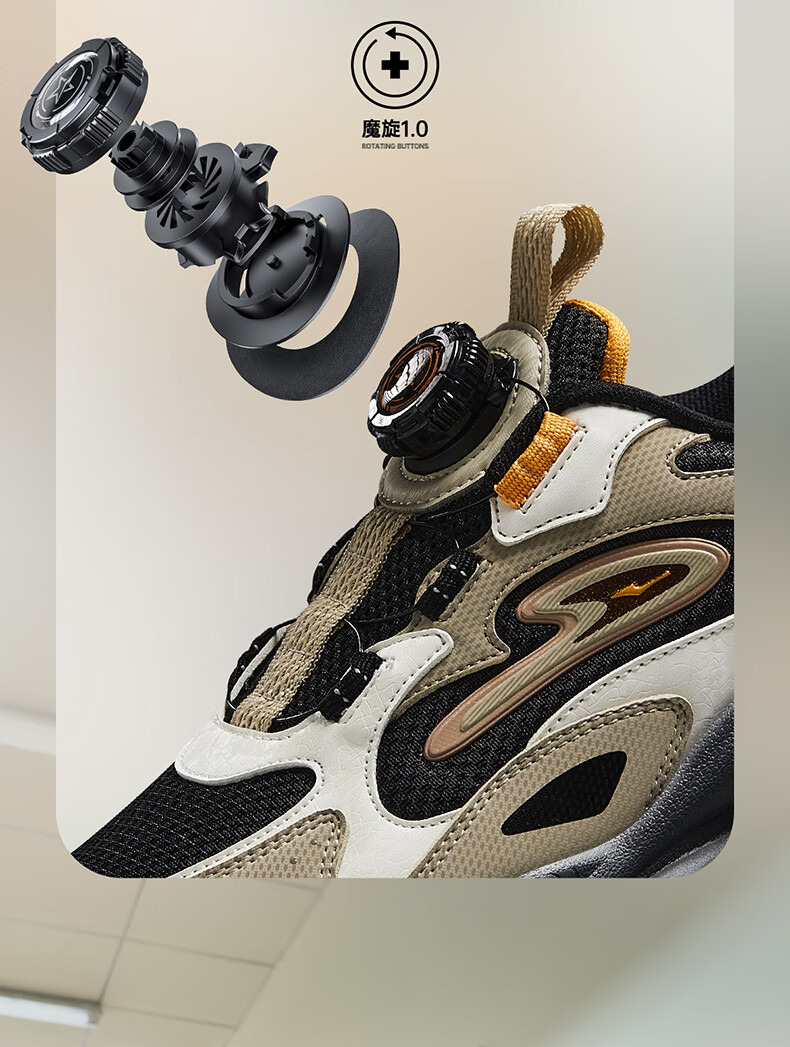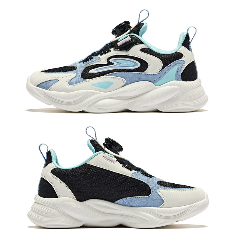 Hongxing Erke (ERKE) children's shoes, unisex children's morning star IP style knob buckle cushioning casual sports shoes black/light linen 38