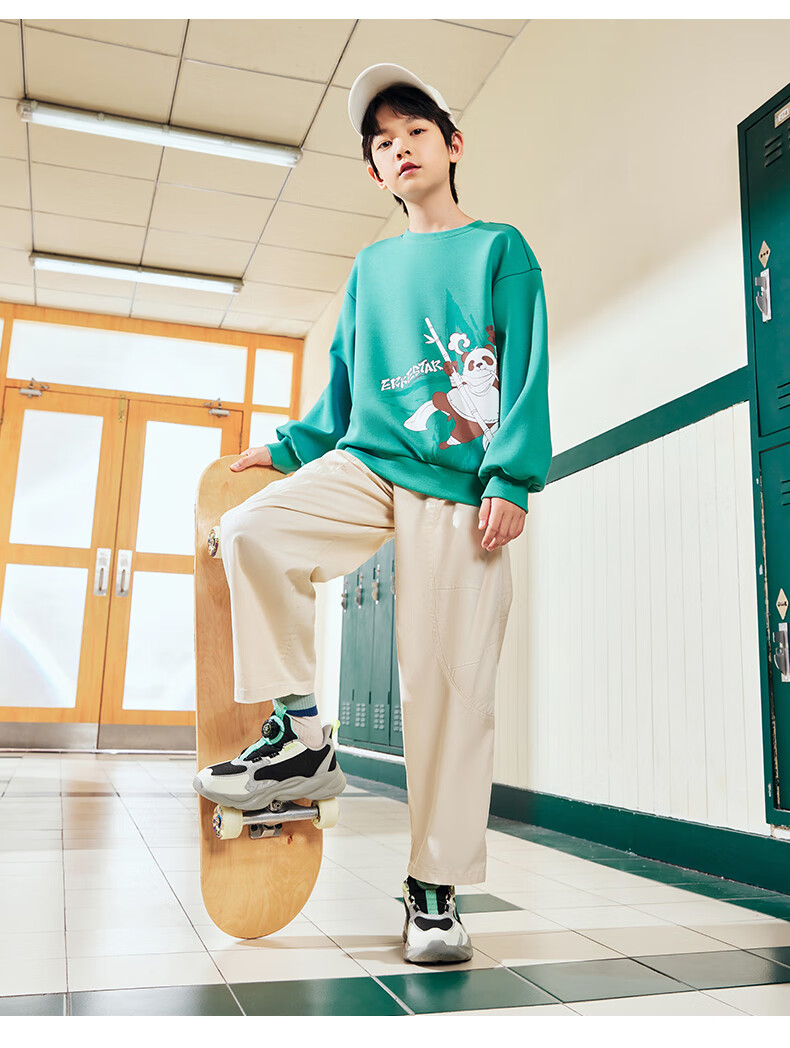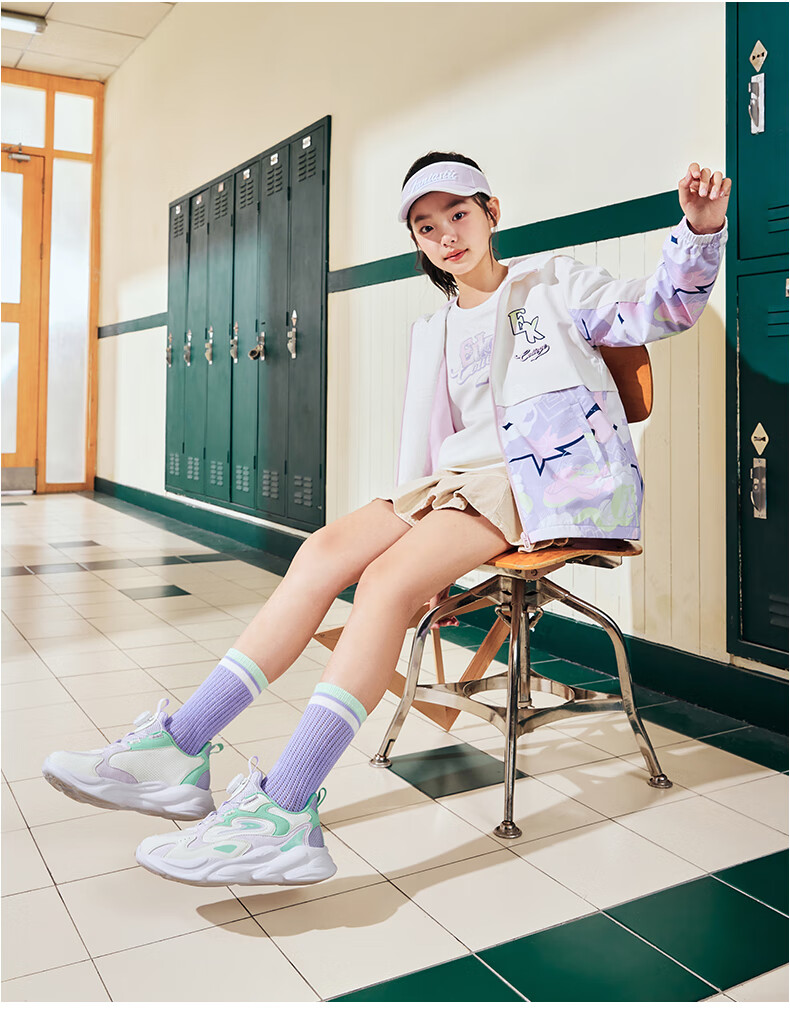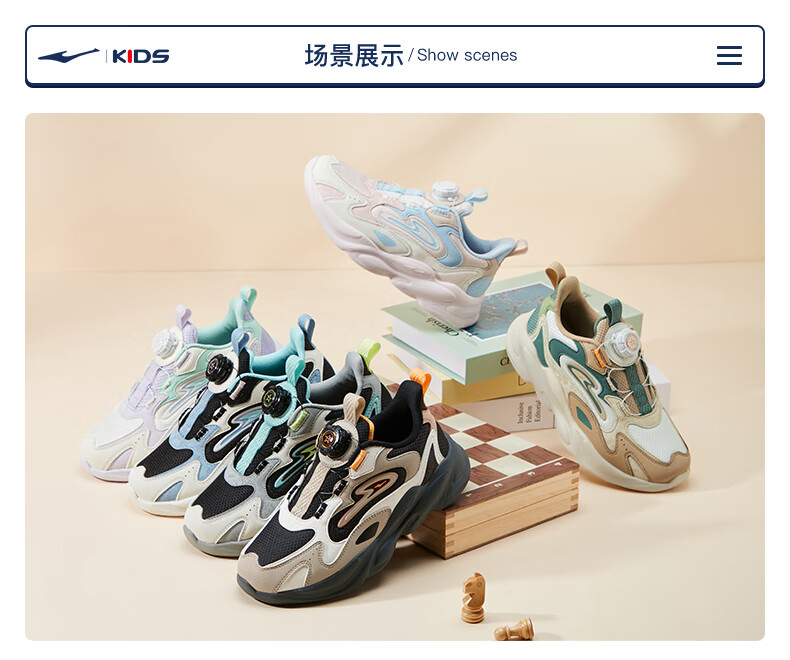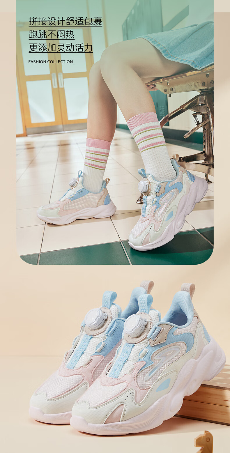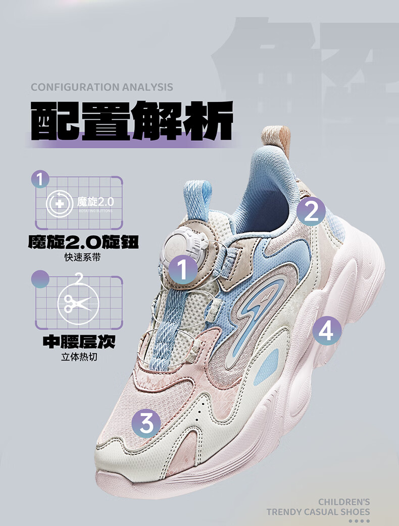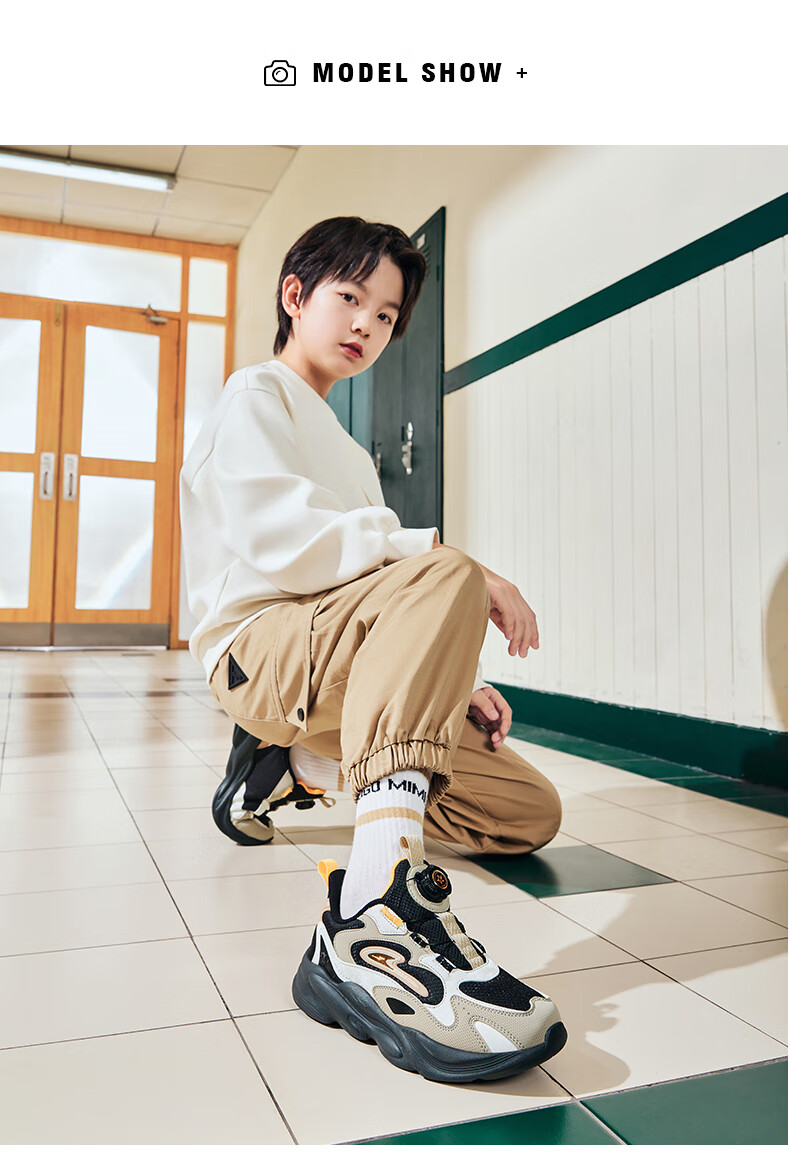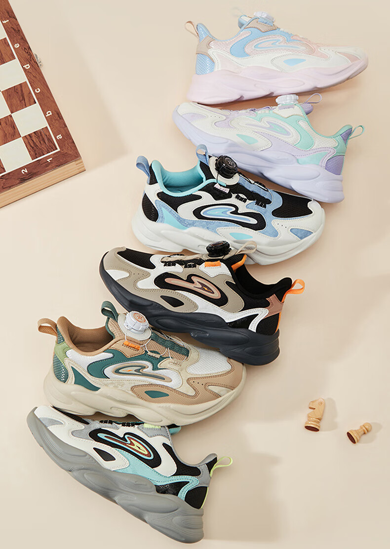 Hongxing Erke (ERKE) children's shoes, unisex children's morning star IP style knob buckle cushioning casual sports shoes black/light linen 38