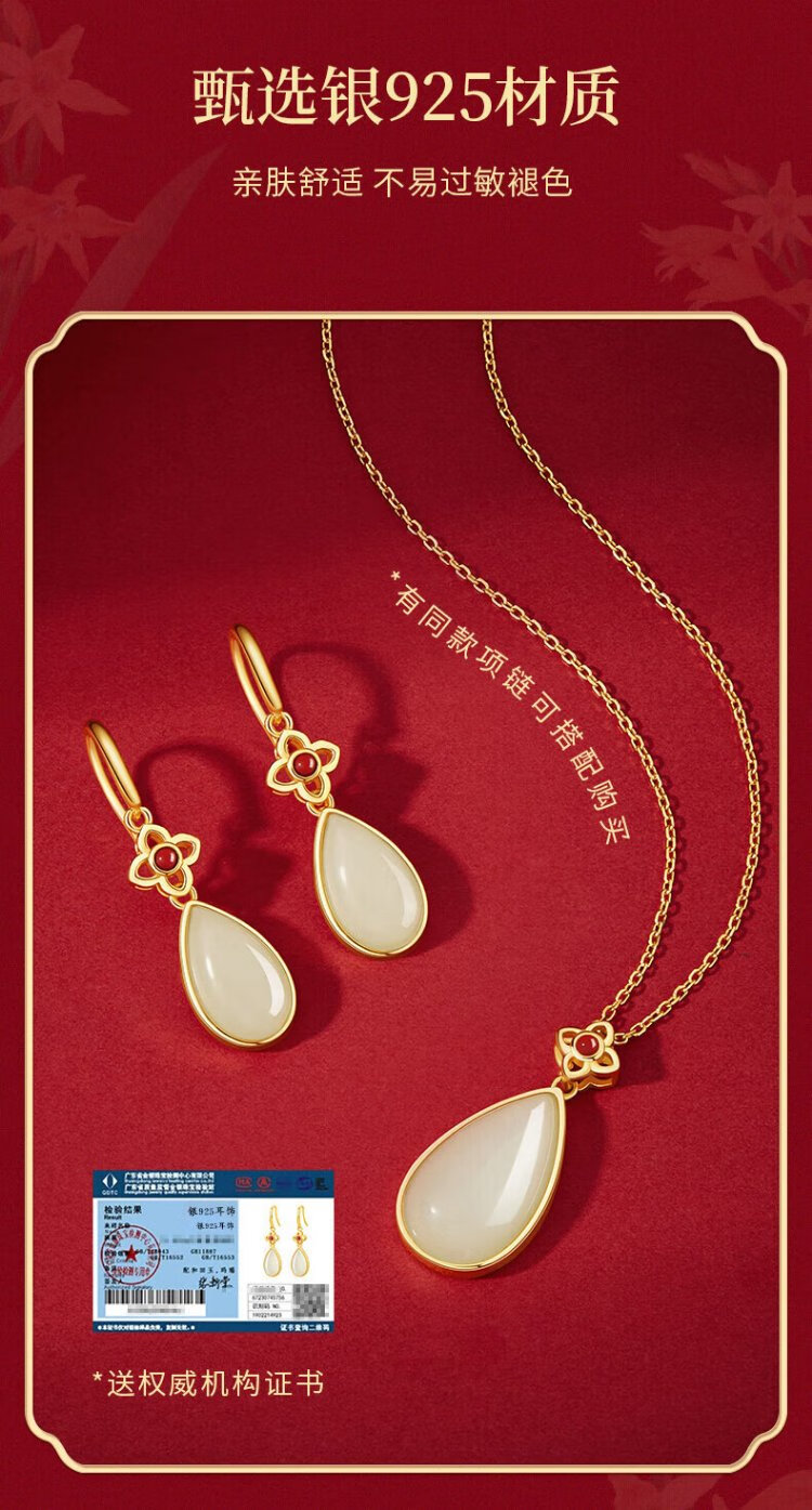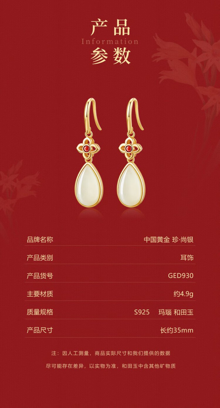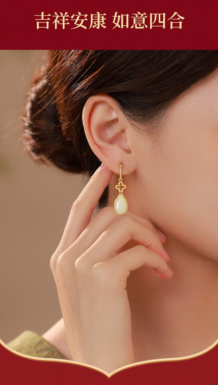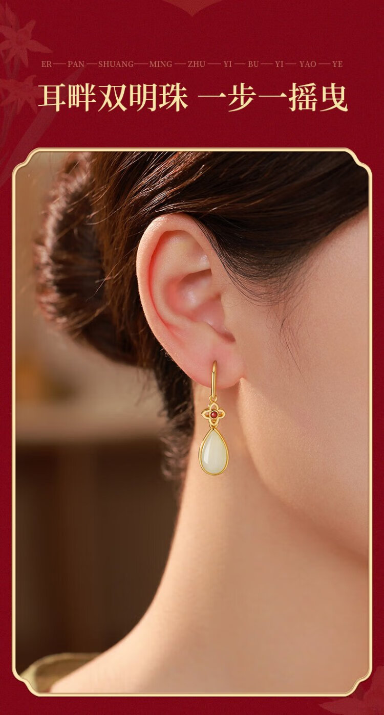 Zhen Shang Silver Chinese Gold Silver Earrings Women's Earrings Ring Light Luxurious High-end Birthday Gift for Girlfriend Wife Mom S925