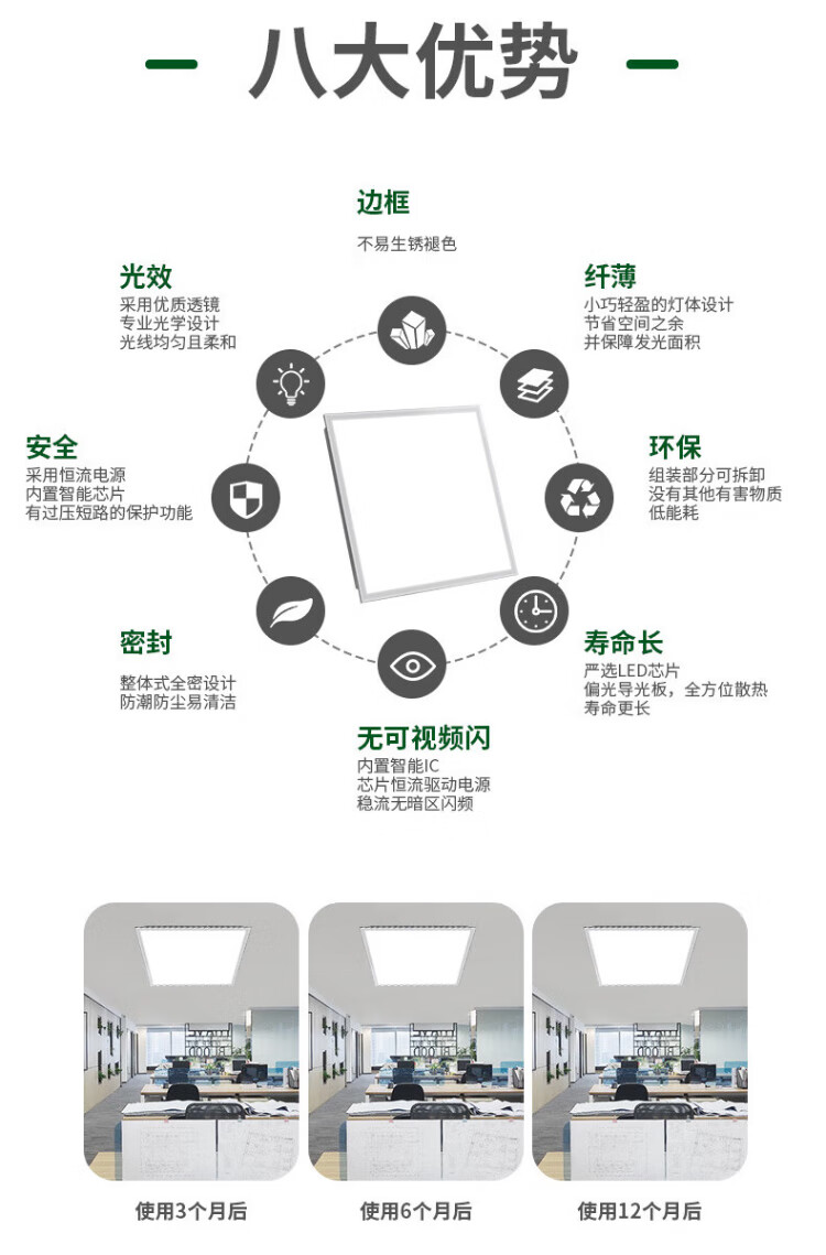 Gongbaili integrated ceiling light led flat panel light gusset light ceiling light office ultra-thin high color aluminum gusset panel light 600*600 economical model