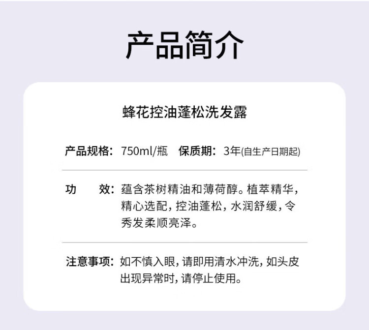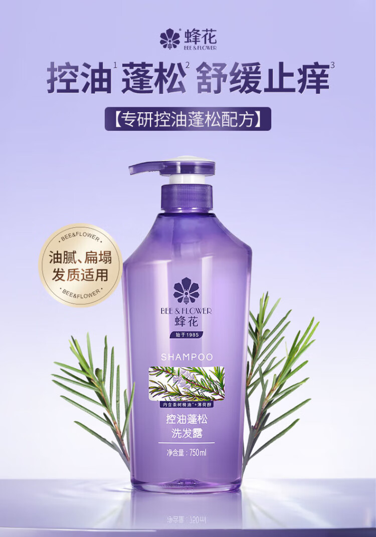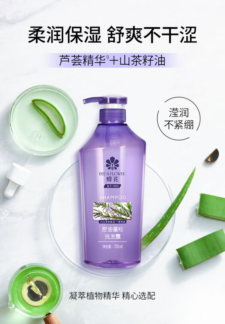 Bee flower shampoo oil-controlling, fluffy, soothing, itching, supple, elegant, non-drying, non-drying shampoo for men and women 750ml