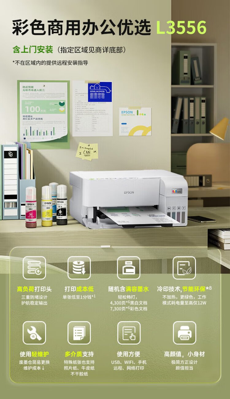 Epson (EPSON) L3556 A4 color ink tank printer print copy scan multi-function machine wireless WIFI enterprise business