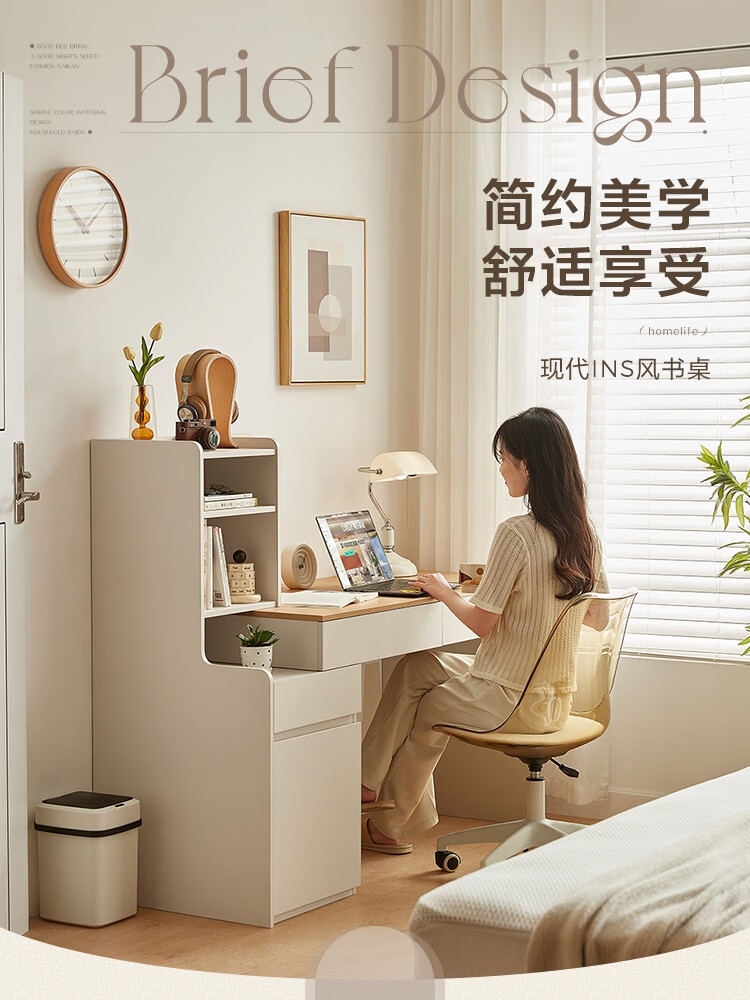 Lin's home desk study table storage versatile telescopic desk and chair combination study small apartment desk OV2V