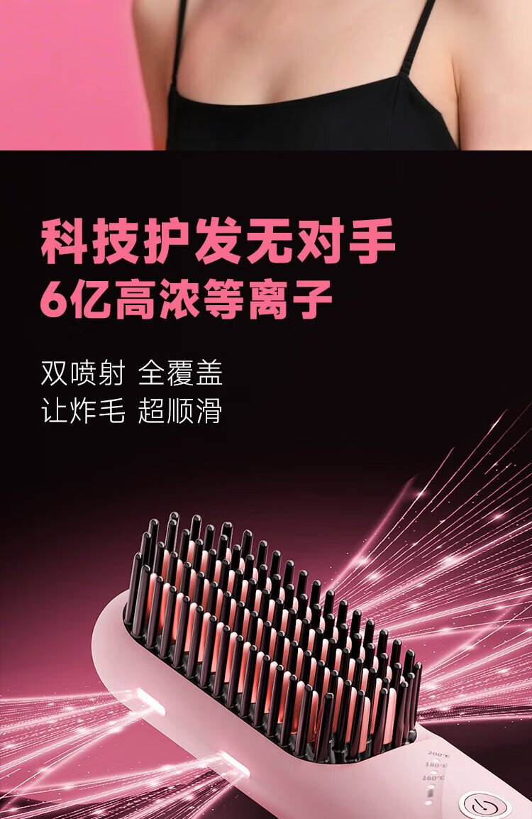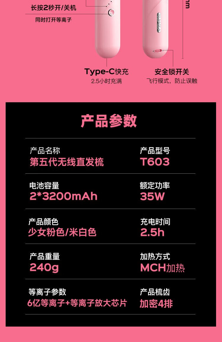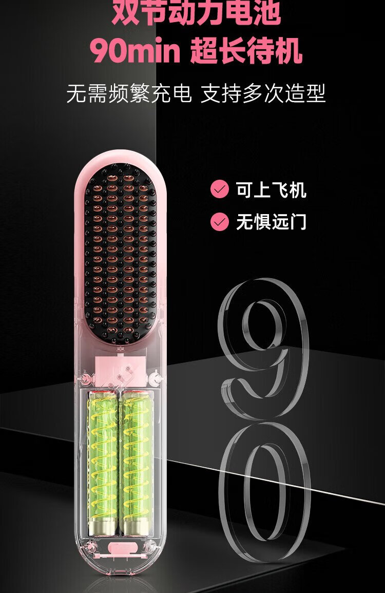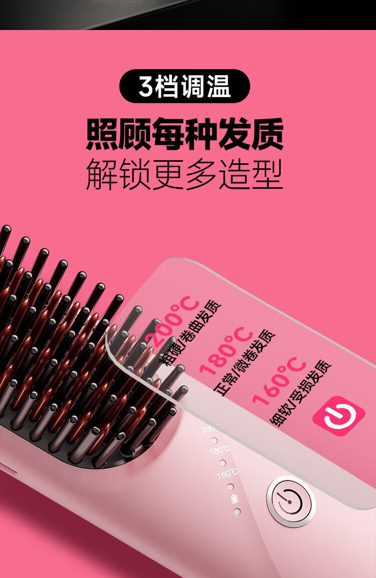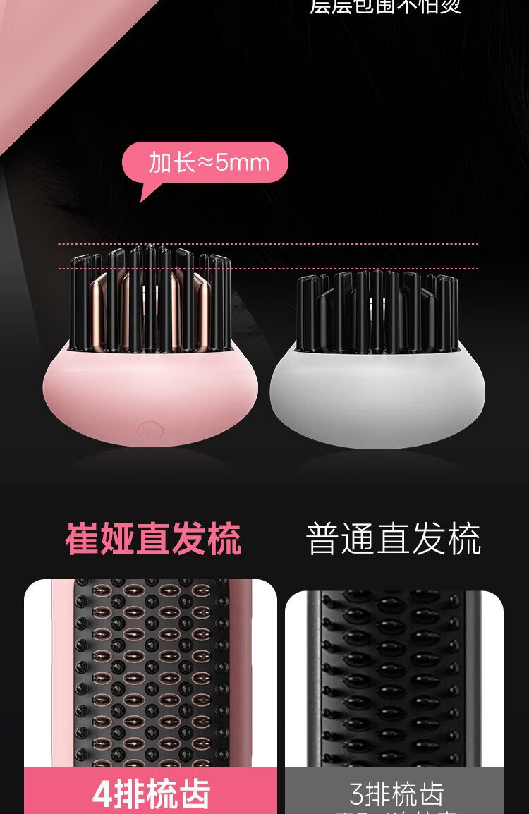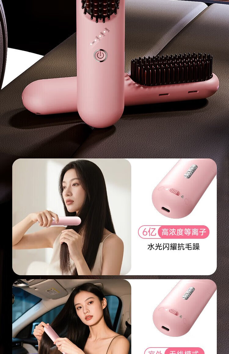 Cui Ya fifth generation wireless hair straightening comb, 600 million plasma moisturizing hair care, constant temperature and long-lasting styling, no damage to hair, straight and curling dual-purpose T603 pink 520 birthday gift