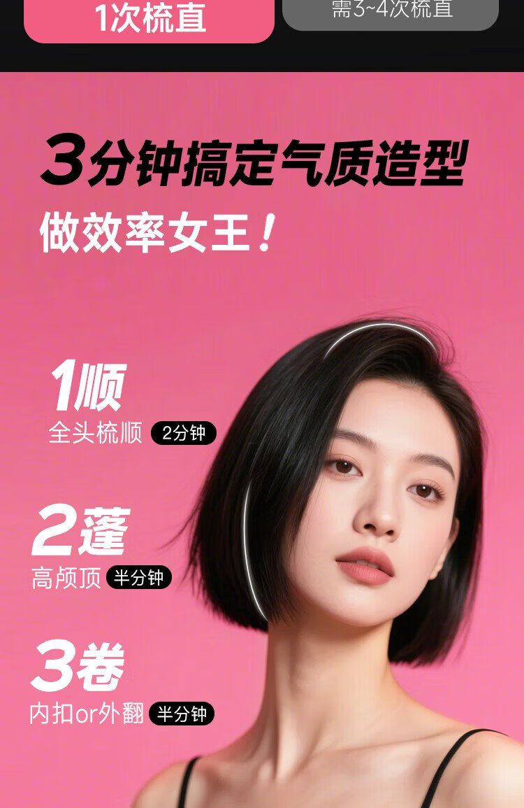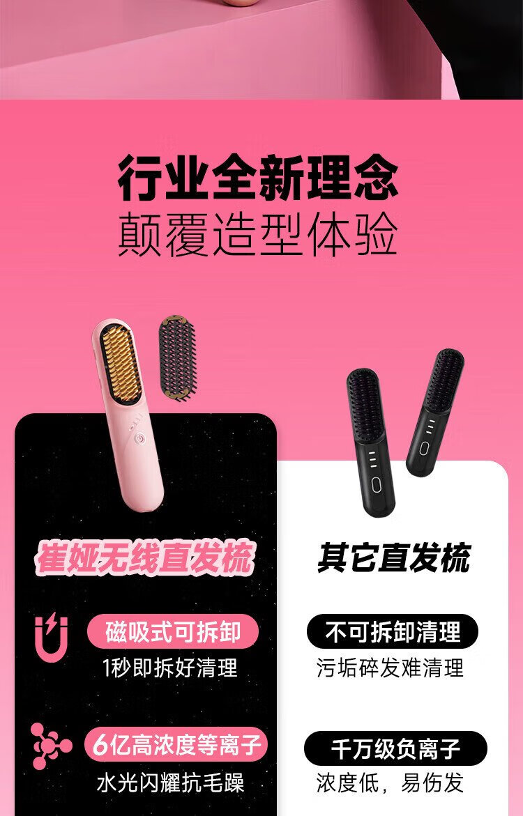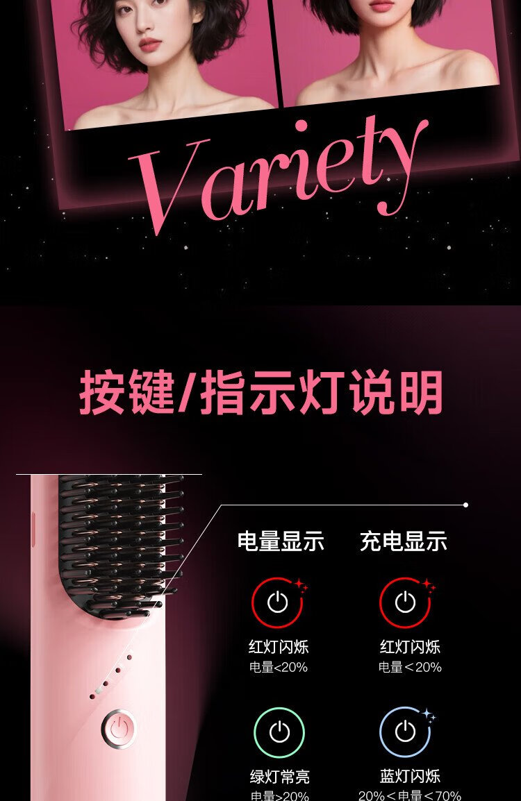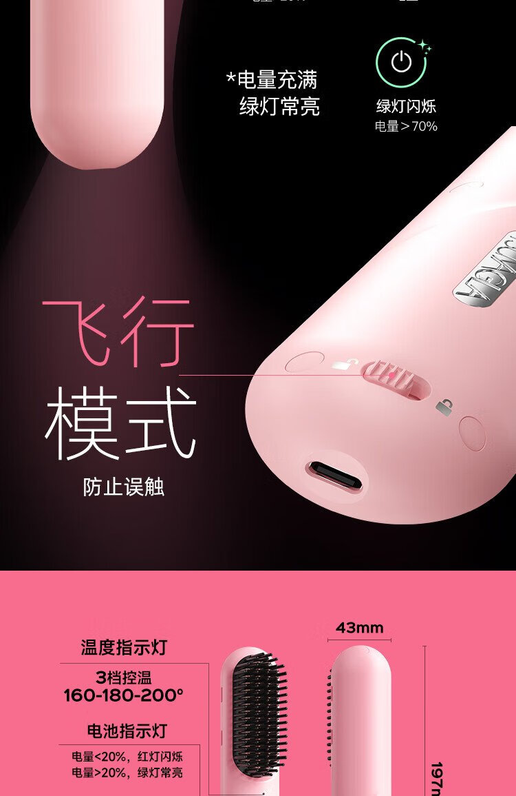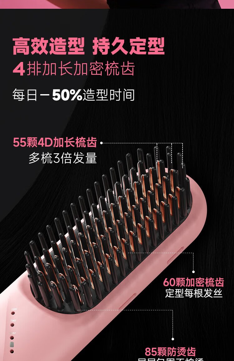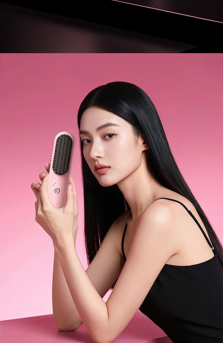 Cui Ya fifth generation wireless hair straightening comb, 600 million plasma moisturizing hair care, constant temperature and long-lasting styling, no damage to hair, straight and curling dual-purpose T603 pink 520 birthday gift
