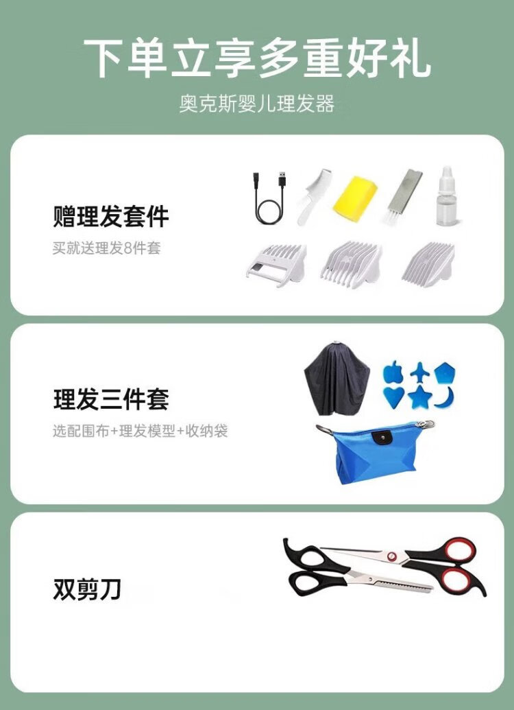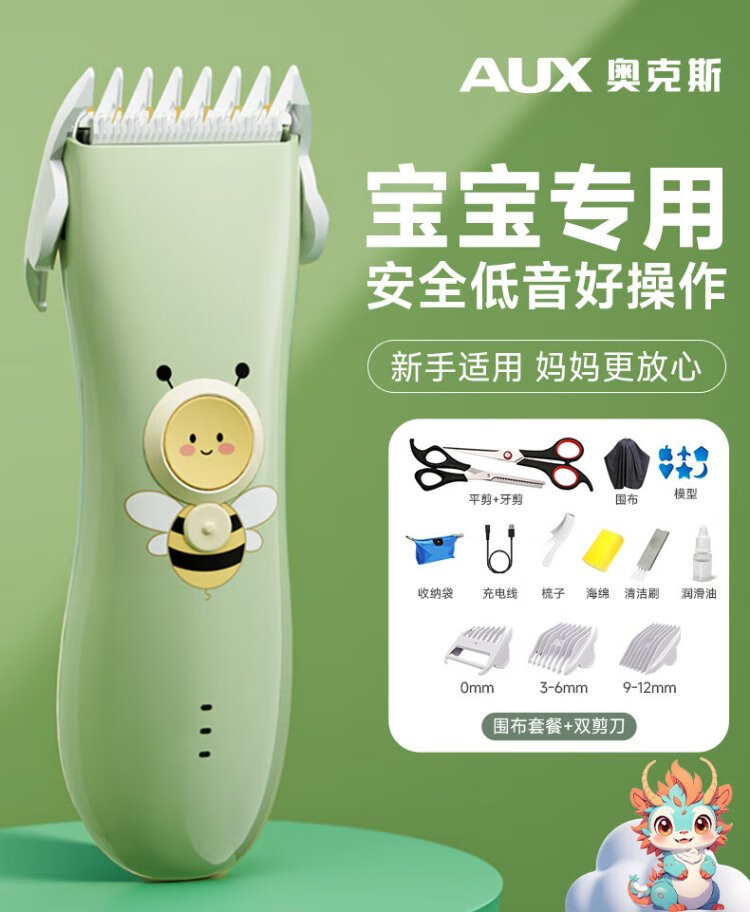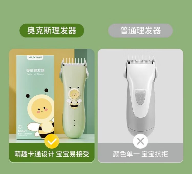 AUX baby hair clipper household light-sound electric clipper for baby and children electric hair clipper shaving tool full body washable standard + double clipper