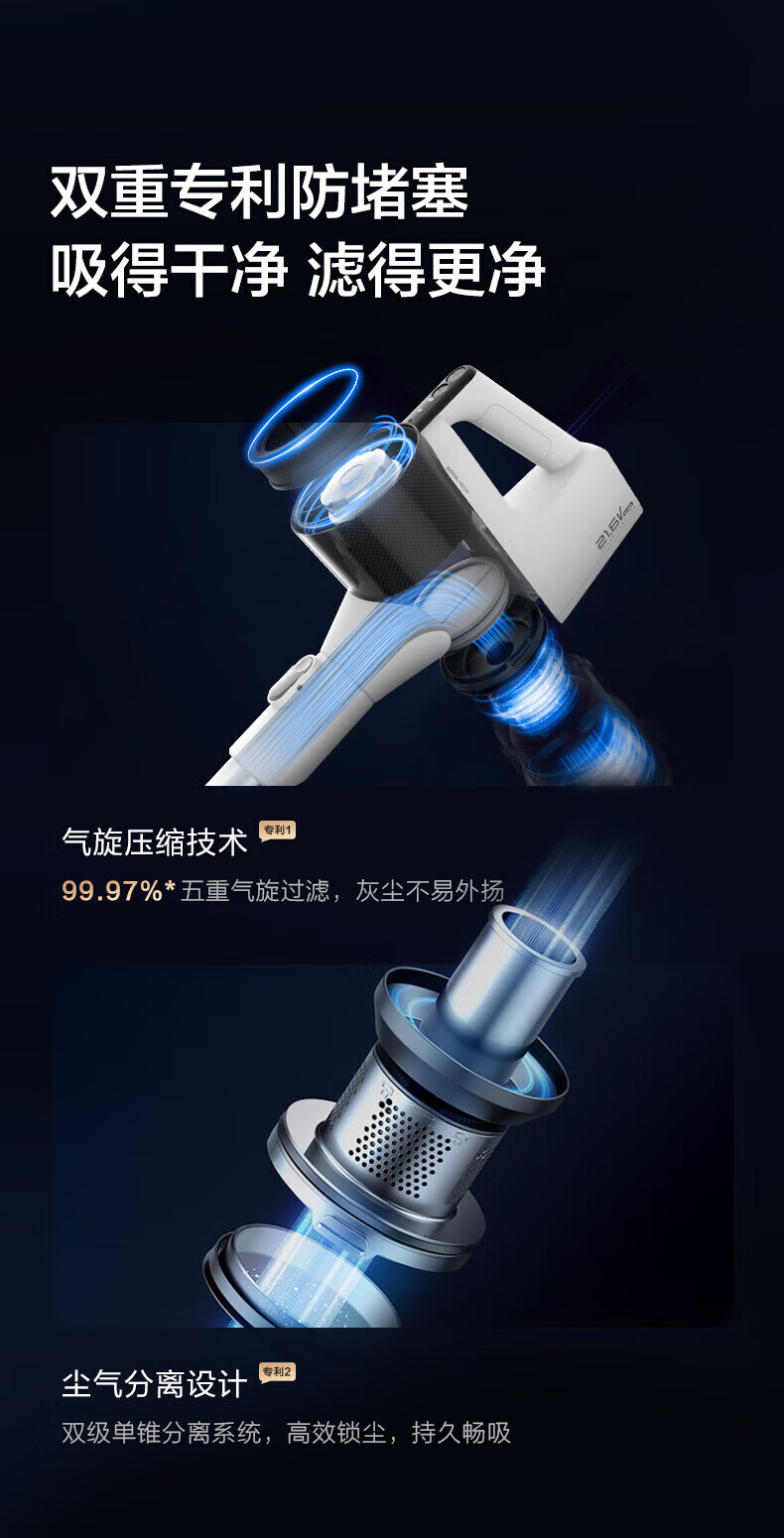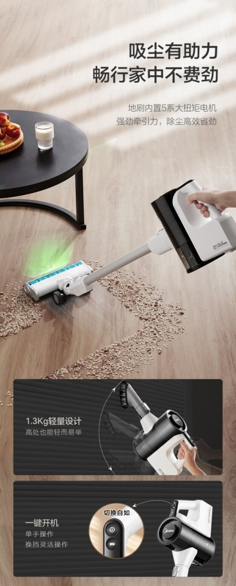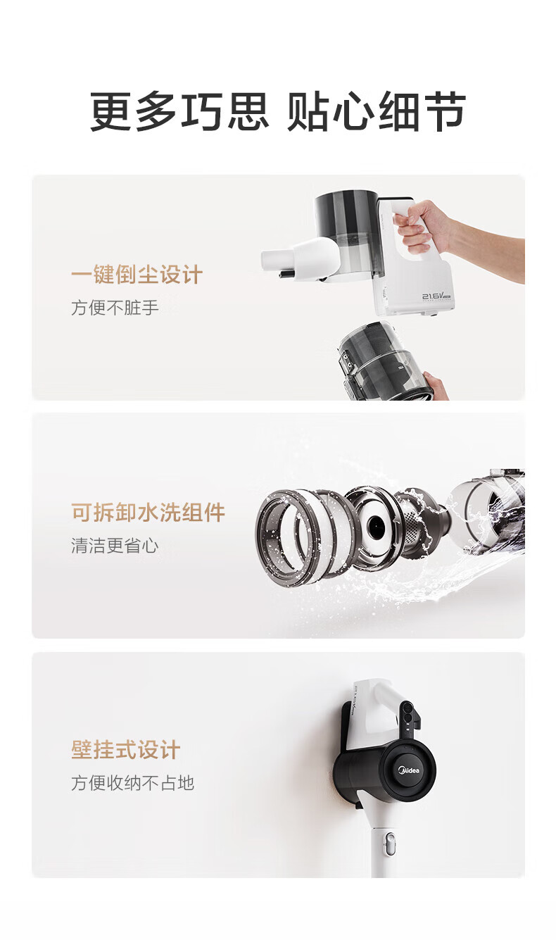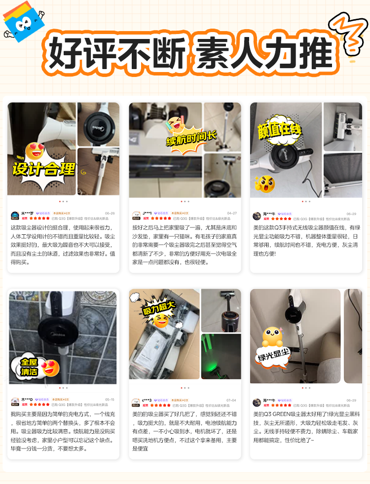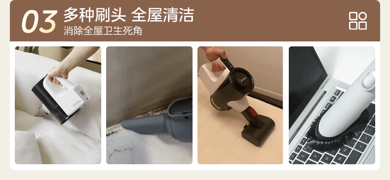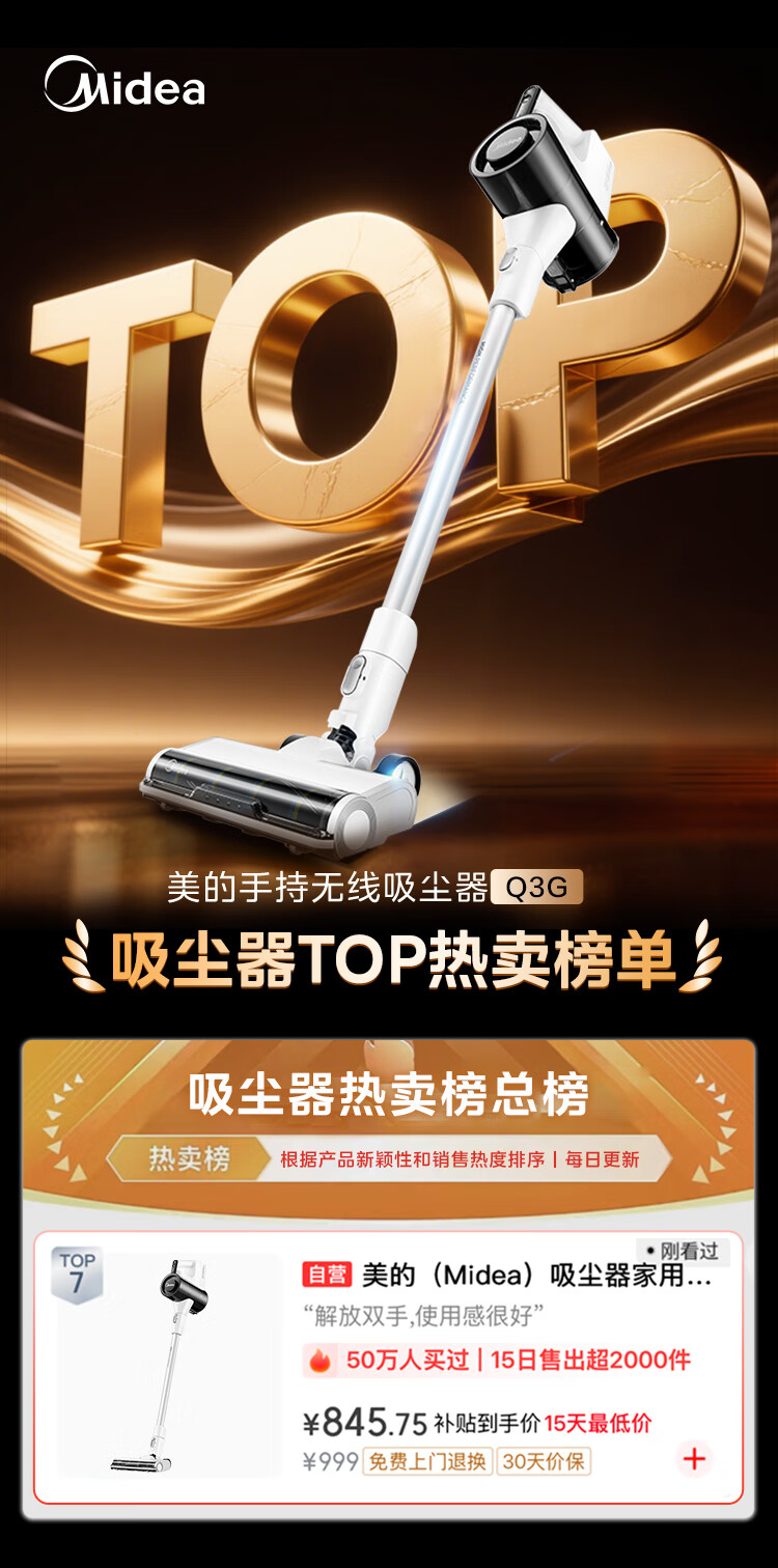 Midea vacuum cleaner household Q3 Green wireless handheld vacuum cleaner high-power super suction green light dust display mite removal dust car-mounted lightweight large suction