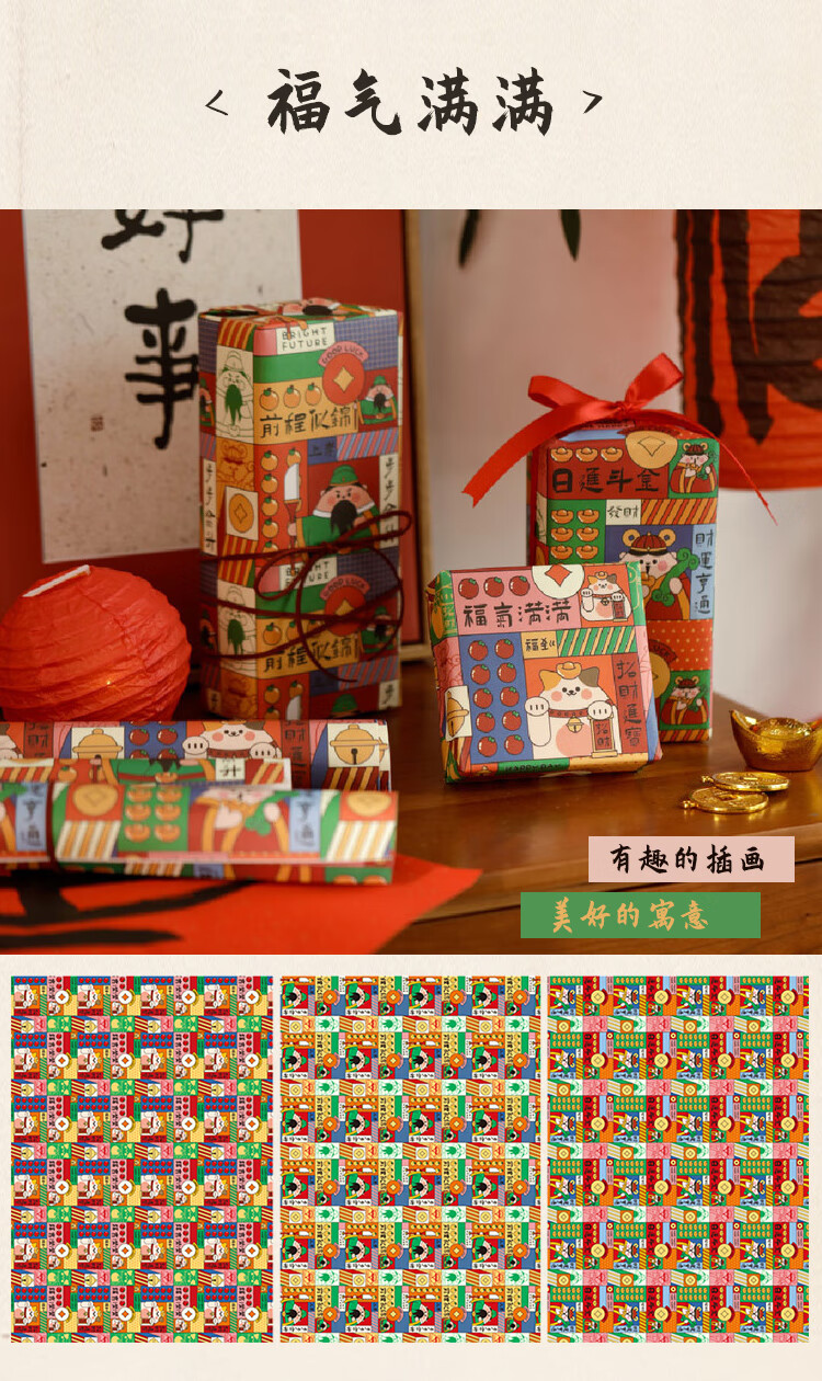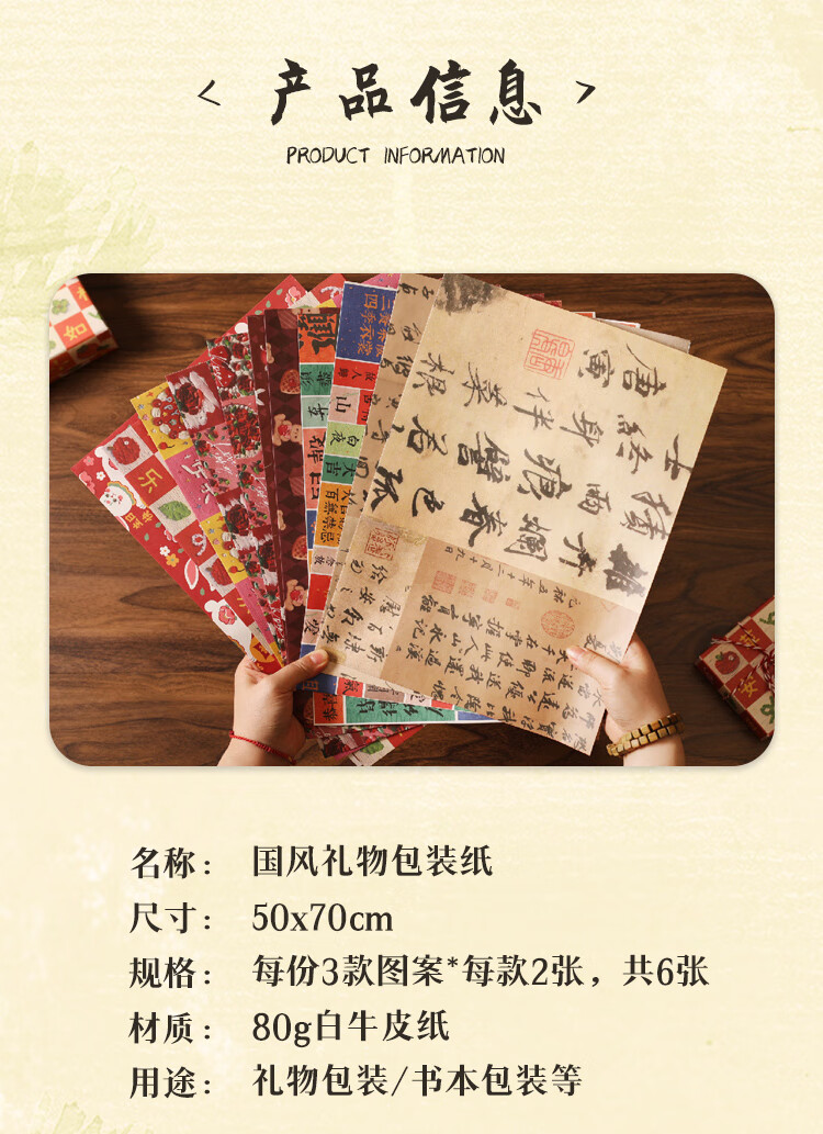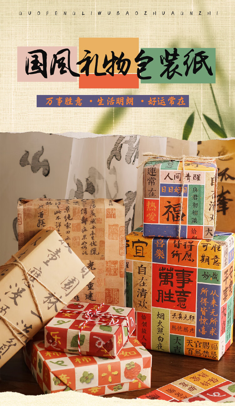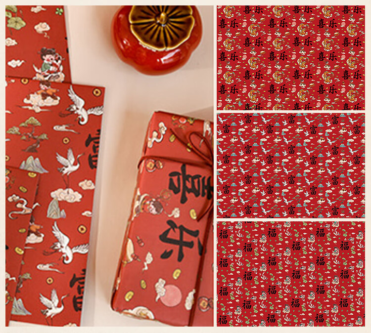 Rümke wrapping paper birthday gift antique calligraphy flower wrapping paper kraft book cover paper ink painting 6 sheets 9287