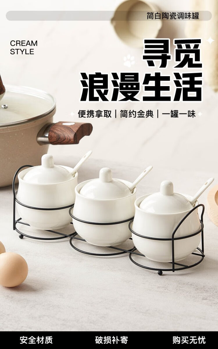 Youlaifu ceramic seasoning jar 3-pack seasoning box kitchen household seasoning jar set chili oil MSG salt jar combination pack
