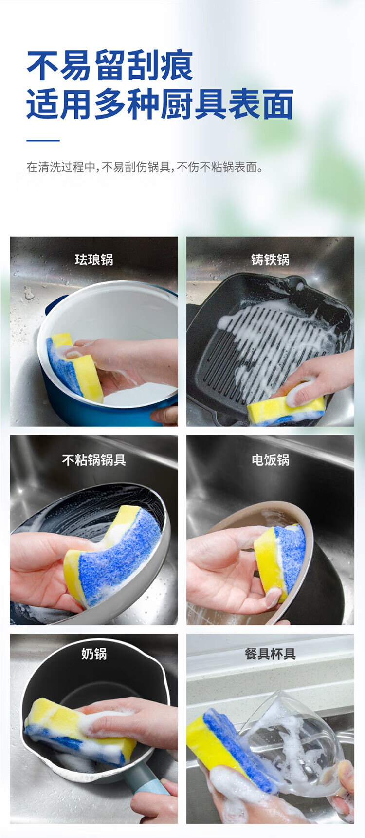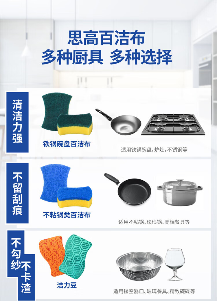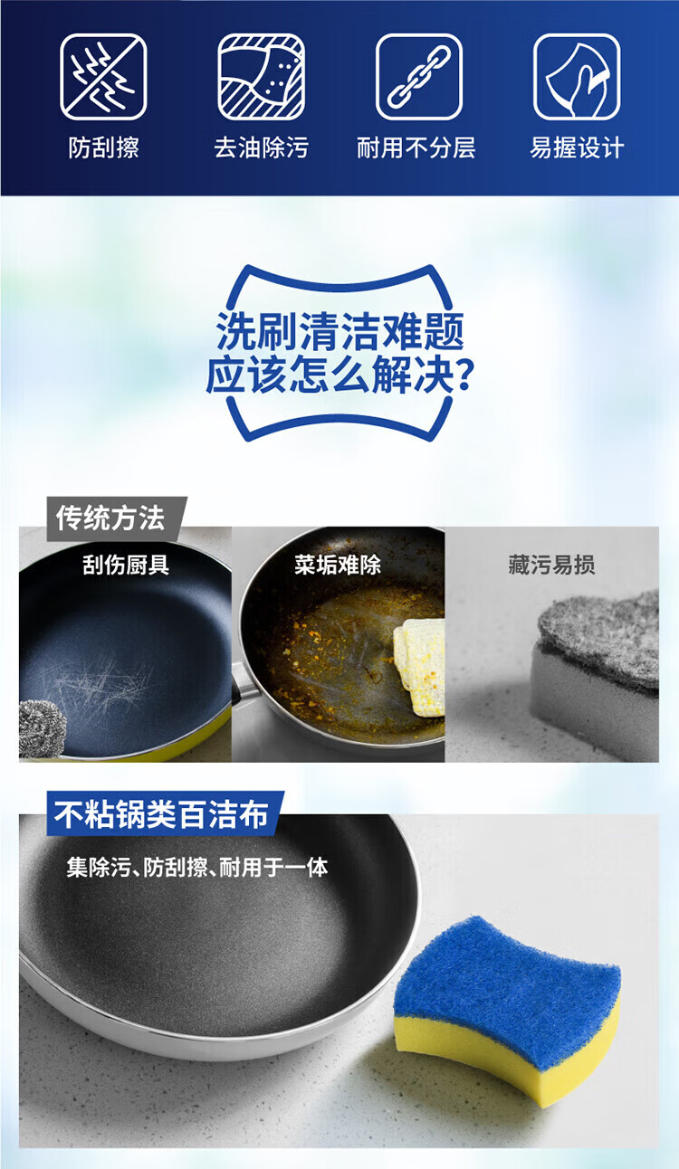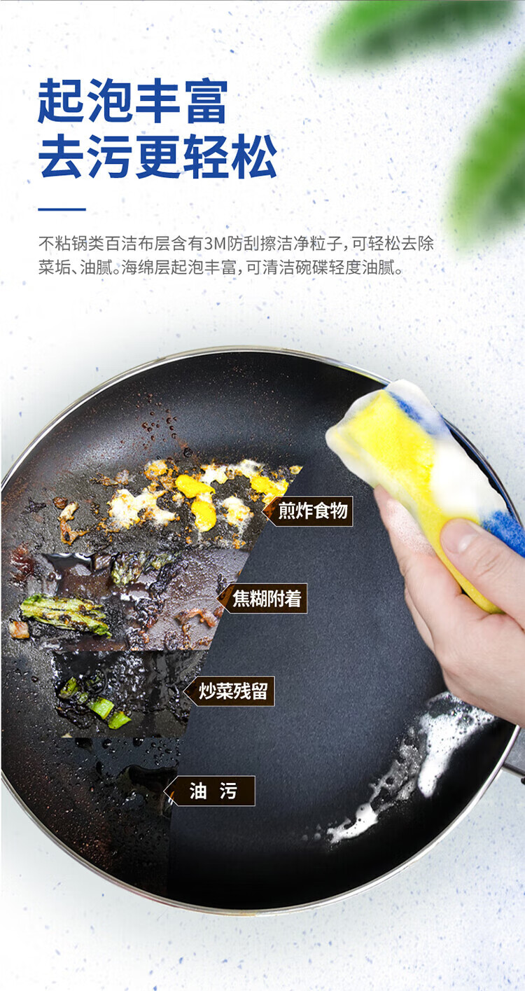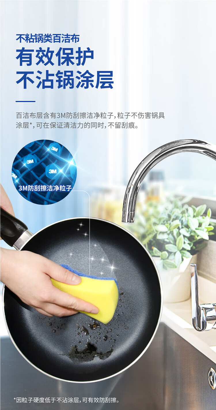 3M Scotch sponge scouring pad, special dishwashing sponge for non-stick pans, cleans pans without leaving scratches, 6 pieces