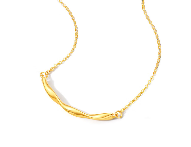 Saturday blessing yellow 18K gold necklace simple geometric smile color gold necklace birthday gift C0613427 40+5cm