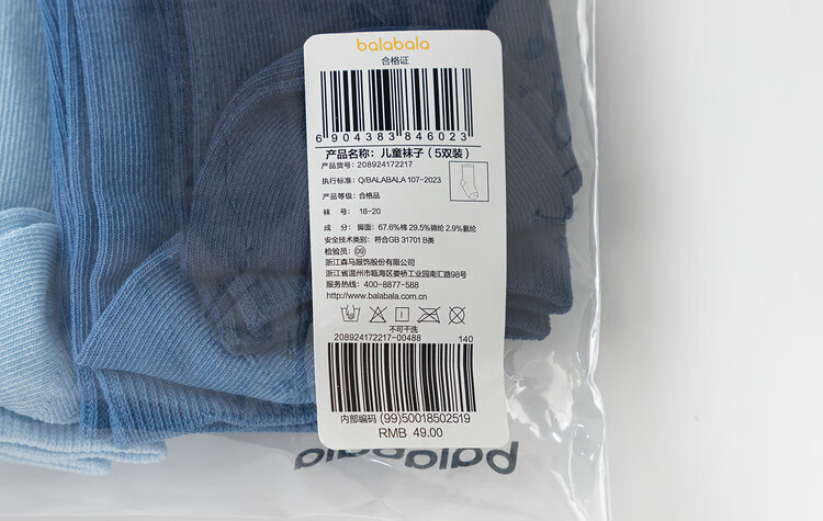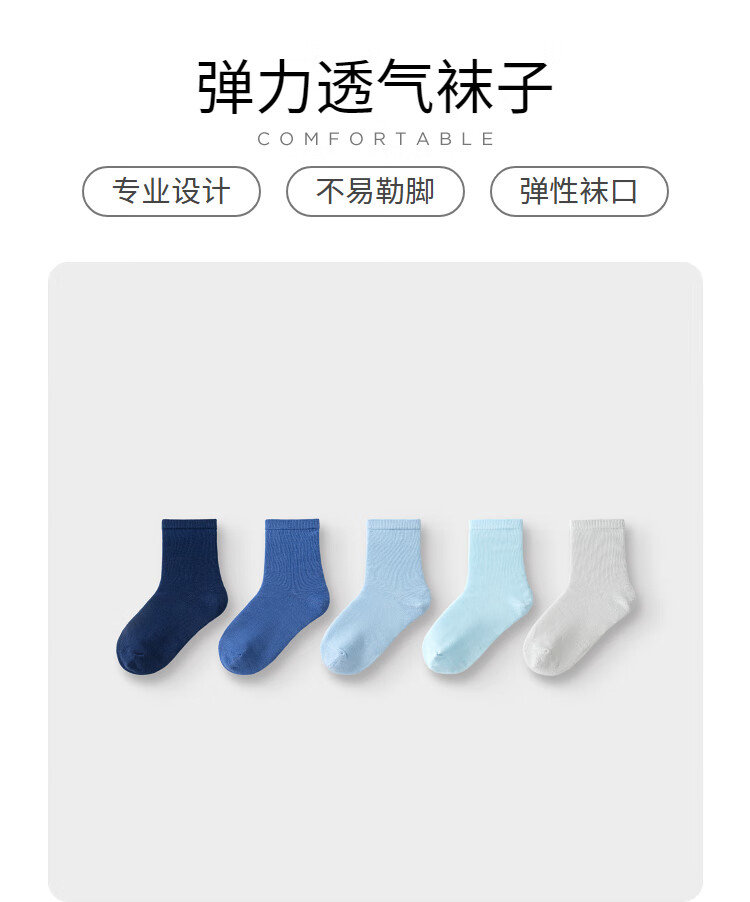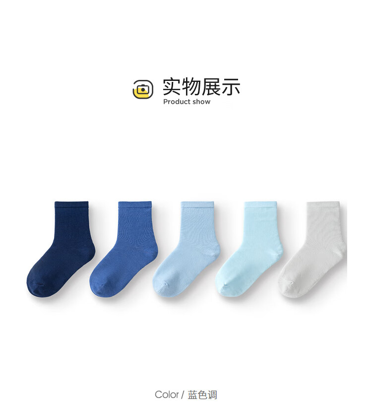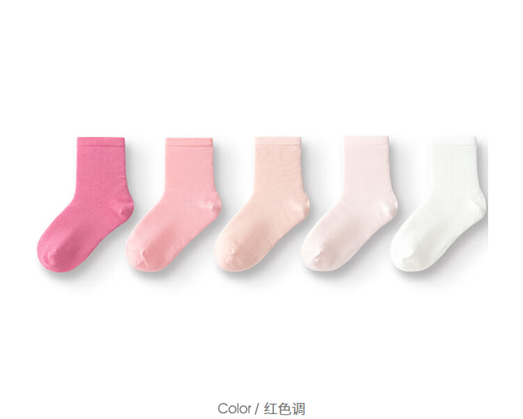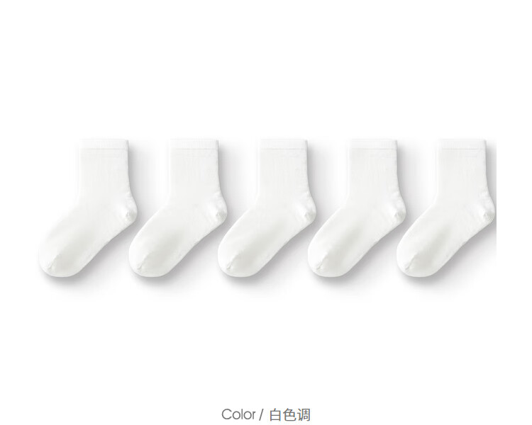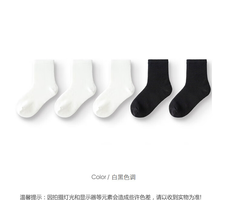Balabala children's socks spring and autumn boys and girls cotton socks mid-tube socks solid color medium and large children five pairs 208924172217