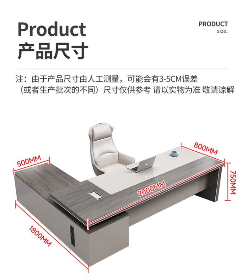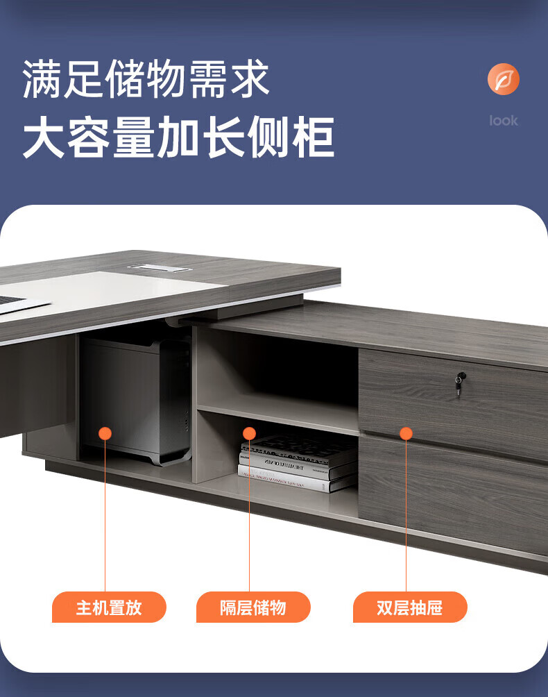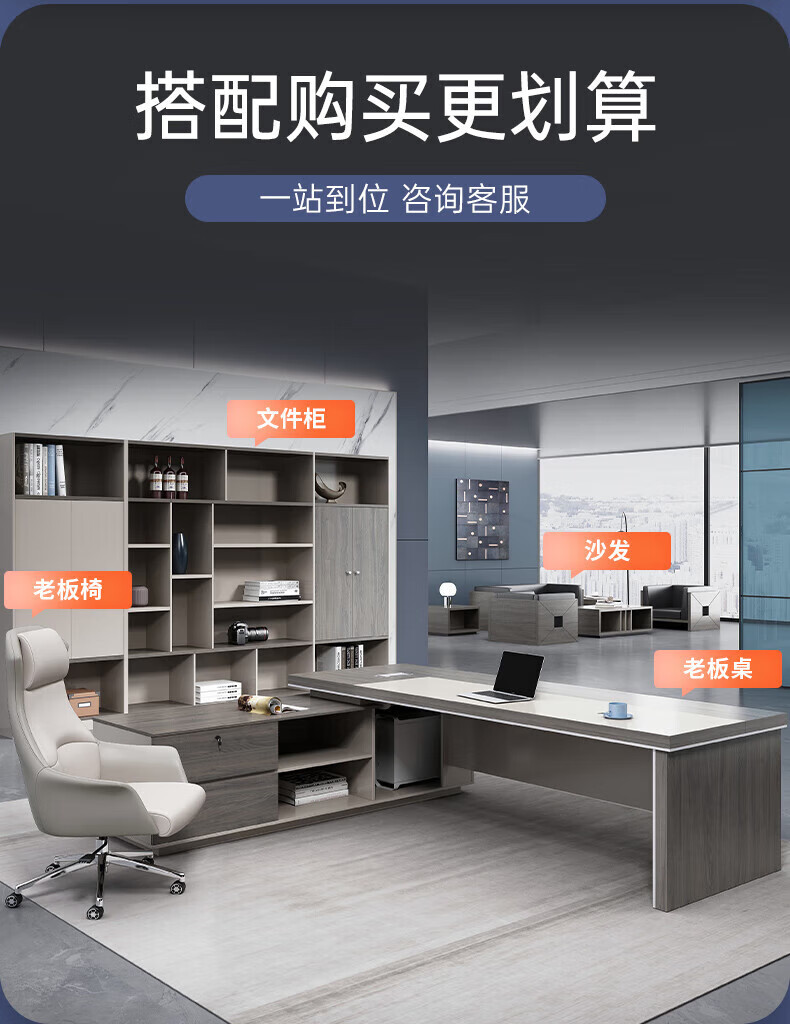 ZHONGWEI desk fashionable and simple boss desk president desk office furniture executive desk light luxury manager desk 2 meters including cabinet