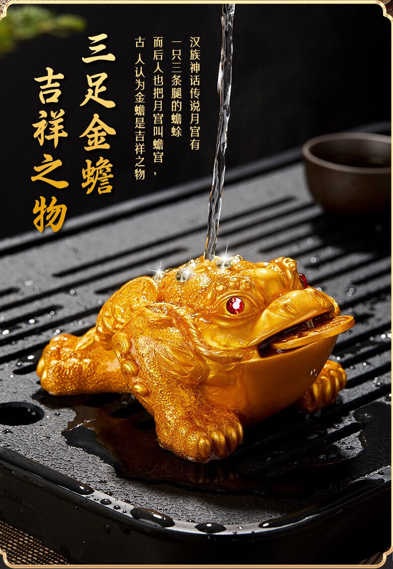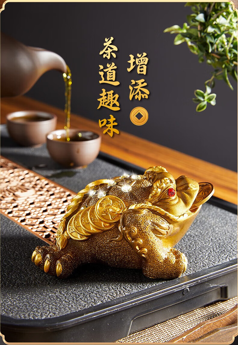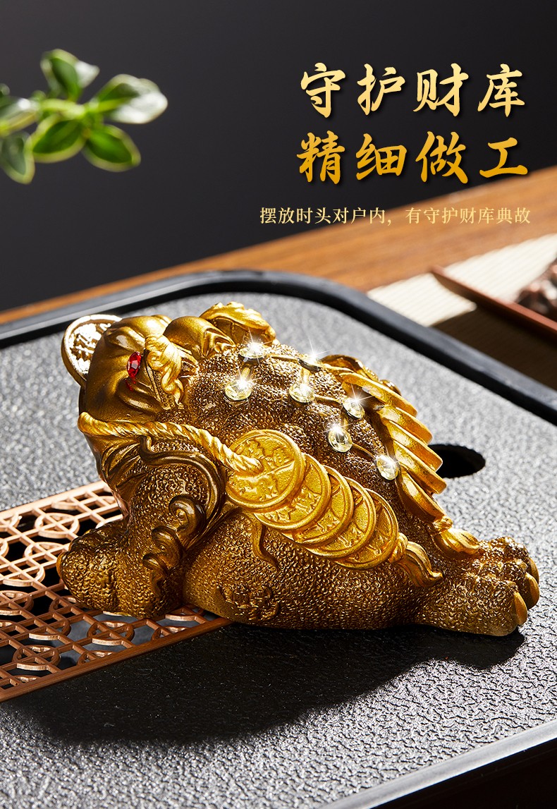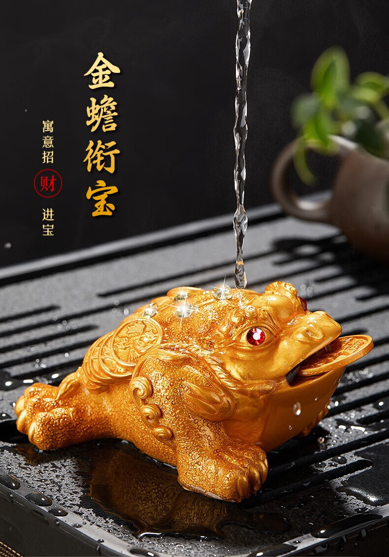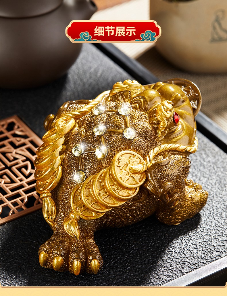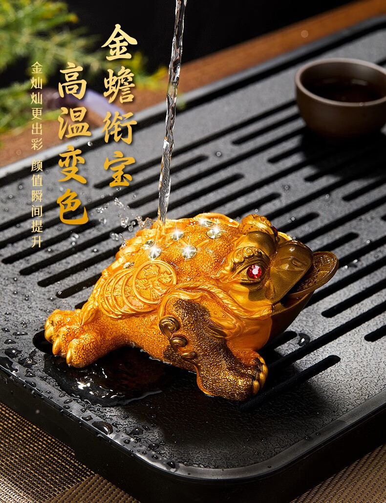 Eight Thousand Lines Golden Toad tea pet ornaments high-end color-changing can nourish and attract wealth tea accessories tea table Feng Shui boutique toad