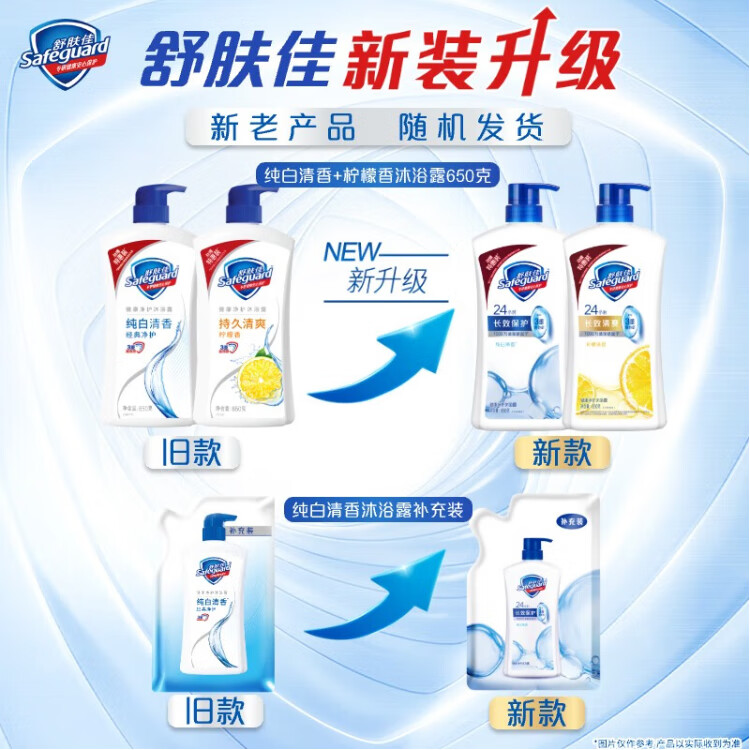 Safeguard Healthy Purifying Shower Gel Pure White Fragrance 650g + Lemon Scent 650g Shower Lotion New and Old Packaging Random