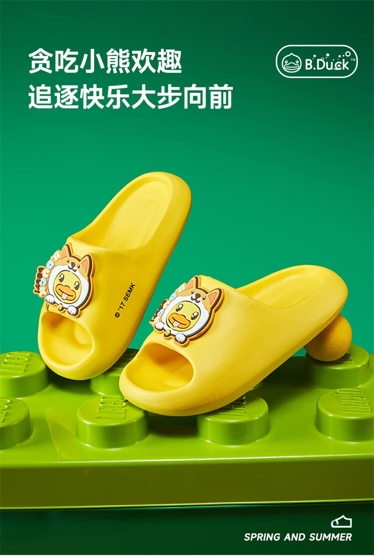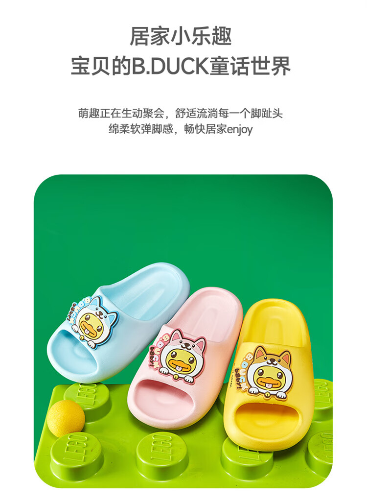 B.Duck little yellow duck children's shoes children's slippers for boys and girls soft bottom four seasons indoor cartoon home slippers 5901 blue 28