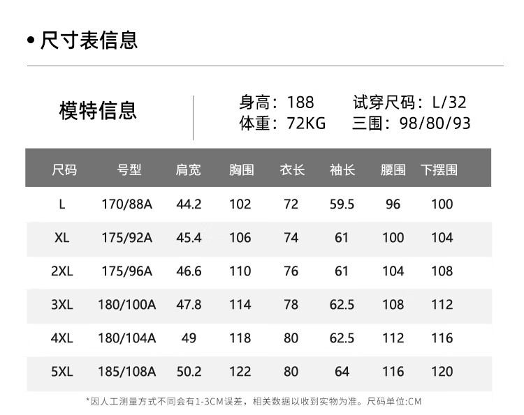 China (cm) 165 / 88-90 170 / 96-98 175 / 108-110 180 / 118-122 185 / 126-130