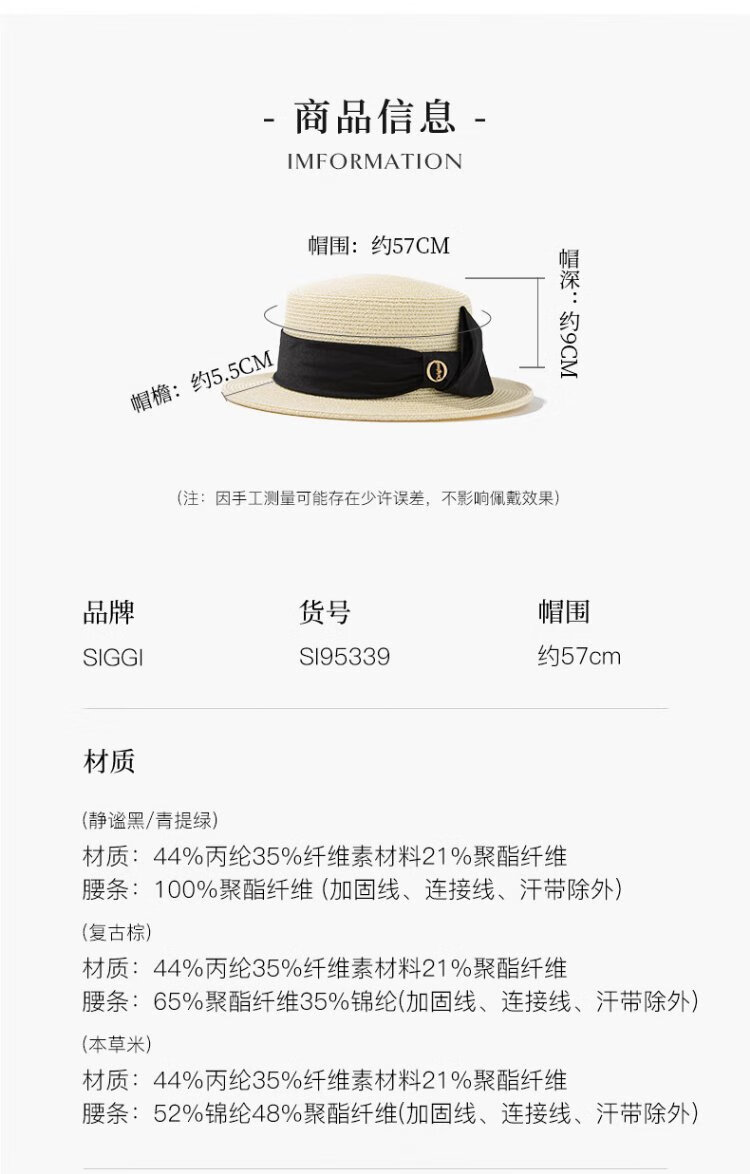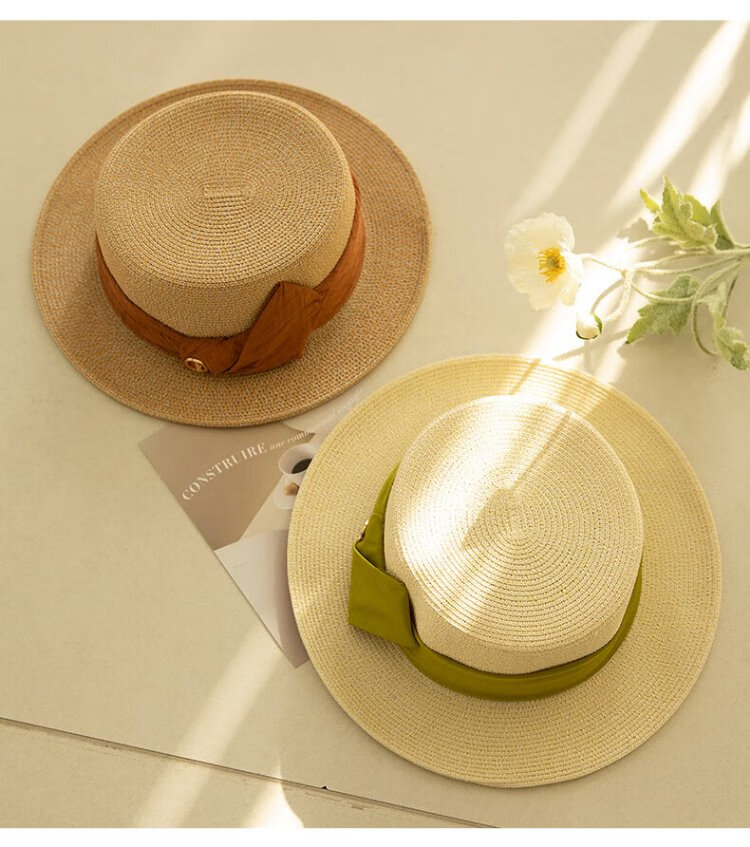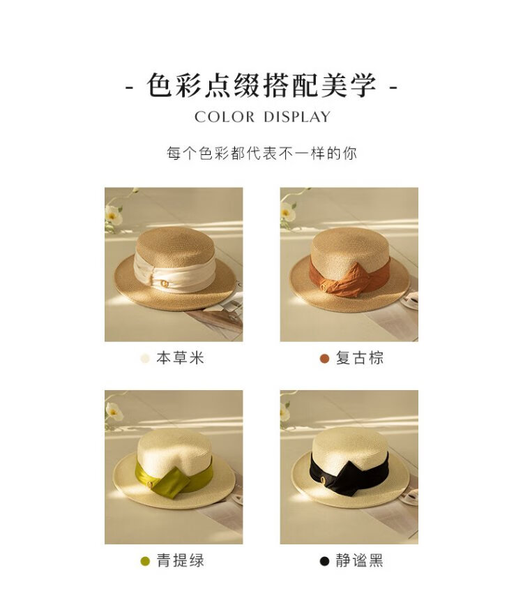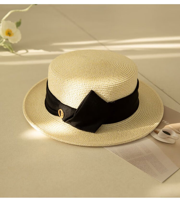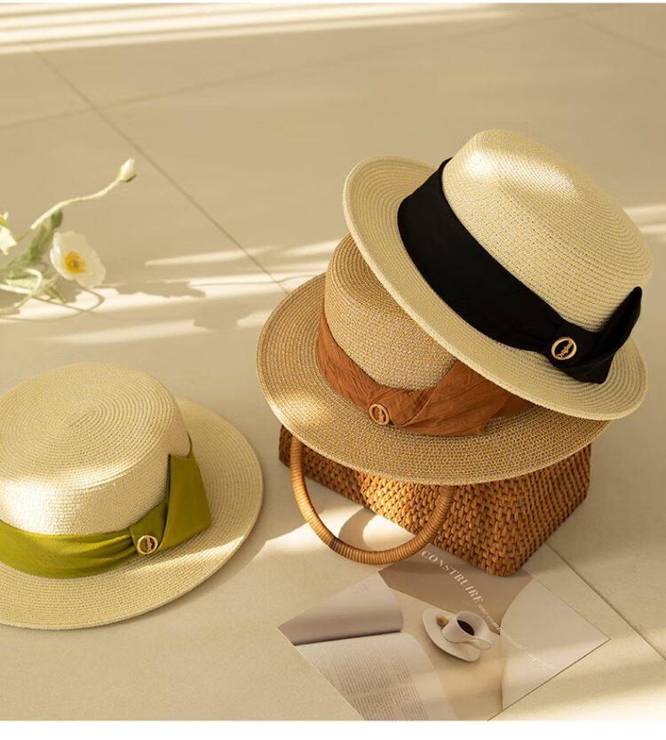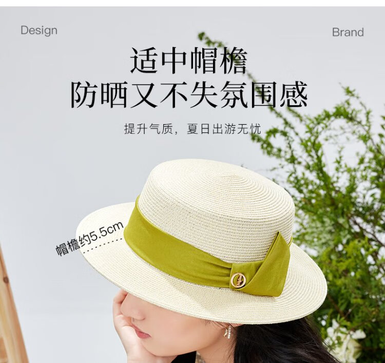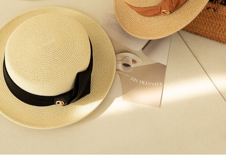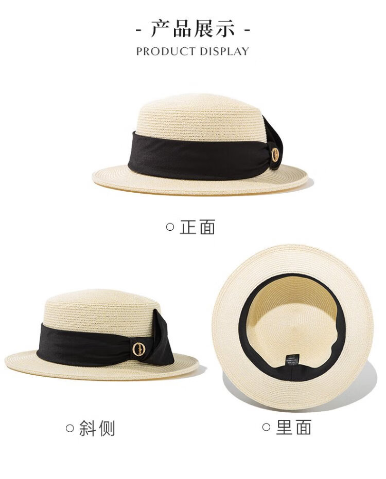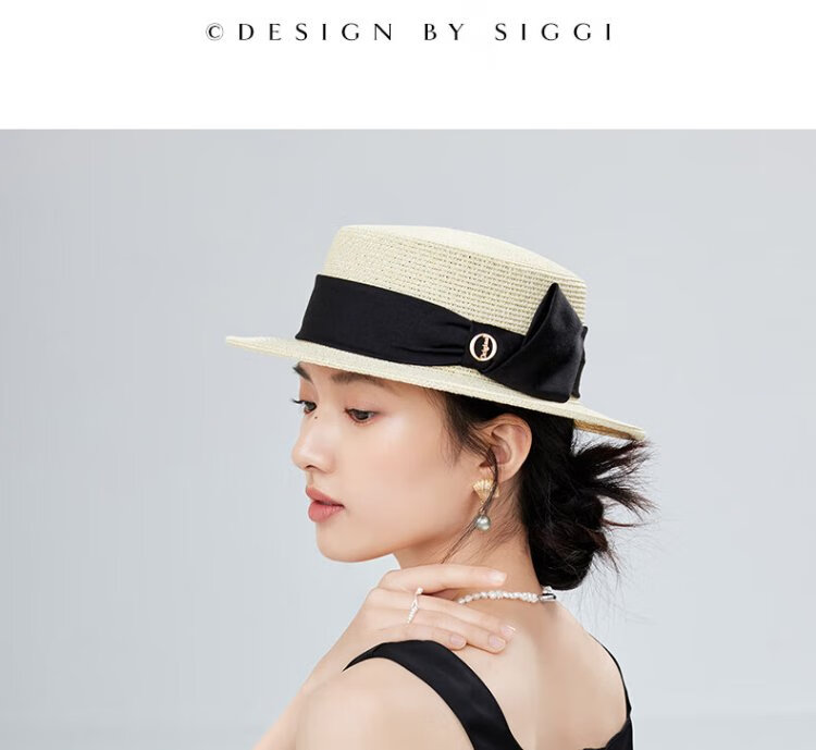 Siggi straw hat women's summer flat top sun hat flat edge holiday seaside fashion retro straw sun hat SI95339m
