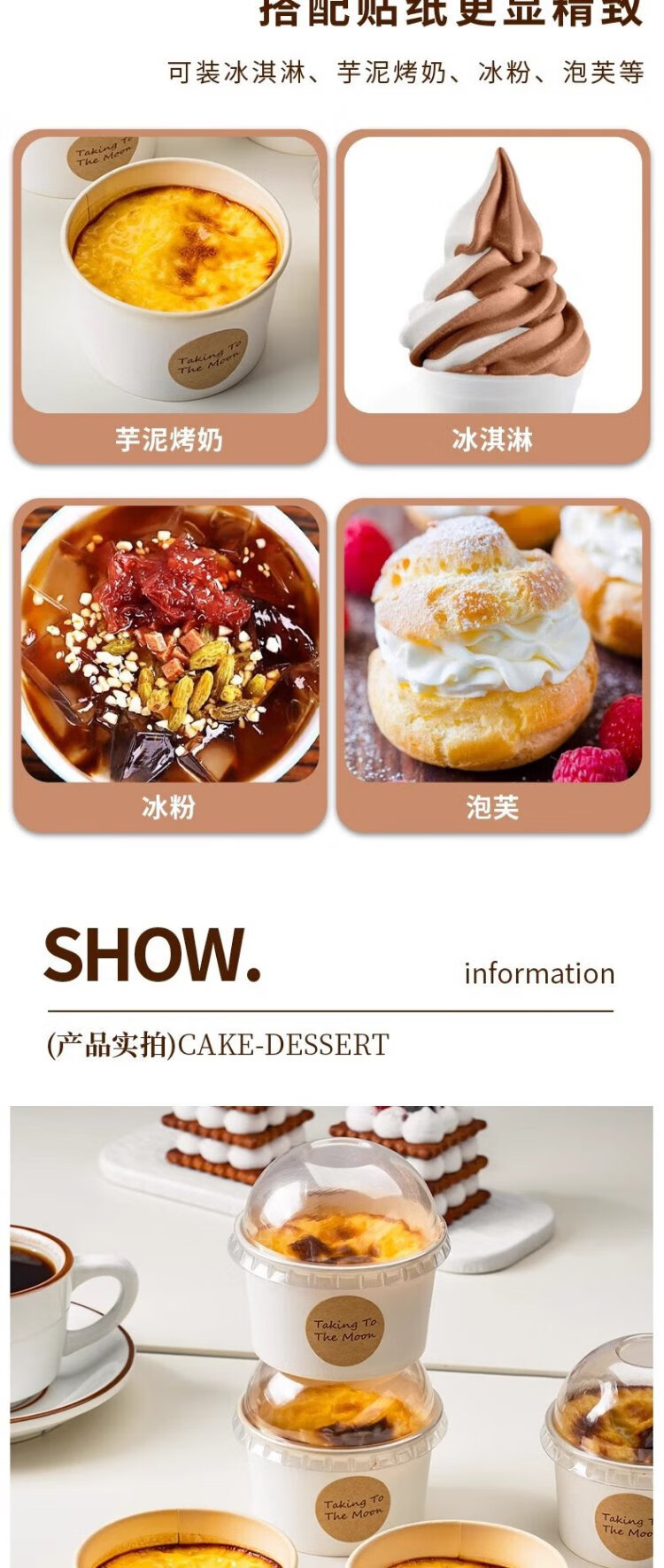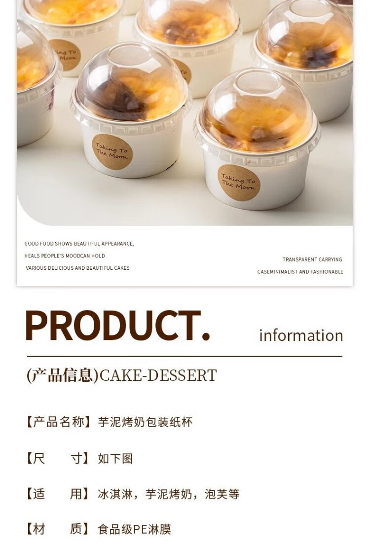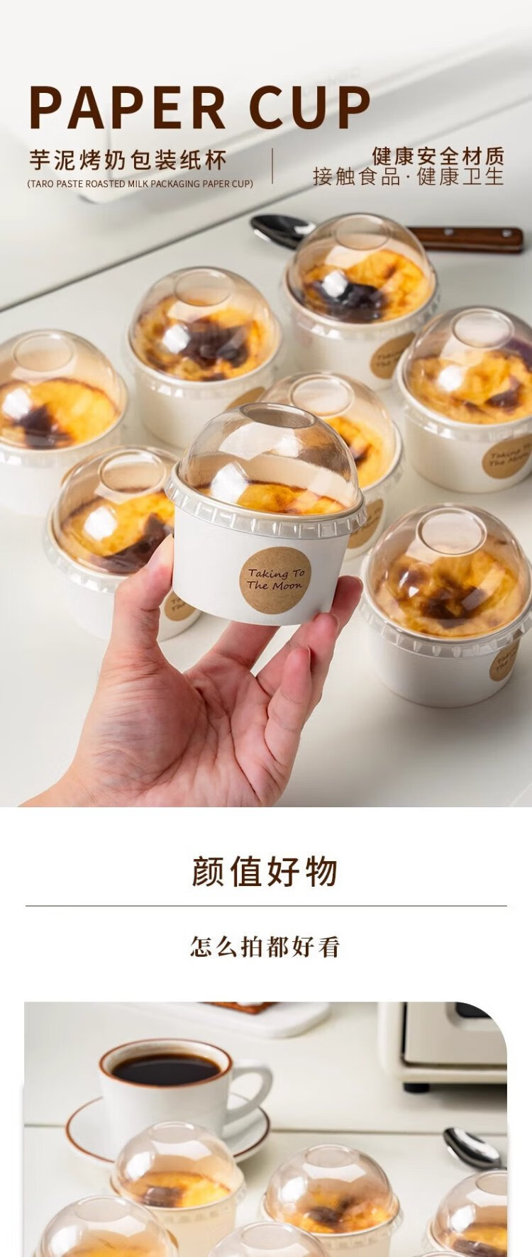 Jackino Baked Dessert Cake Cups, Taro Paste Roasted Milk Cupcakes Packaging Box Packing Paper Bowls 50 pcs