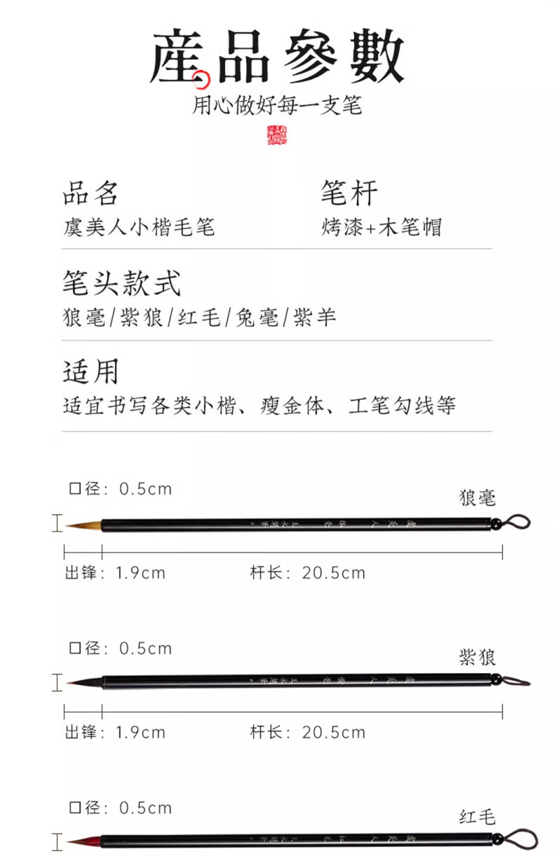 Yushui Lake small regular script brush calligraphy pen wolf cents poppy beauty small seal script copybook for beginners to write small characters beginners trumpet Chinese painting copy scripture copy regular script thin tip red hairpin flower thin head purple hair tracing red