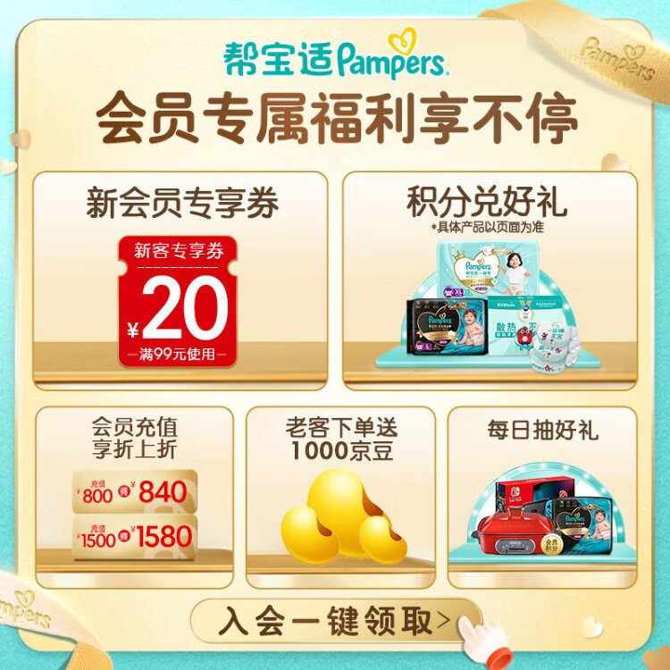Pampers ultra-thin breathable fresh breathable Pro baby pull-up pants diaper XL62