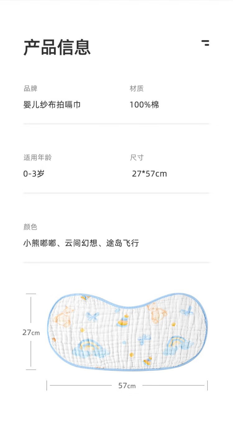 October crystal baby burp towel gauze towel spit towel baby feeding towel baby flat pillow burp pad sling 2 pieces Little Bear