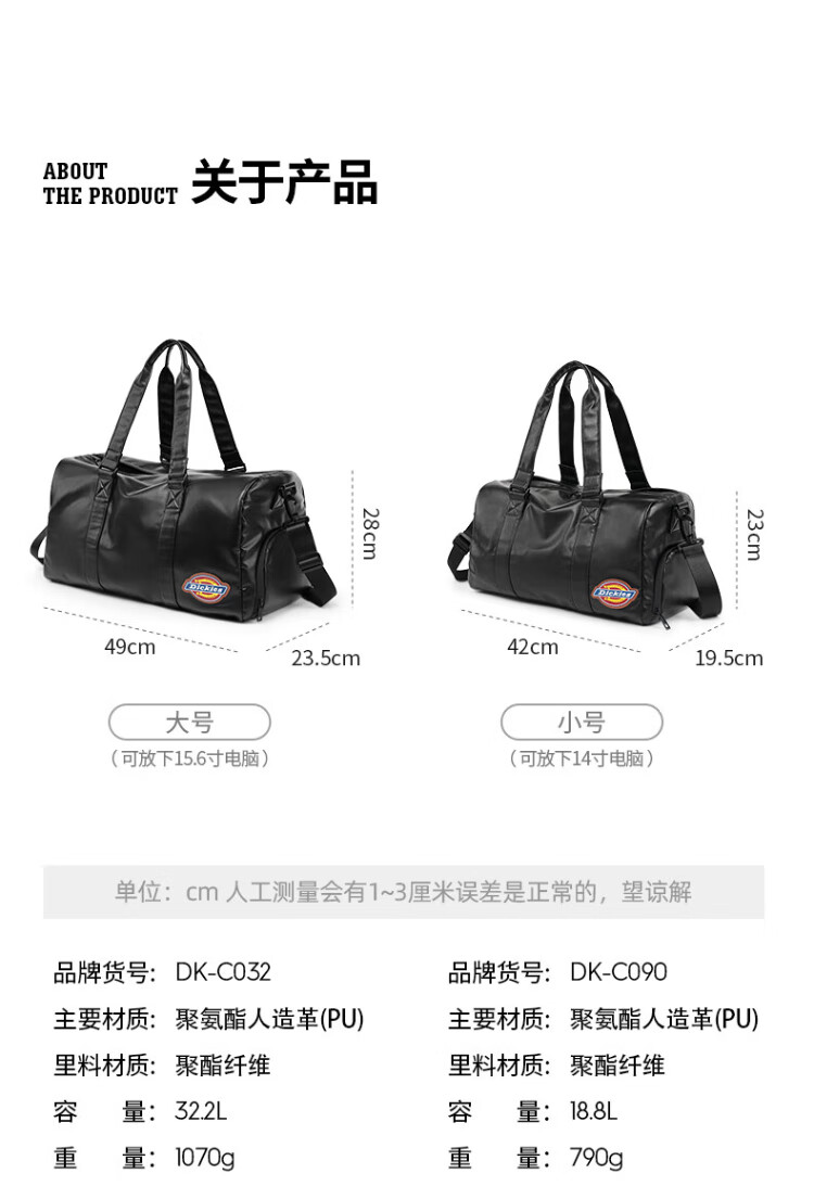 Dickies fitness bag men's large-capacity travel bag dry and wet separate shoulder crossbody swimming backpack sports bag portable luggage bag