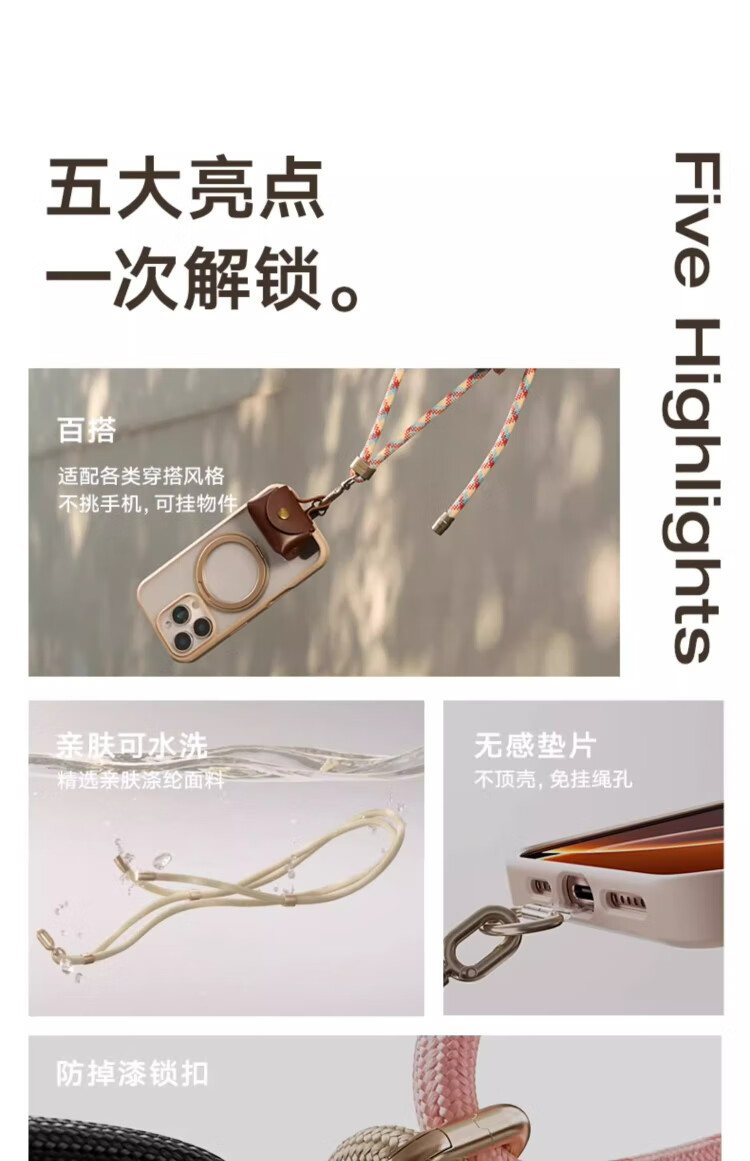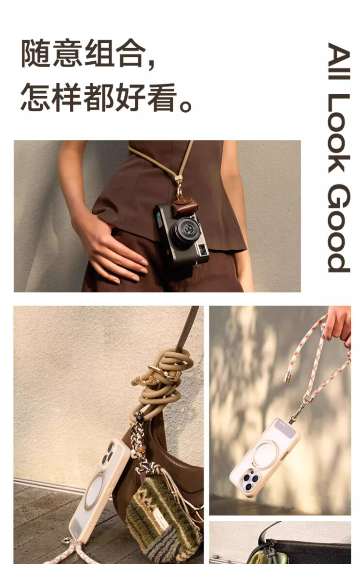 Tulas 25-year upgraded model, mobile phone diagonal lanyard can be carried on the back, high-end woven long anti-theft, anti-lost and anti-fall outdoor model, adjustable and suitable for 17promax mobile phone case, apricot brown