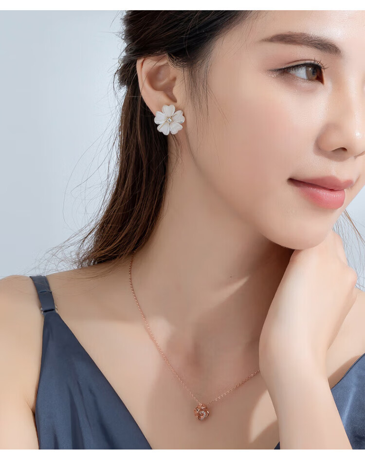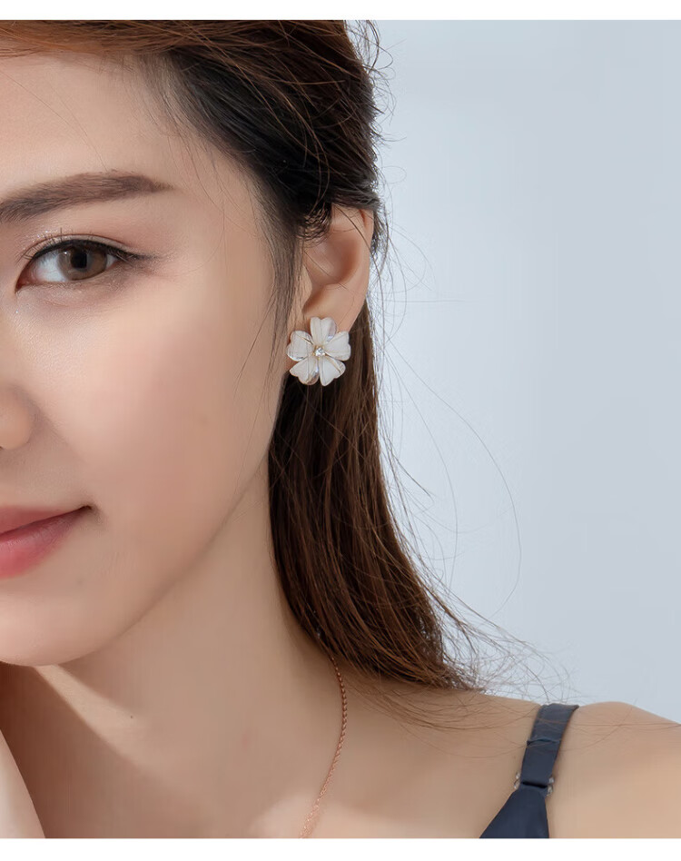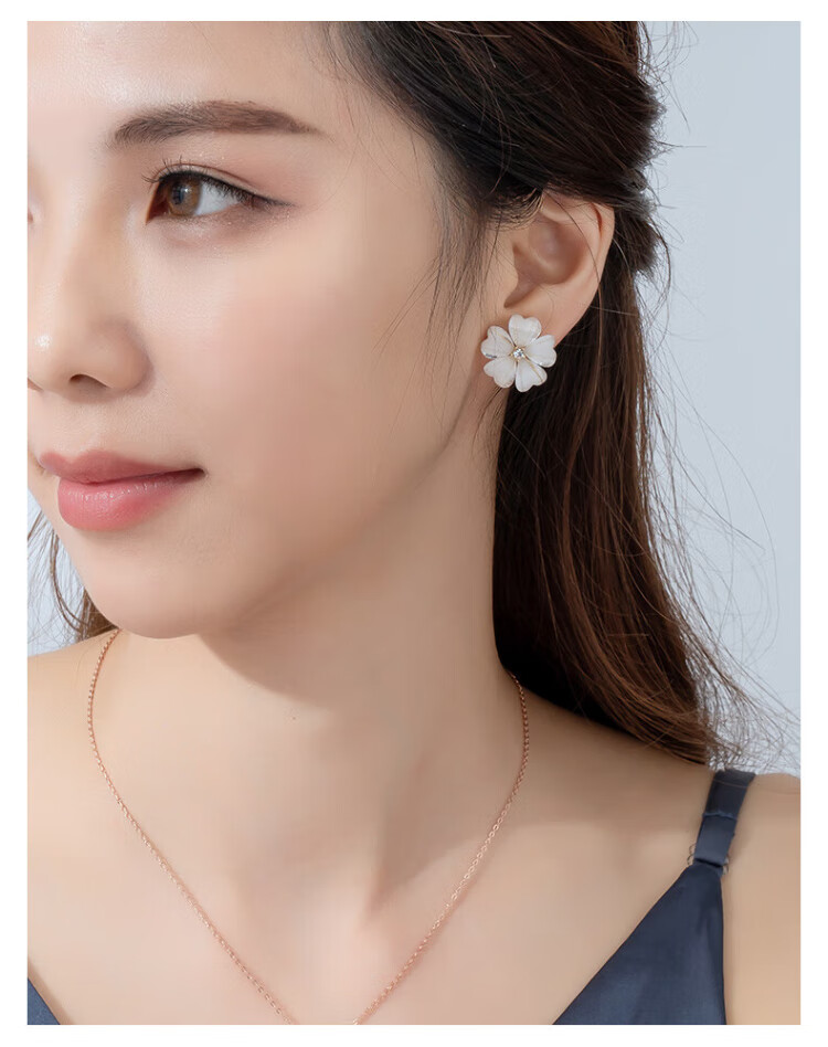 Qlady sweet flower earrings, feminine and high-end silver needle earrings 2024 young luxury niche earrings birthday gift