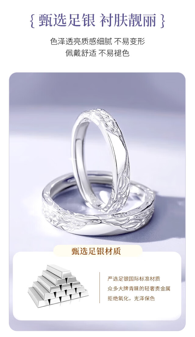 The only (Winy) 999 sterling silver couple ring pair, a pair of practical engagement rings, men's and women's birthday gift jewelry