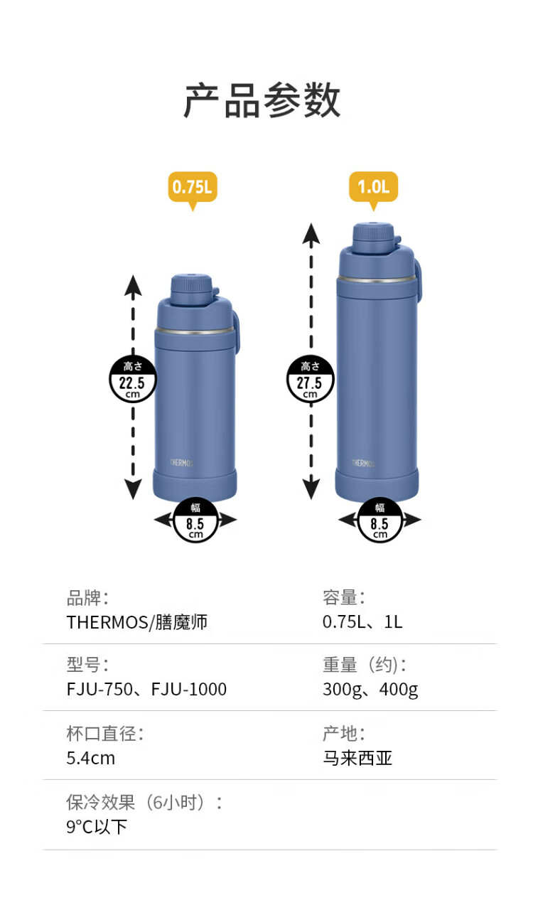 THERMOS bicycle kettle large capacity stainless steel outdoor portable direct drink 750ml sports water cup high temperature resistant FJU