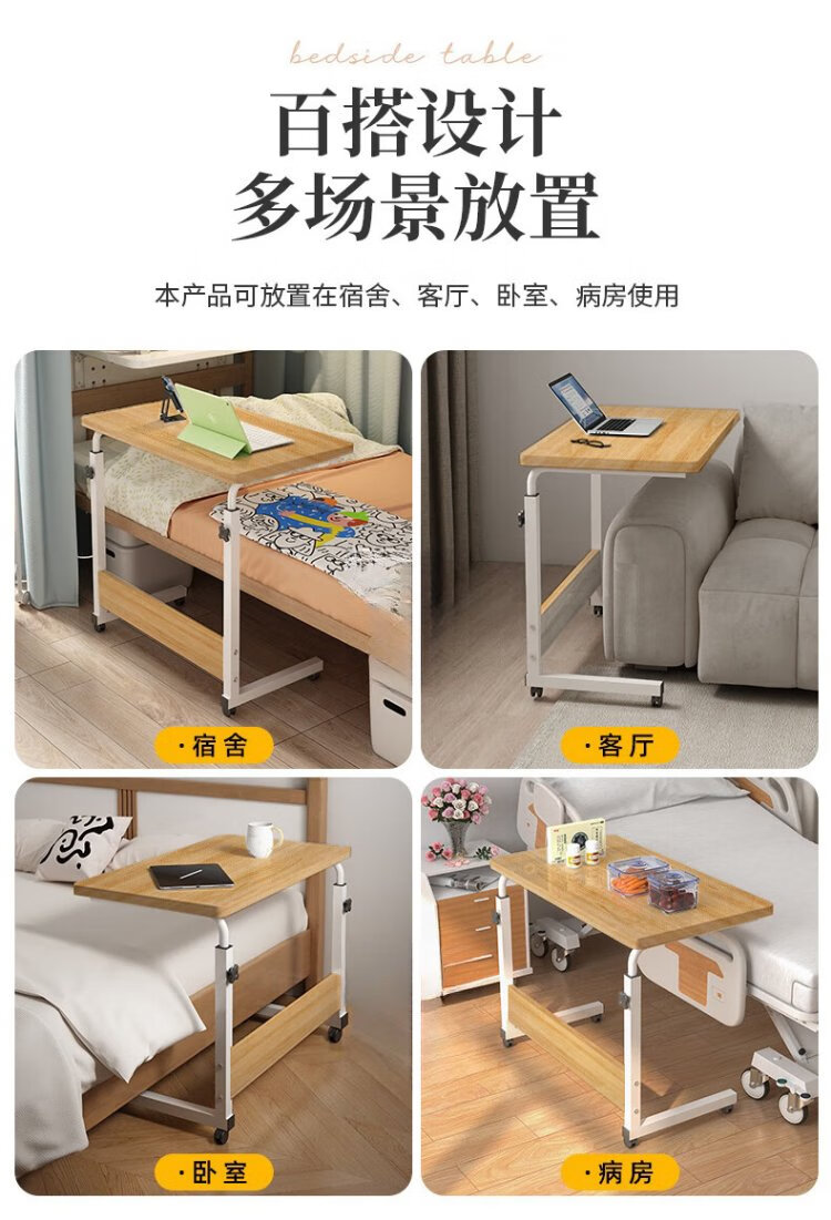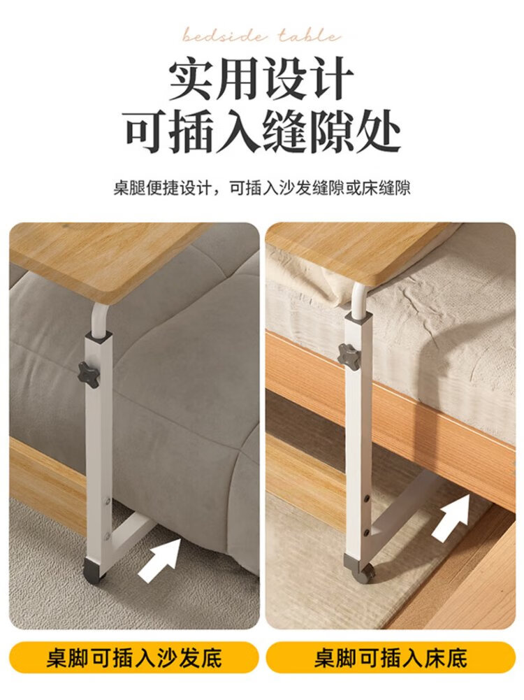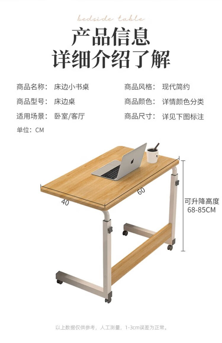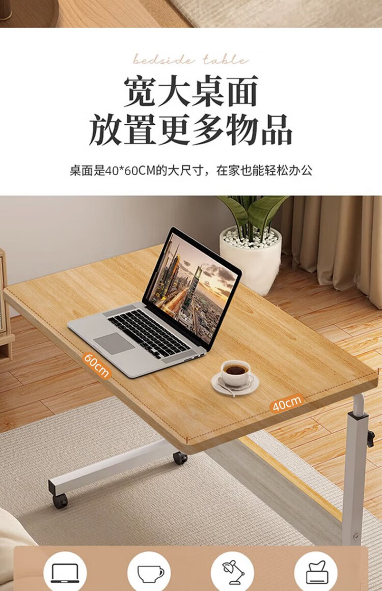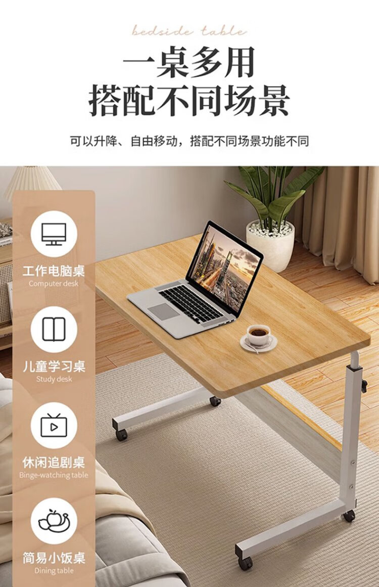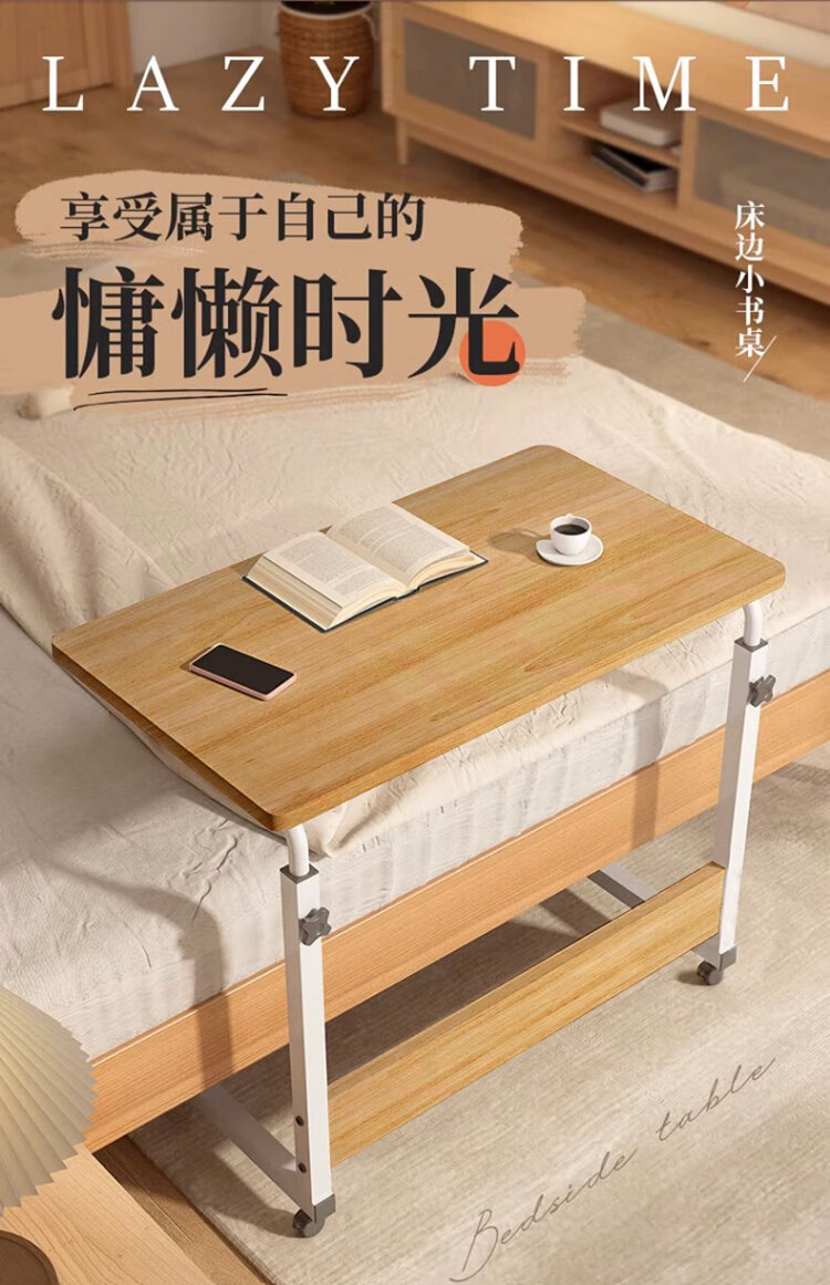 Xiaomo bedside movable computer table with wheels, liftable study table for lazy people, small office desk on bed for bedroom