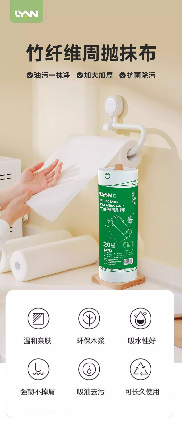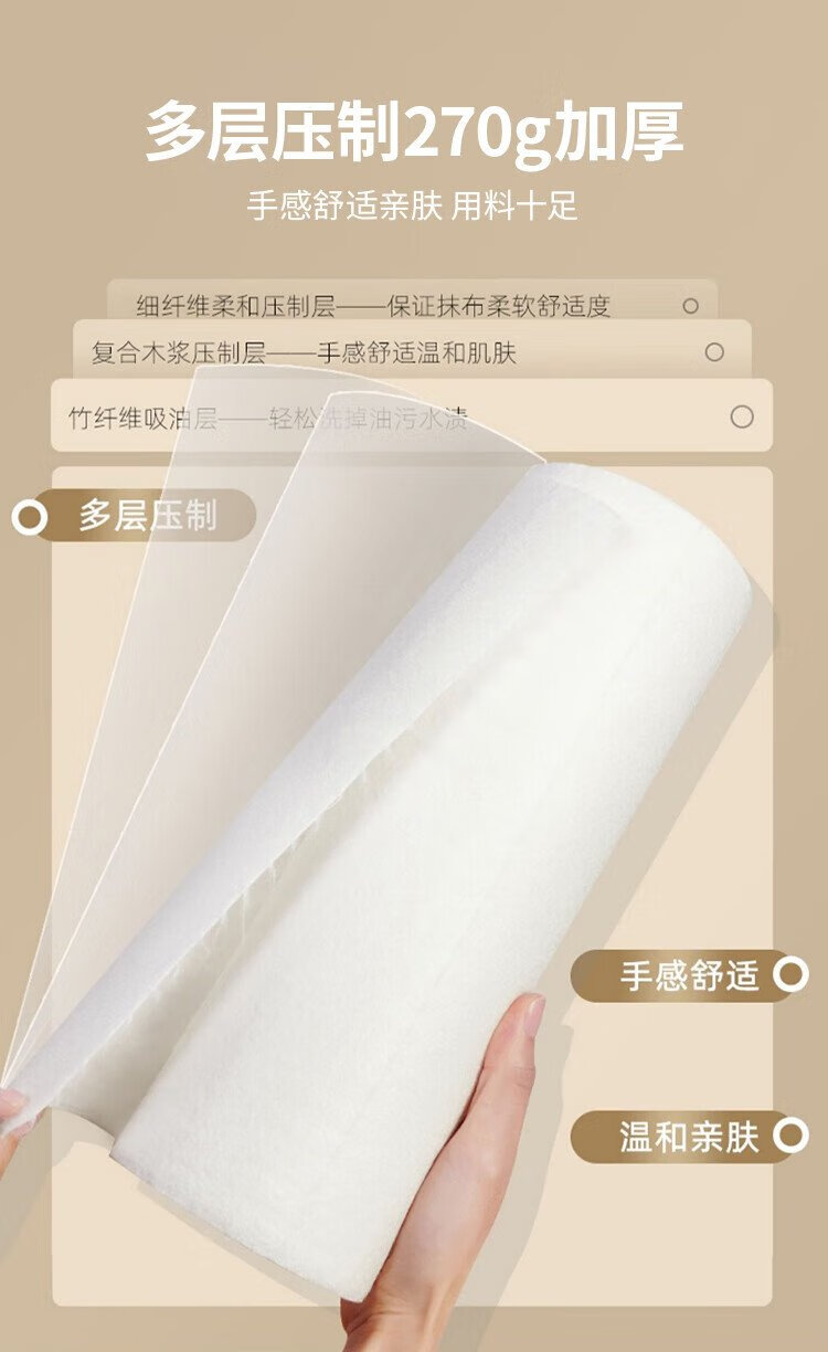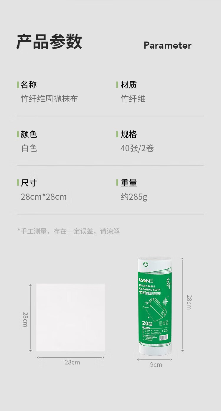 Bamboo fiber weekly disposable rags 40 sheets 2 rolls water-absorbing and oil-absorbing thickened kitchen dish towels anti-bacterial lazy rags