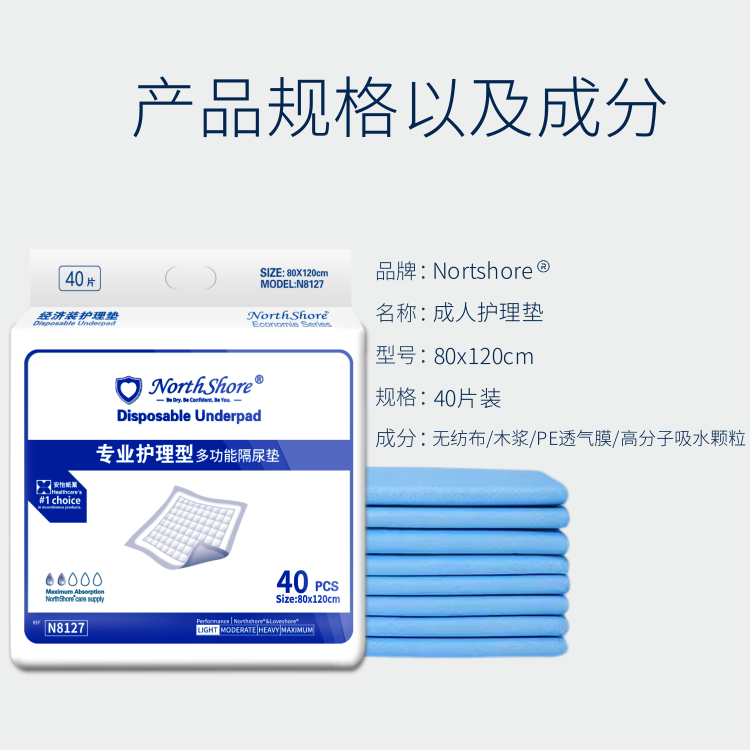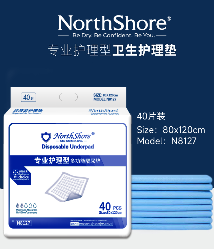 NORTHSHORE adult care pad for the elderly disposable diaper pad baby maternity puerperal pad extra large 40 pieces 80x120cm