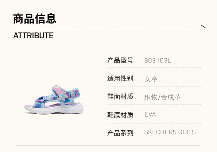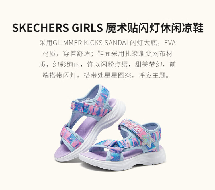 Skechers Skechers children's sandals summer girls flashing casual shoes sweet bright fashion princess shoes 303103L