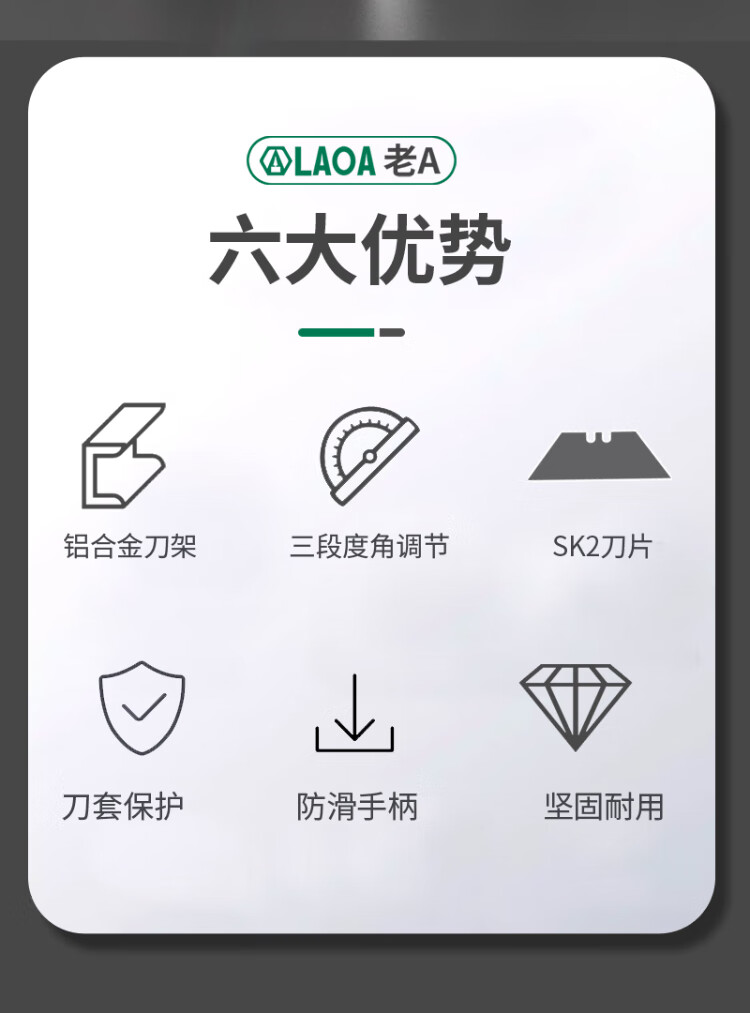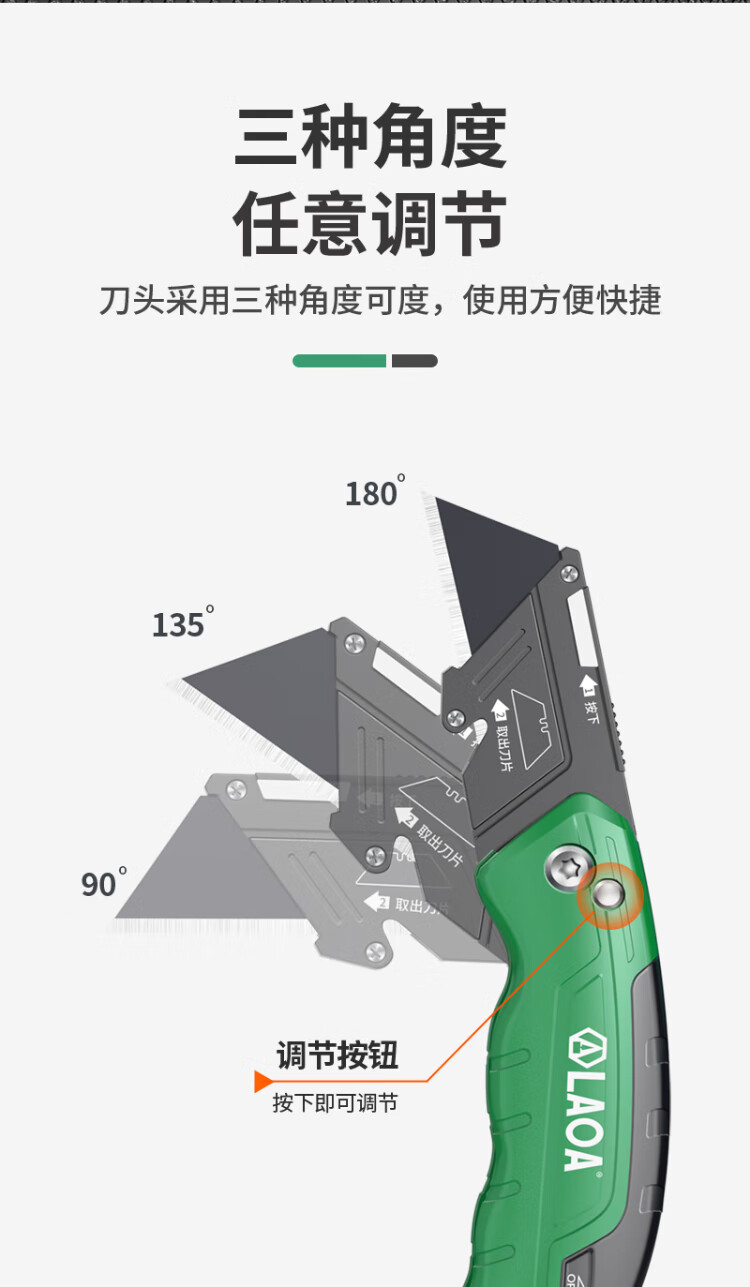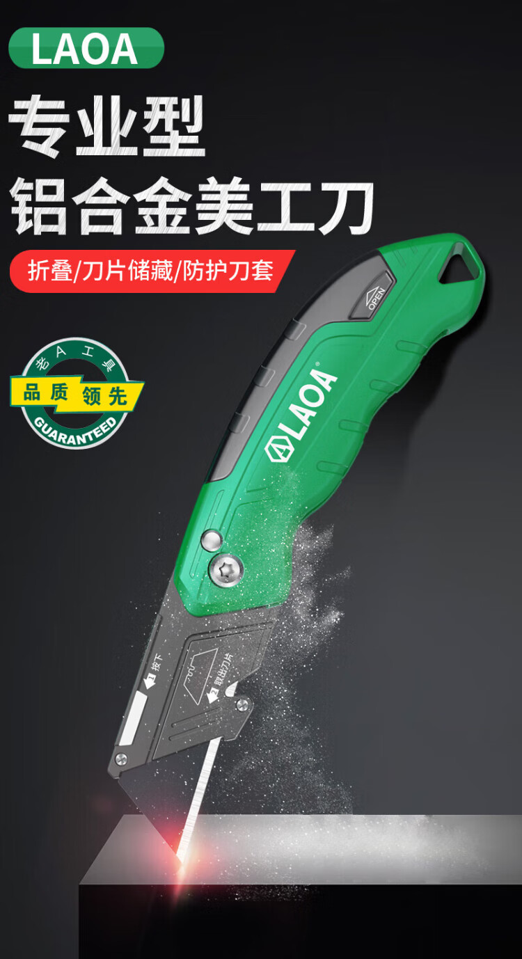 LAOA old A folding cutter utility knife heavy-duty aluminum alloy wallpaper knife trimming knife with 3 blades LA111419