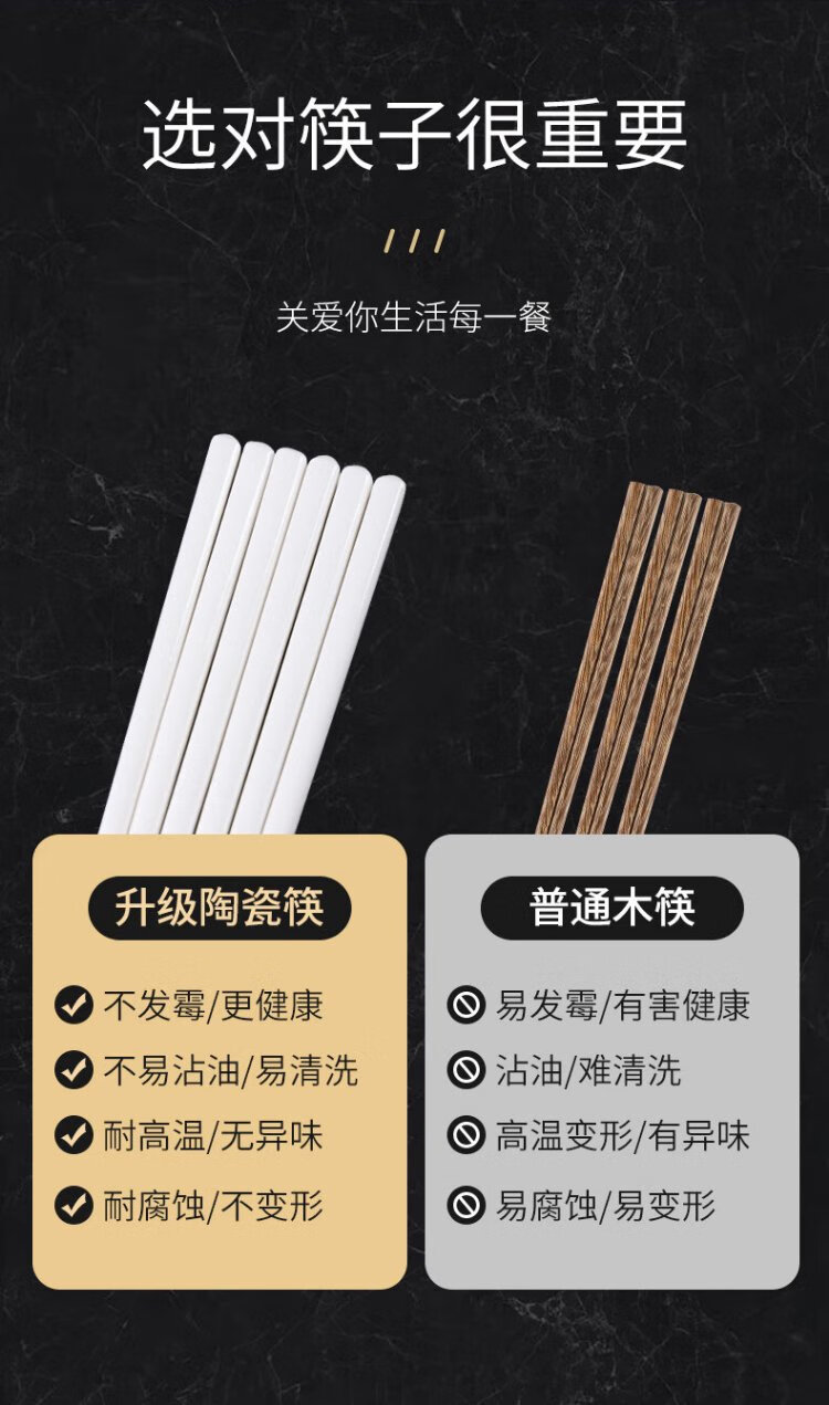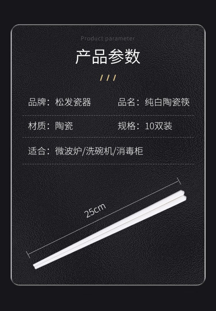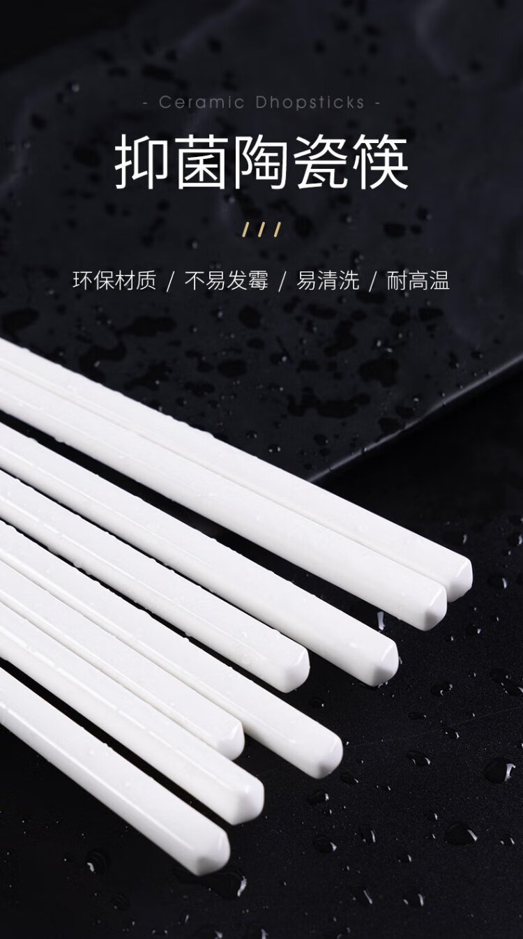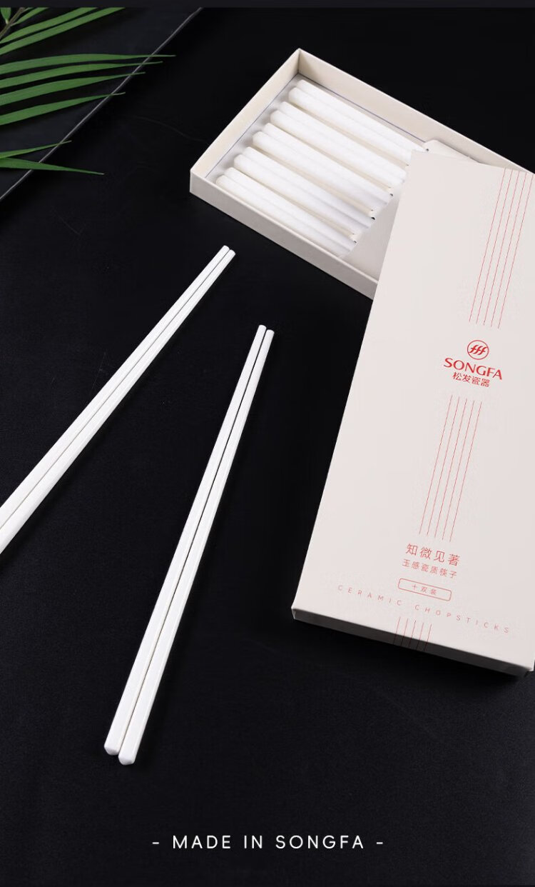 Songfa Porcelain Household Ceramic Chopsticks Pure White Chinese Style Gift Box Mildew Resistant High Temperature Easy to Clean Household Chopsticks 10 Pairs