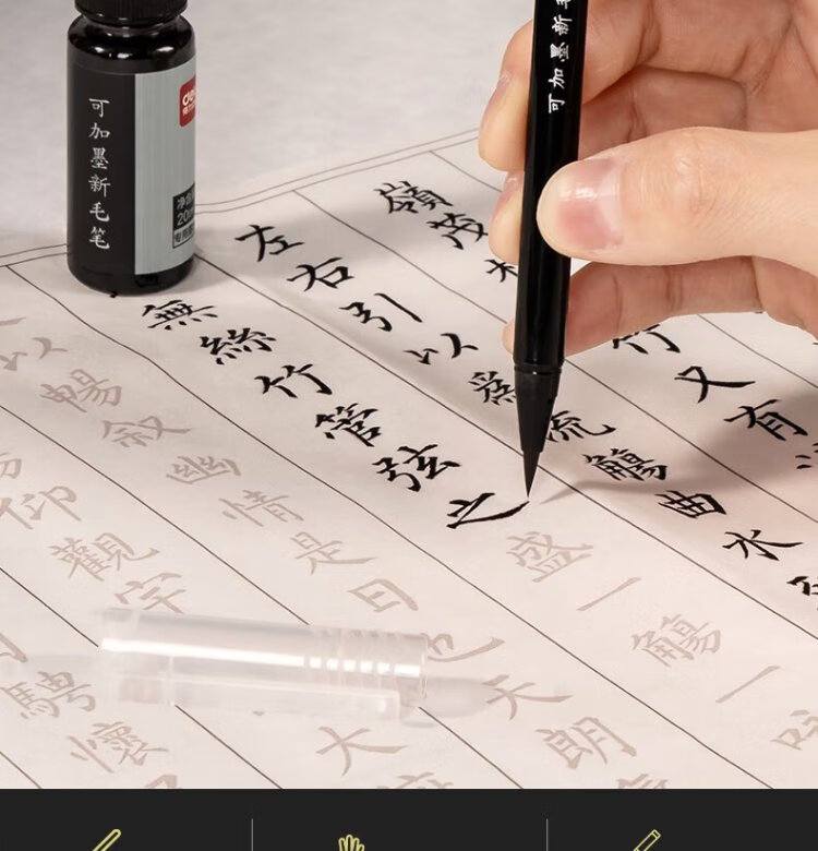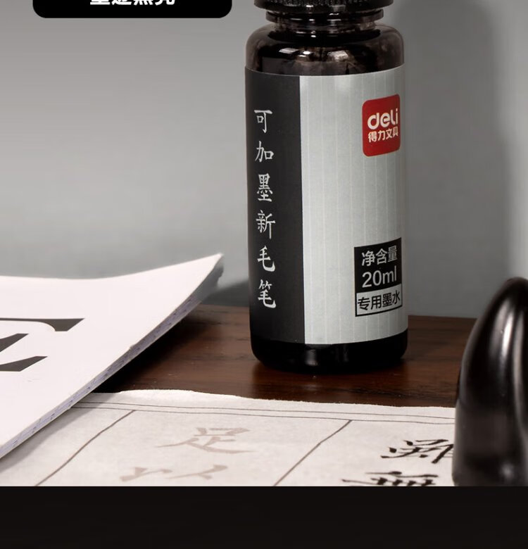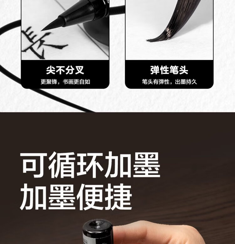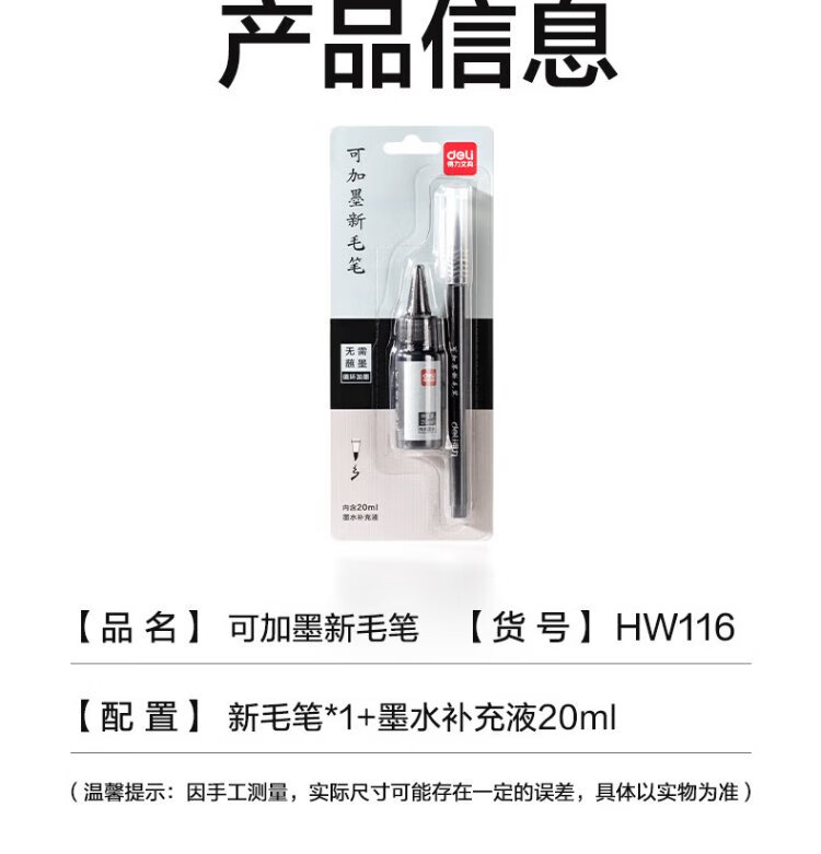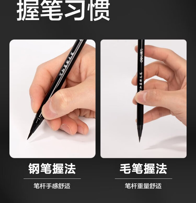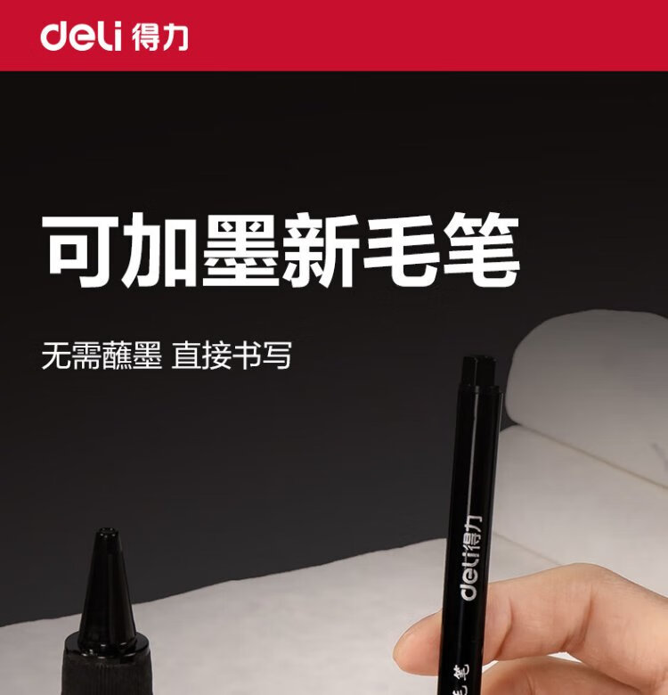 Deli (deli) new style writing brush, new writing brush with refillable ink, calligraphy soft pen, fountain pen style writing brush, beautiful pen, small regular script for beginners, entry-level calligraphy practice (black) (card), popular stationery products for the beginning of school