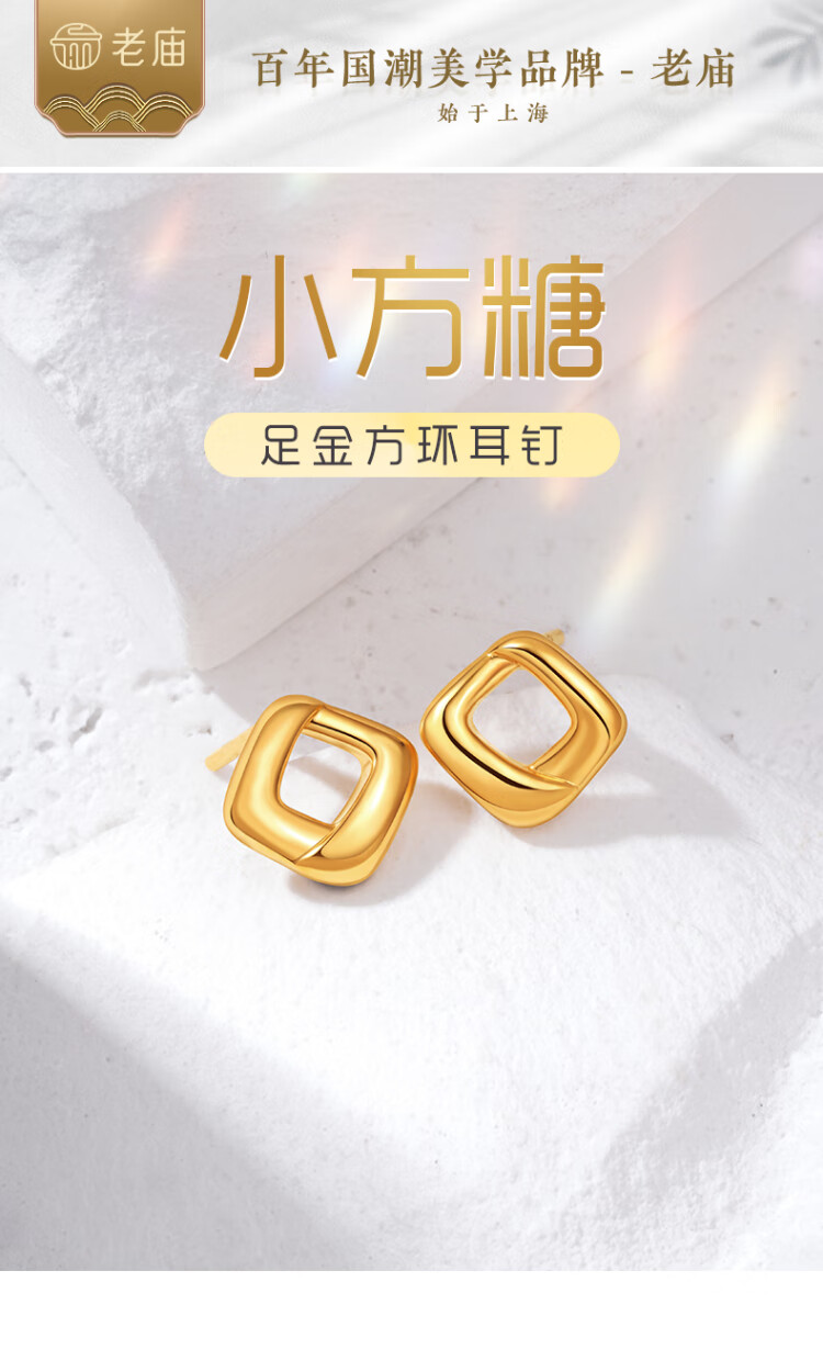 Laomiao Gold Earrings Dolphin Gold 5D Square Small Sugar Cube Earrings for Wife’s Birthday Gift for Girlfriend