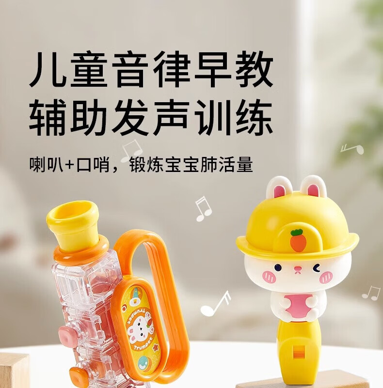 Aibedila children's toy baby baby blowing instrument trumpet harmonica can whistle yellow trumpet + cute rabbit whistle