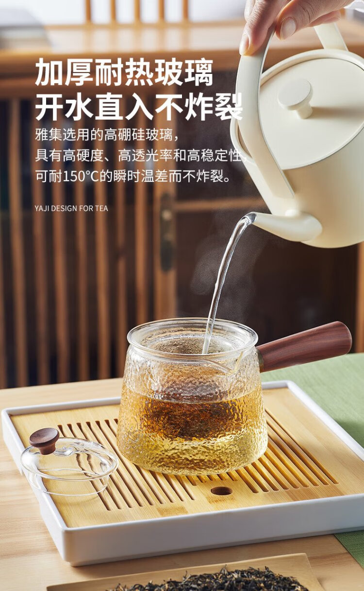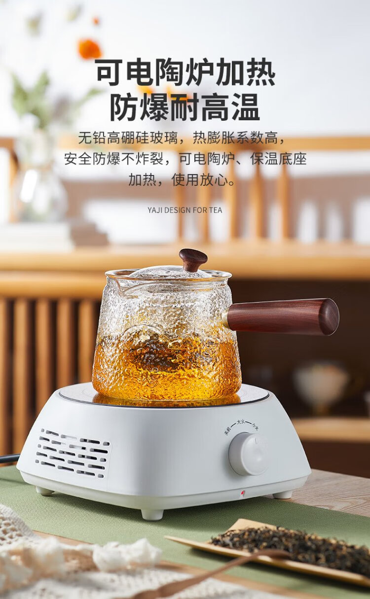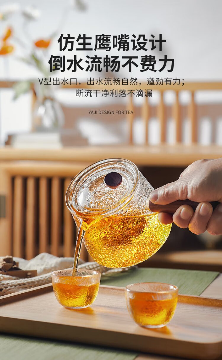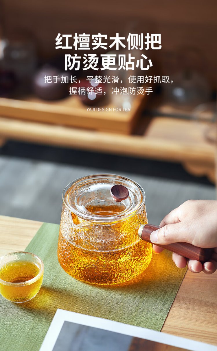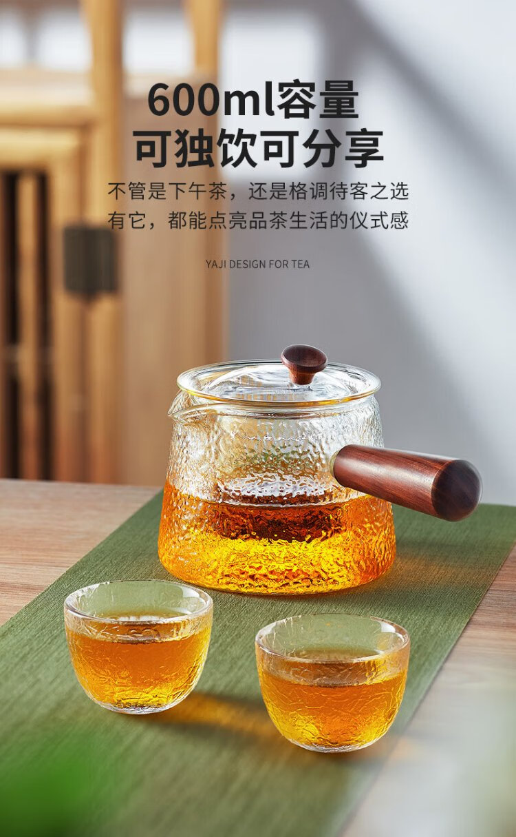 Yaji side handle pot hammer pattern boiling and filtering tea set heat-resistant glass teapot boiling teapot high temperature resistant teapot 600ml