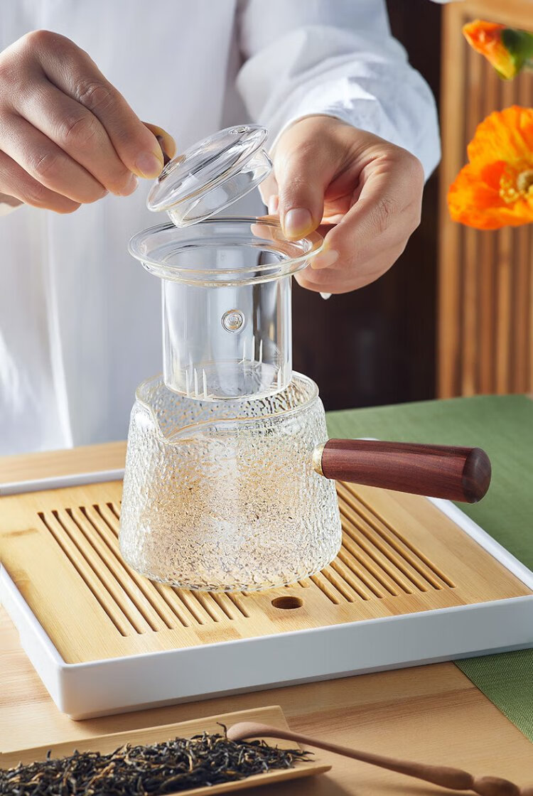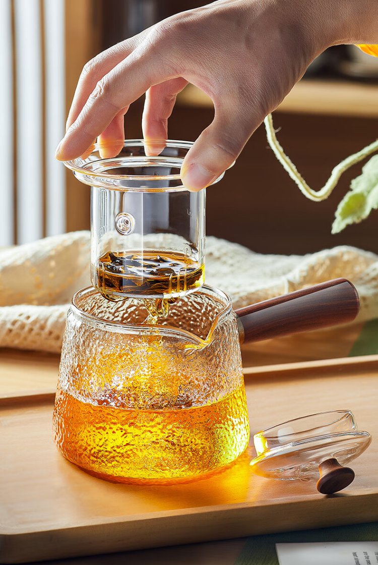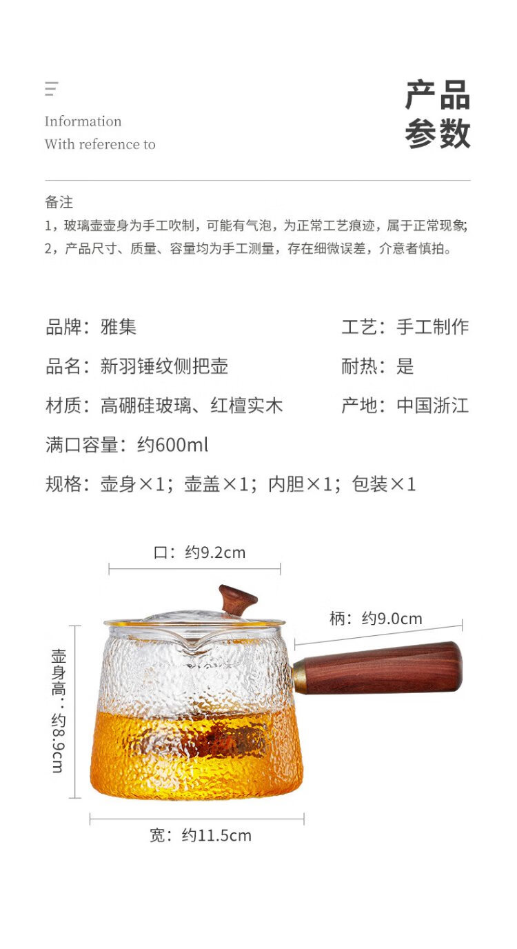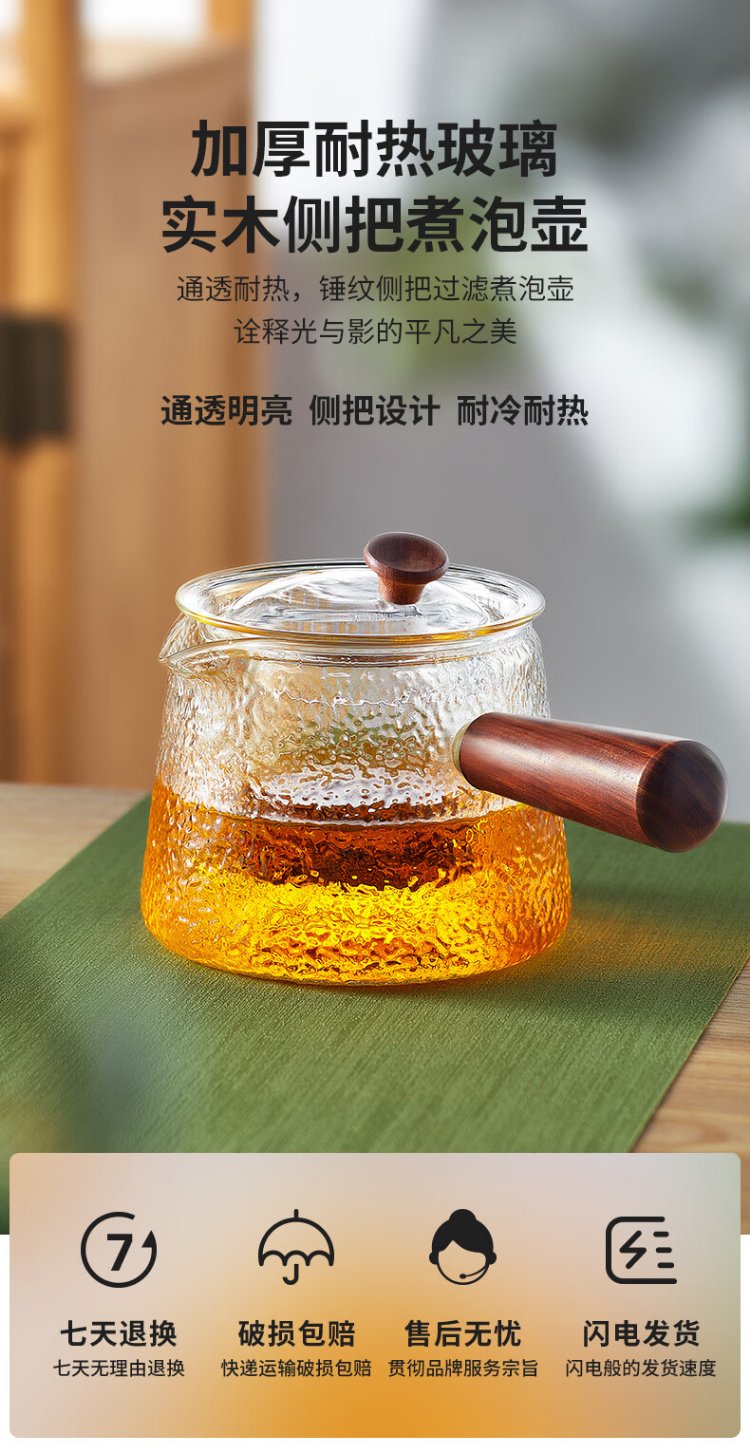 Yaji side handle pot hammer pattern boiling and filtering tea set heat-resistant glass teapot boiling teapot high temperature resistant teapot 600ml