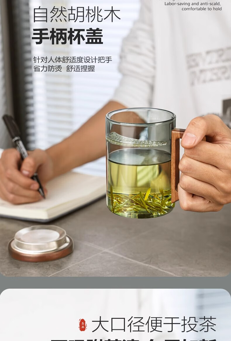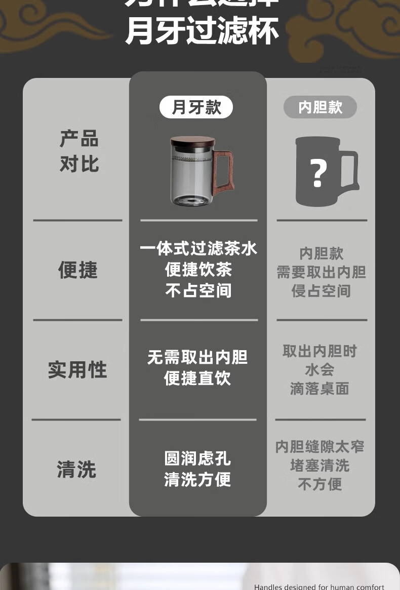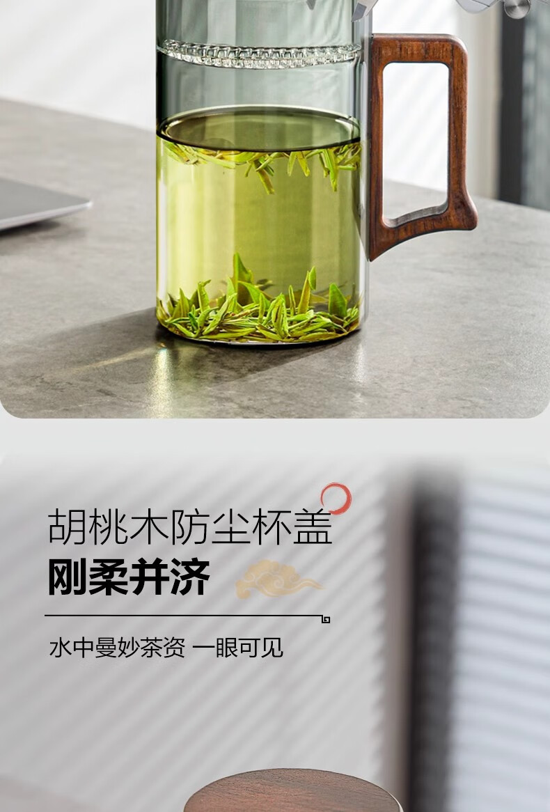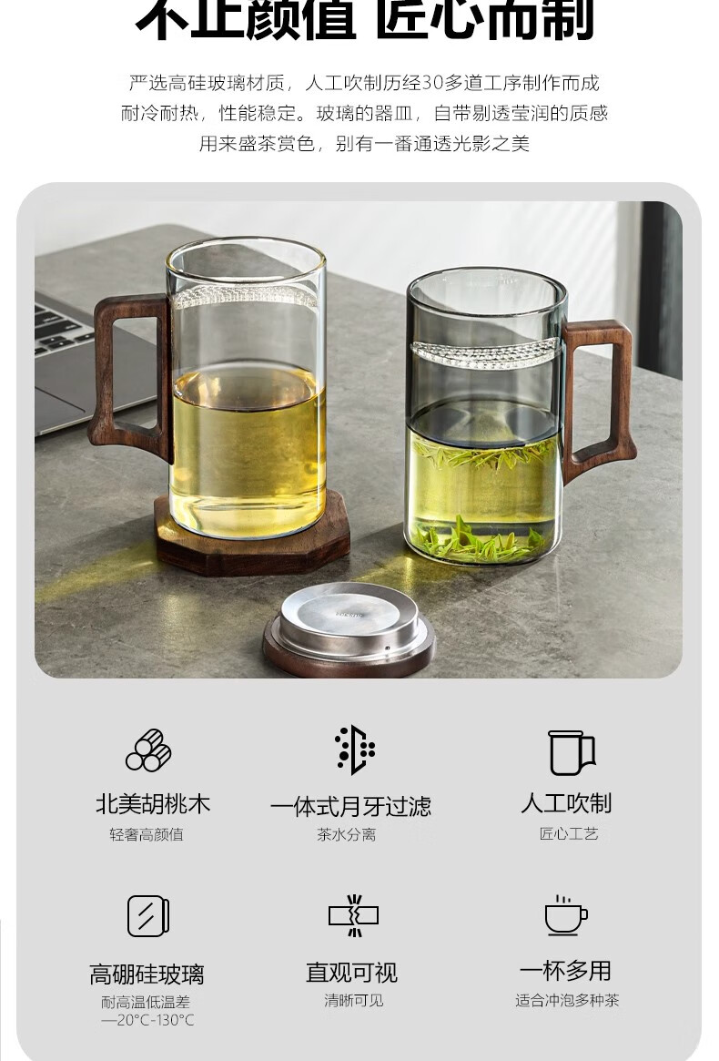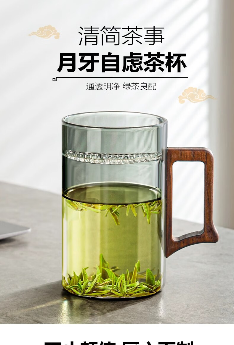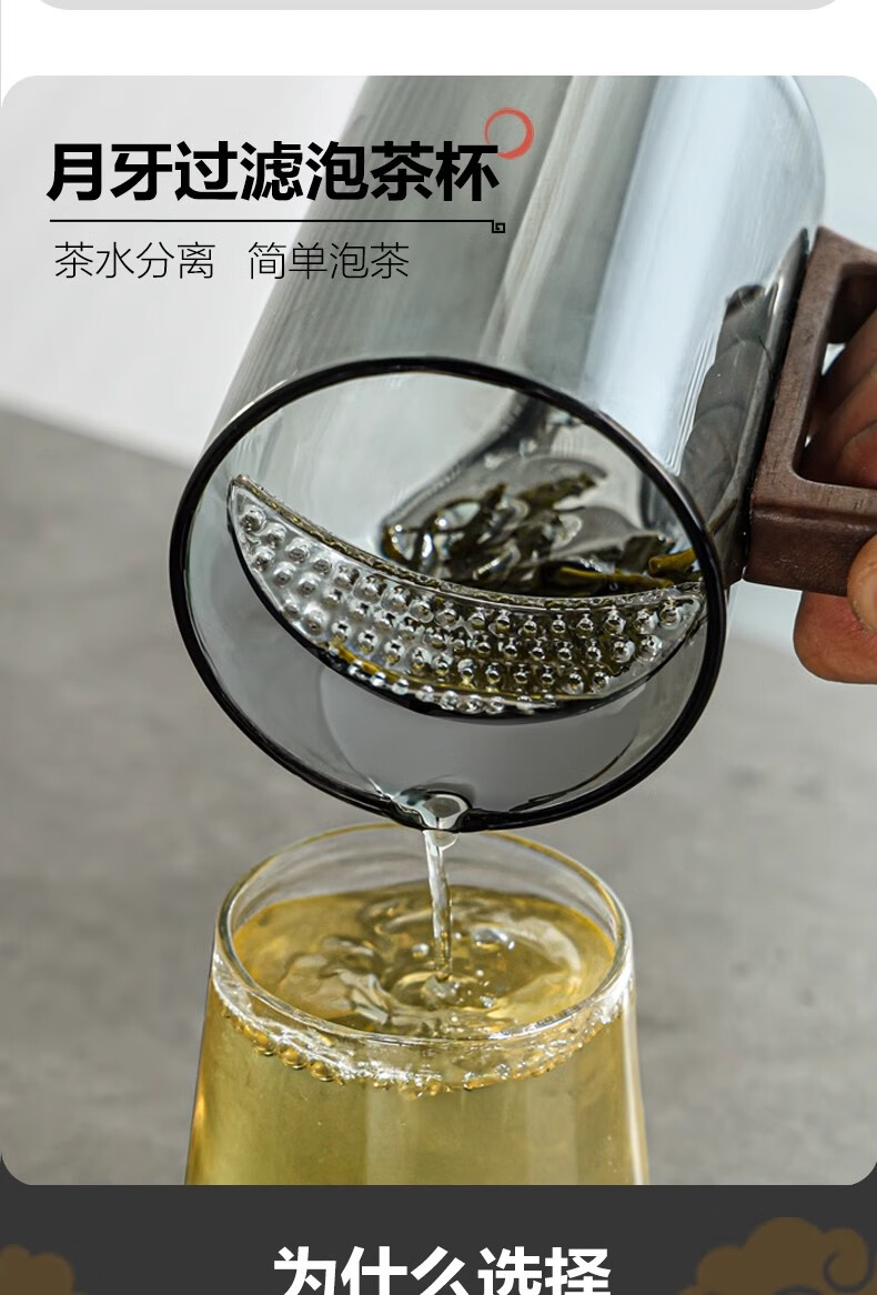 Eight Thousand Lines Crescent Filter Tea Cup Tea Water Separation Green Tea Special Men's Drinking Water Brewing Tea Glass Water Cup